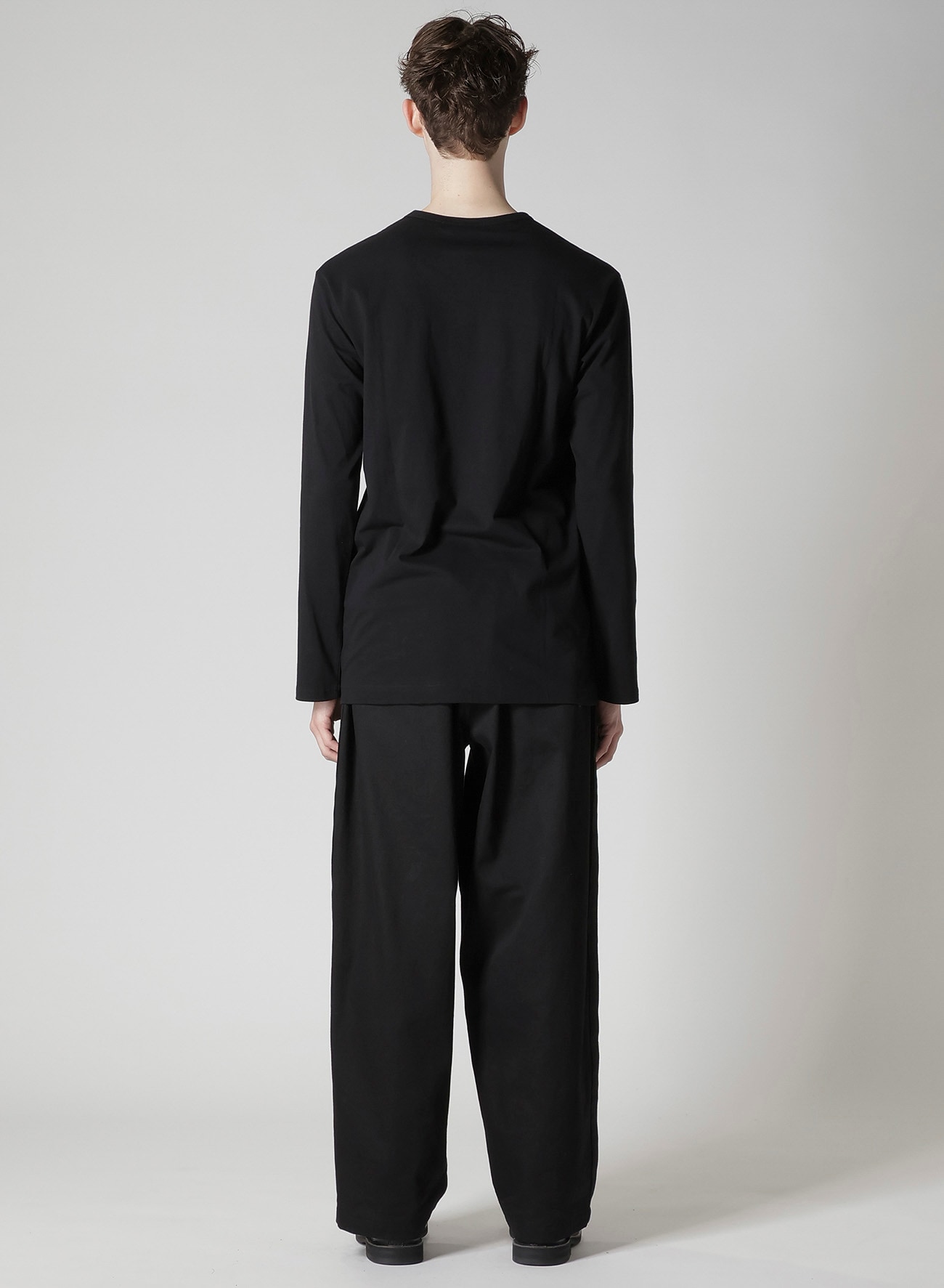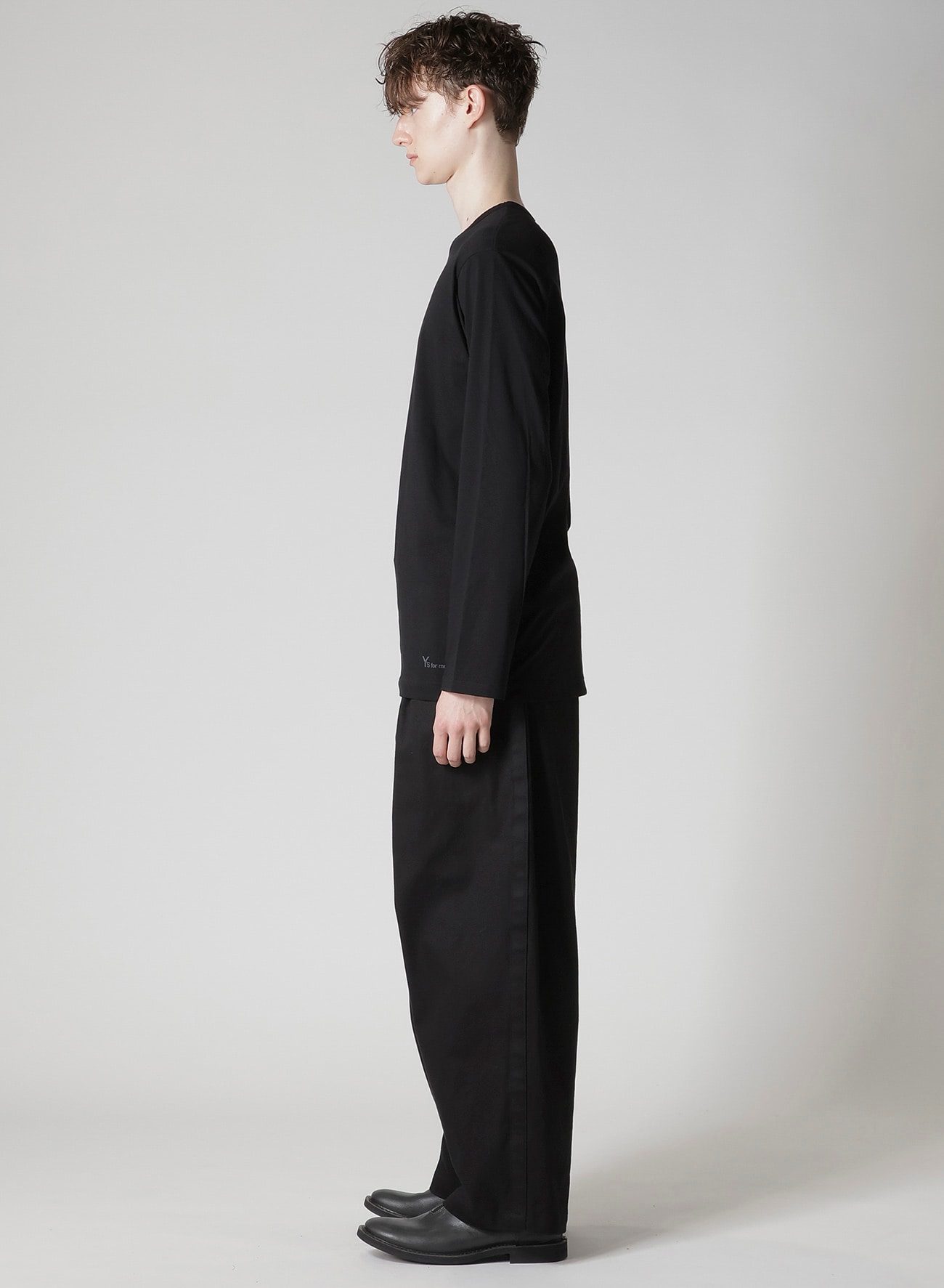Y's for menロゴ入りコットンロングTシャツ。適度なハリと美しい目面が特徴のコットン天竺生地をシリコン系柔軟剤で仕上げることで風合い、着心地も良く仕上げています。前身頃の左裾には「Y's for men」のロゴをさりげなく配し、スタイリングのアクセントに。モデル着用画像はサンプルアイテムを使用しています。製品とサイズや風合いが異なる場合がございます。詳しくはサイズ詳細をご確認下さい。