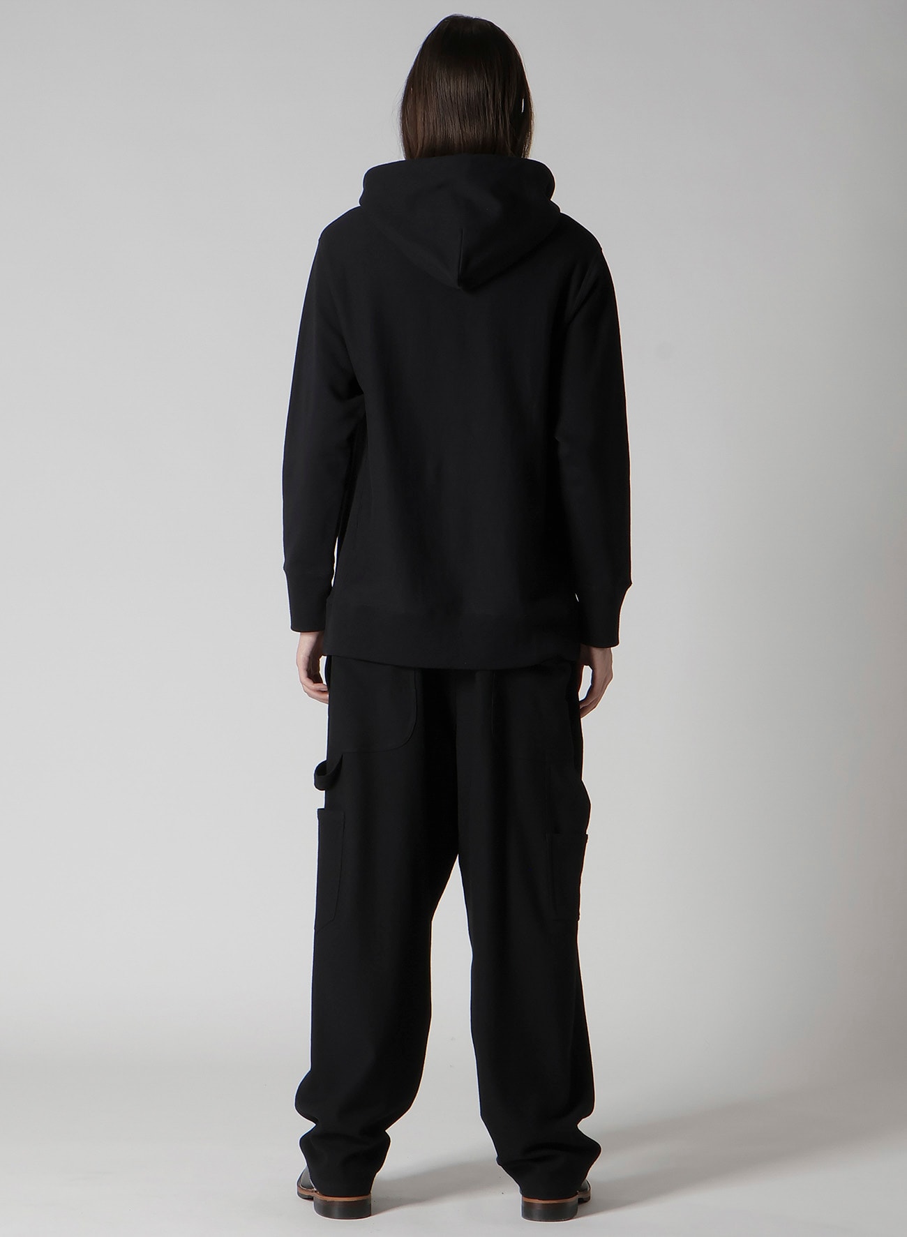 裏毛フーディー。編みから染め、加工までのすべてを国内で行っている国産裏毛を使用しています。奇を衒わないベーシックなシルエットの裏毛フーディーは、一枚あると重宝するアイテムです。