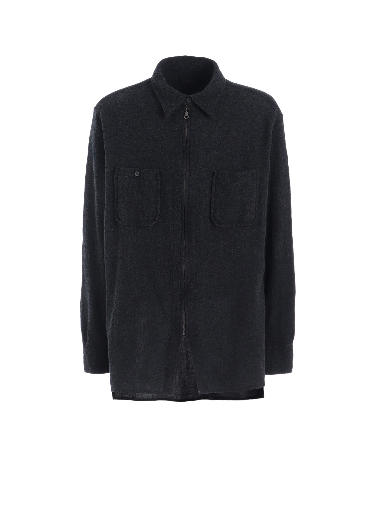 ふんわりとした軽さと、自然な暖かさを感じられる尾州産ウールガーゼを使用した、縮絨加工のジップシャツです。ウールガーゼならではの柔らかな風合いと、製品縮絨による独特の表情が魅力。ジップ仕様で着脱がしやすく、シャツとしてもライトアウターとしても活躍する汎用性の高い一枚です。シンプルながらも素材の存在感が際立ち、秋冬のスタイリングにさりげない個性を添えてくれます。※素材の特性上、縮みやすいため手洗いを推奨しています。モデル着用写真は製品サンプルを用いて撮影しております。実際の寸法および着用感は、販売商品をご確認ください。