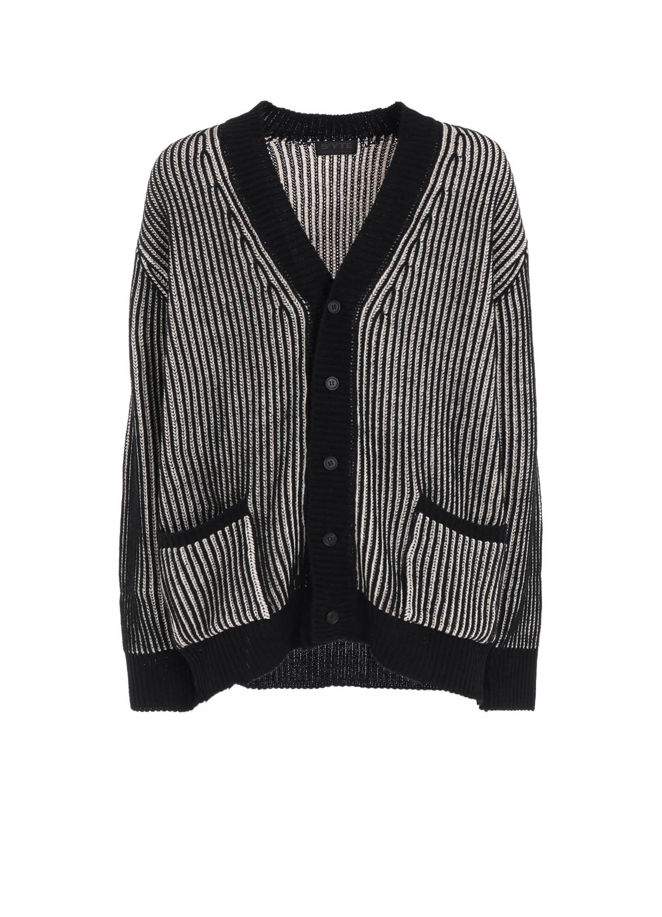 コース切替手法を取り入れた、存在感のあるニットカーディガンです。軽くてふっくらとした風合いのバルキーウールを使用し、快適な着心地と立体的な表情を兼ね備えています。前立て、襟、裾、袖口などのディテールにコース切替を施すことで、全体に奥行きと構築的な印象を加えています。身頃には2つのパッチポケットを配置し、デザイン性とカジュアルな雰囲気をプラスしています。毛玉ができにくく、虫食いの心配も少ないイージーケア素材で、洗濯後の型崩れに強いので日常使いにも適しています。