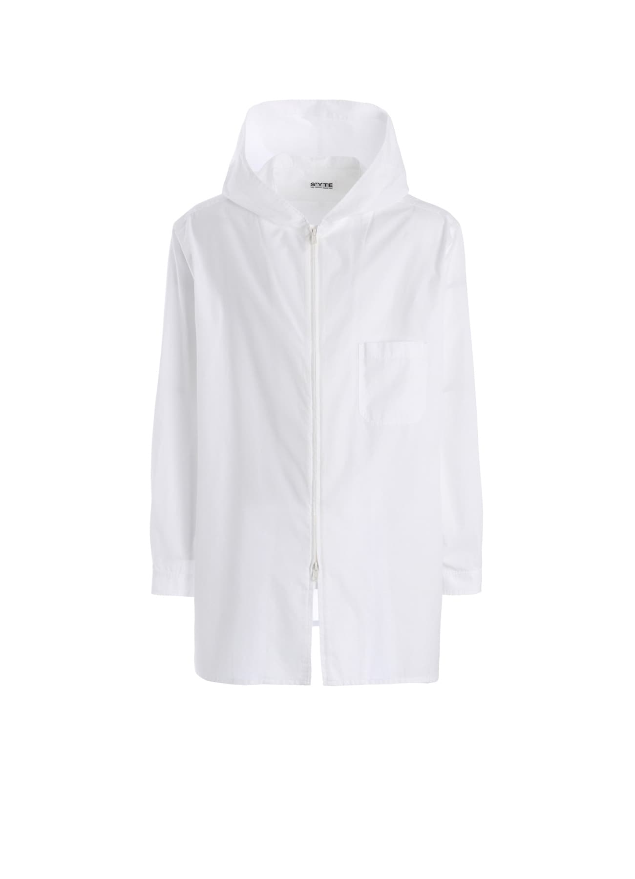 ほどよいハリとやわらかさをあわせ持つブロード素材で仕立てた、オーバーサイズのファスナーフードシャツです。軽やかな平織り生地を使用し、表面には自然なツヤ感があります。エアータンブラー加工によって、生地はやさしくほぐれた風合いに。さらっとした着心地で、長時間着てもストレスを感じにくいのが魅力です。フード付きのデザインにファスナー開きを組み合わせ、シャツ感覚でも、ライトアウターとしても着用可能。オーバーサイズシルエットなので、インナーの厚みや着こなし次第で印象を変えられます。カラーはブラックとホワイトの2色展開。サイズはS・Mをご用意しており、コンパクトに着たい方も、ゆったりとした着用感を楽しみたい方も、自分好みのバランスを選べます。気分や季節に合わせて、自由な着こなしを楽しめるシャツです。メンズモデル着用サイズ:Mサイズレディースモデル着用サイズ:Sサイズ