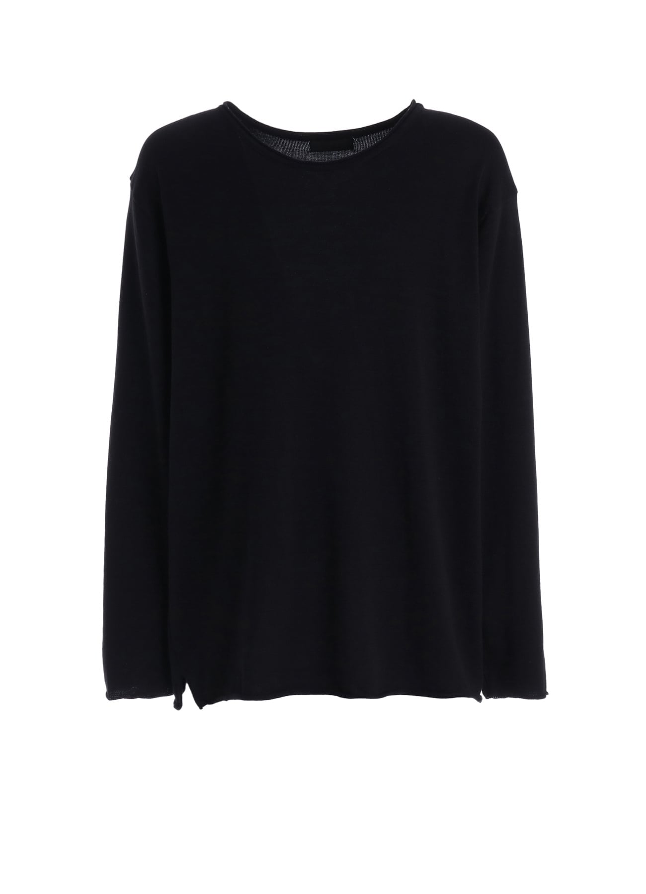 シルクのようななめらかさを持つ SUVIN GOLD のニットで仕立てた、長袖プルオーバー。希少な SUVIN GOLD コットンを使用したニット素材は、肌に触れた瞬間にわかるやさしい柔らかさが特長です。チクチク感が少なく、素肌に着ても心地よい着用感を楽しめます。ニットならではの自然な伸びとしなやかさがあり、身体の動きにやさしく寄り添うため、長時間の着用でもストレスを感じにくい一枚です。表面にはほのかな光沢感があり、シンプルながらも上品な印象に仕上がっています。裾と衿元には、ニット素材がもつ自然なロール(巻き)仕様を活かしたデザインを採用。かっちりしすぎず、程よい抜け感のあるカジュアルな雰囲気を演出します。グレーは双色の糸を使用しているため、さりげない斑(まだら)感が生まれ、奥行きのある表情が魅力。ブラックは単色ならではのすっきりとした印象で、コーディネートを選ばない万能カラーです。一枚でさらっと着ても、インナーとして重ねても使いやすく、日常の中で自然と手に取りたくなるニットプルオーバーです。