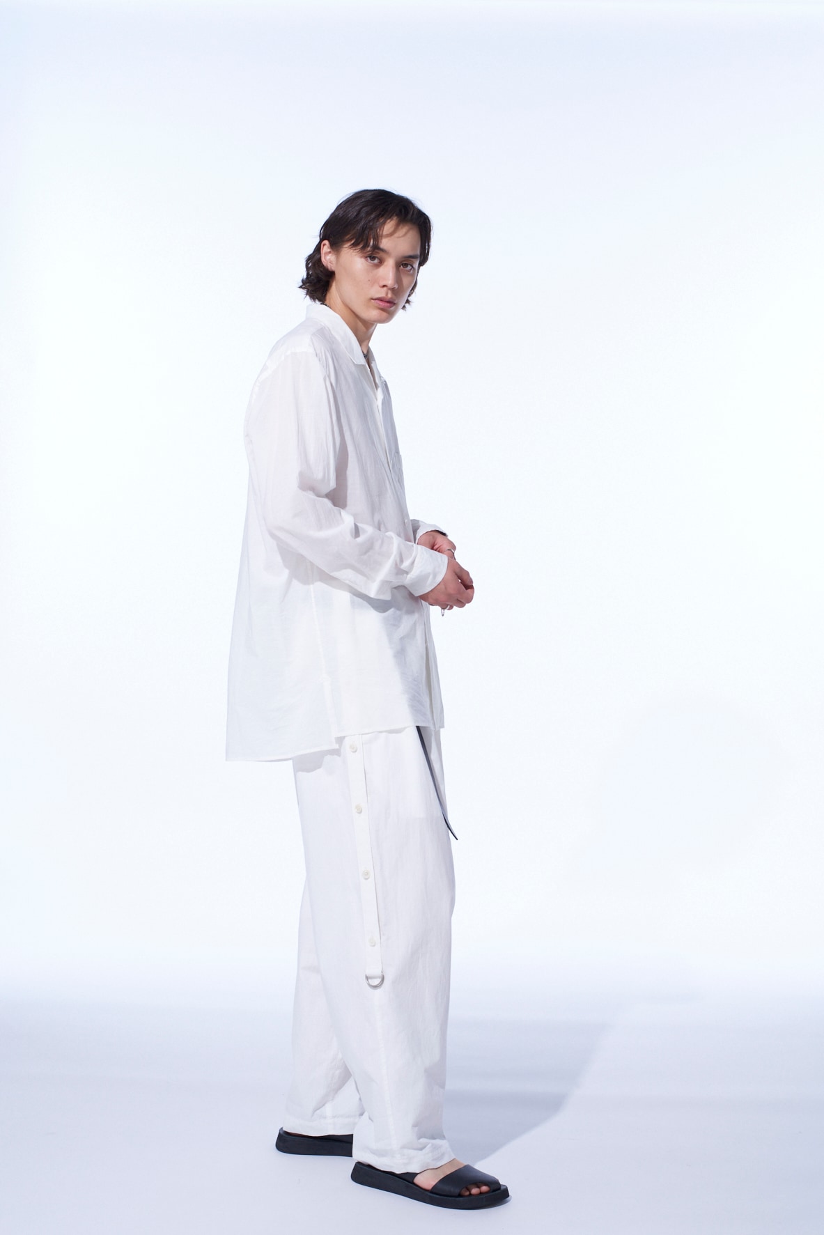 ゆったりとしたルーズフィットサイジング、タックイン・アウト自在なスクエアカットのヘムラインにバックヨークのタックなど、ヨウジヤマモトのクラシックな要素を詰め込んだデザイン。
