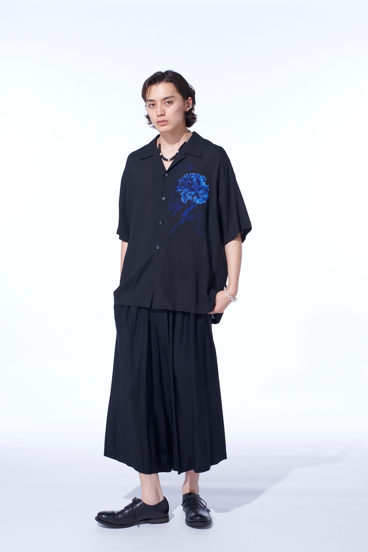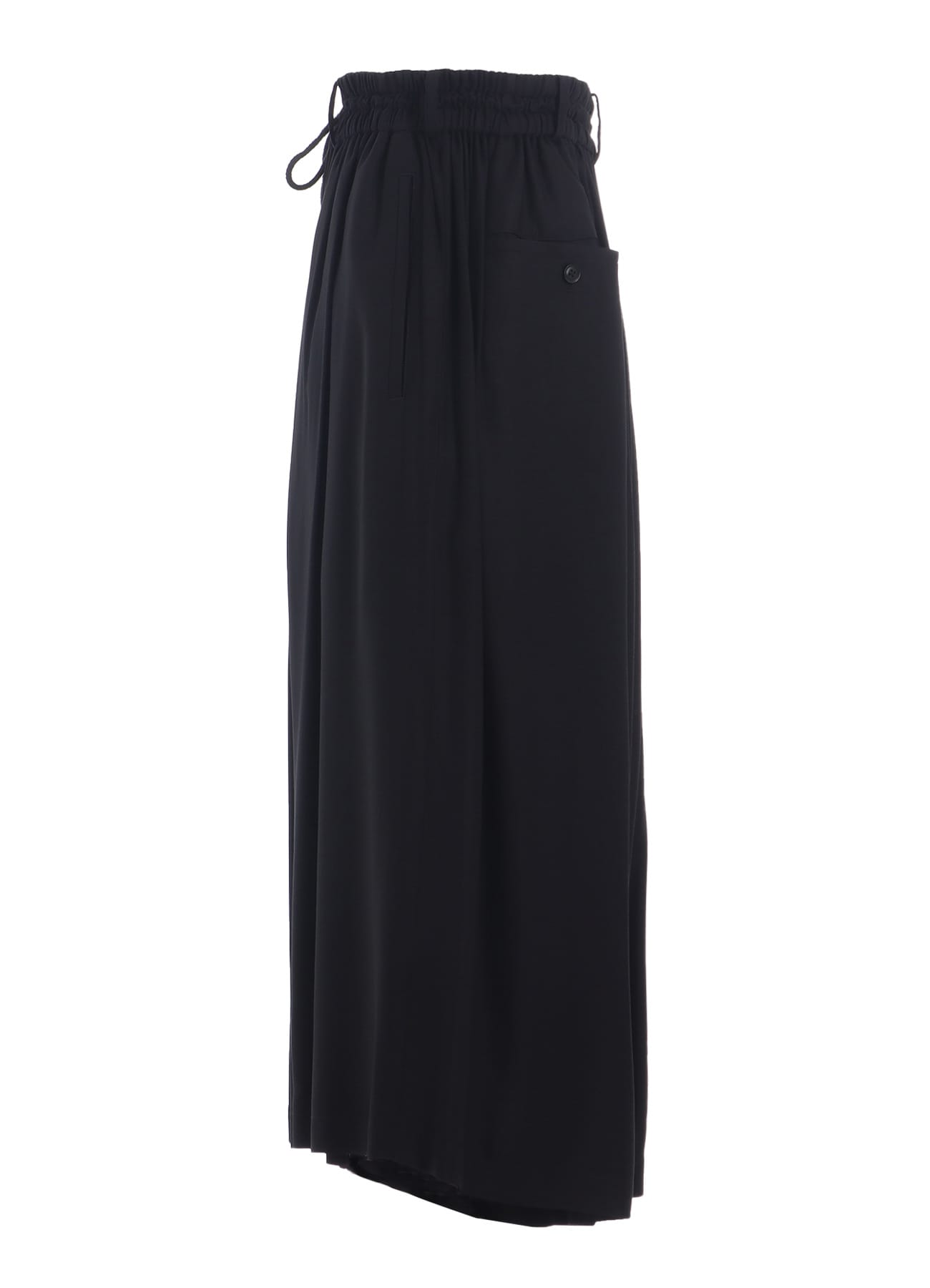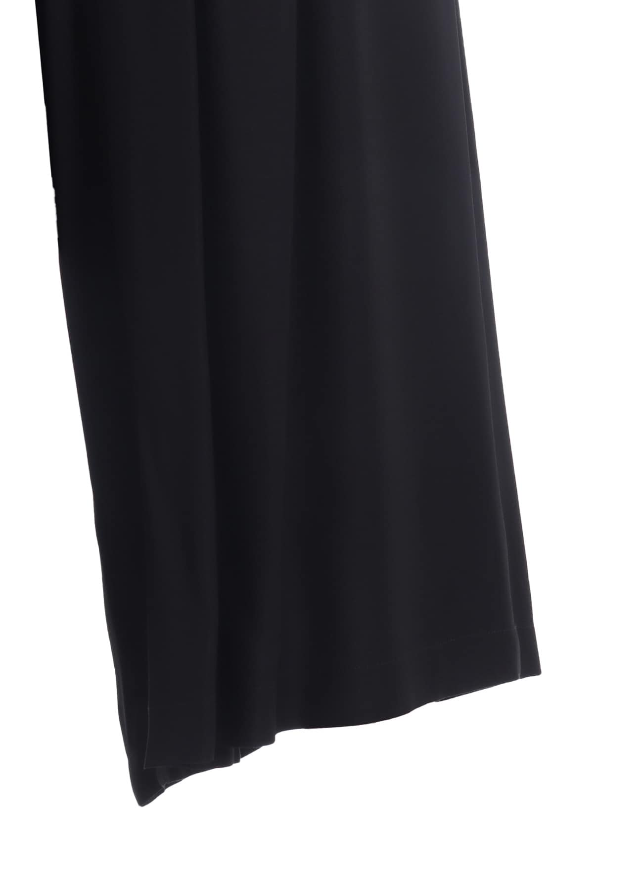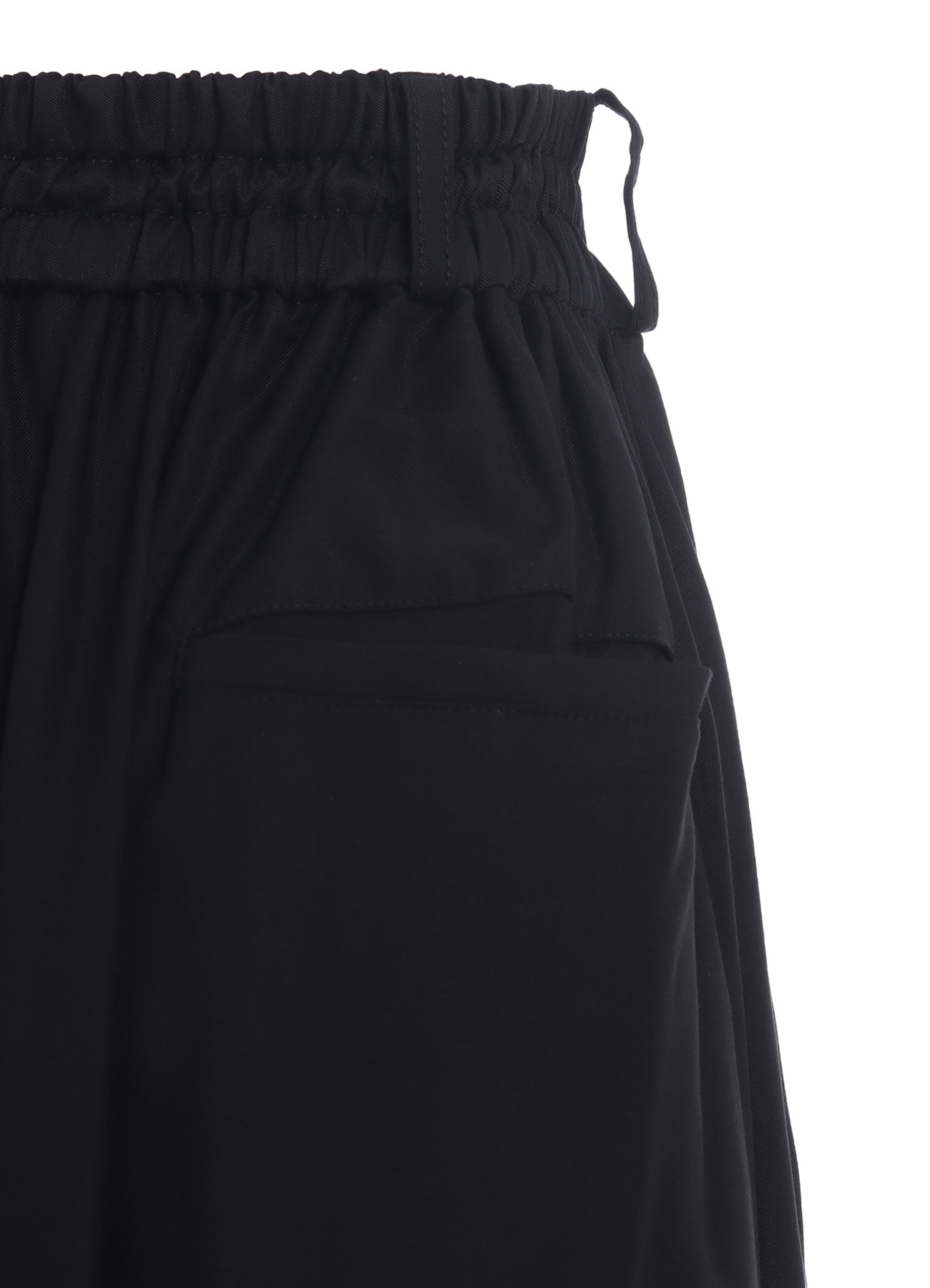 滑らかで肌馴染みの良い質感、光沢のある美しいドレープ感が特徴のレーヨンツイルで仕立てたキュロットパンツ。スカートとパンツを共有するガウチョワイドシルエットで最もイージーに”らしさ”を出せる丈とボリュームが魅力。とろみのあるシャツやカットソーと親和性が高く、風に靡く布地の美しさ、動きとともに刻々と変化するシルエットを楽しめるのはこの生地ならでは。季節に合わせブーツ、スニーカー、サンダルと足元をアレンジできる万能なレングス設定。着合わせを選ばないシンプルな形はコーディネートバリエーションに富み、夏に最適解な涼やかなブラックスタイルに重宝する。