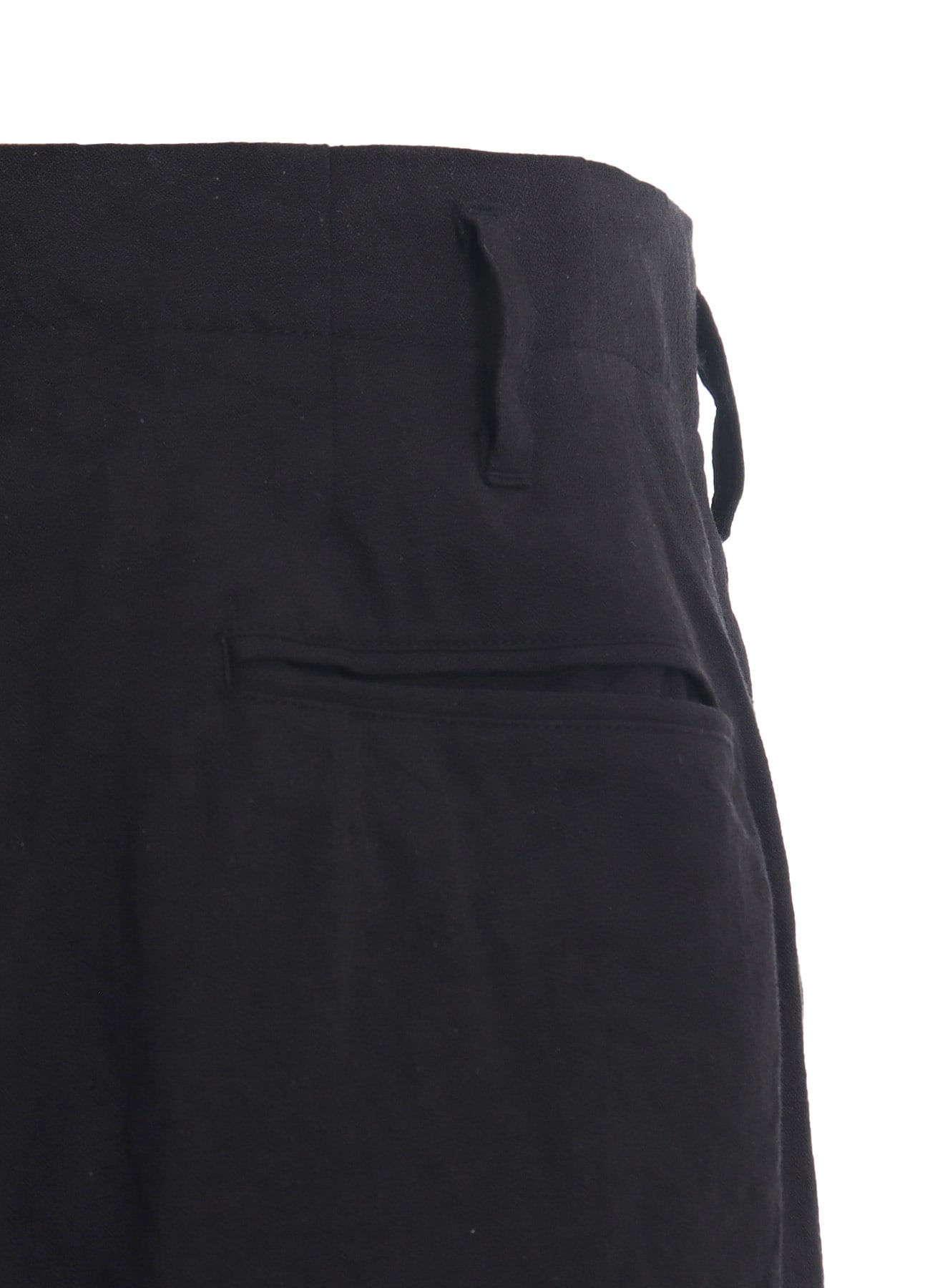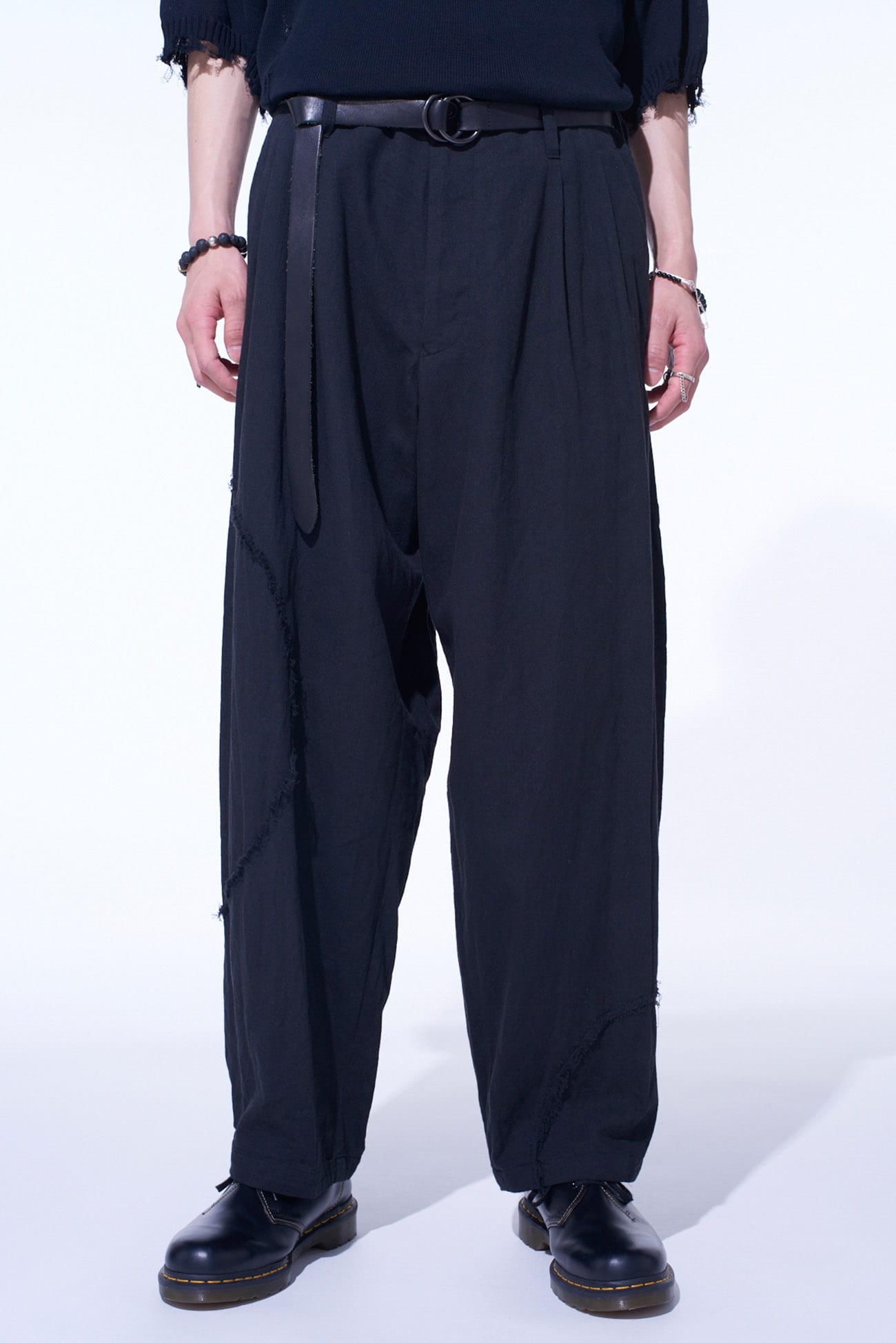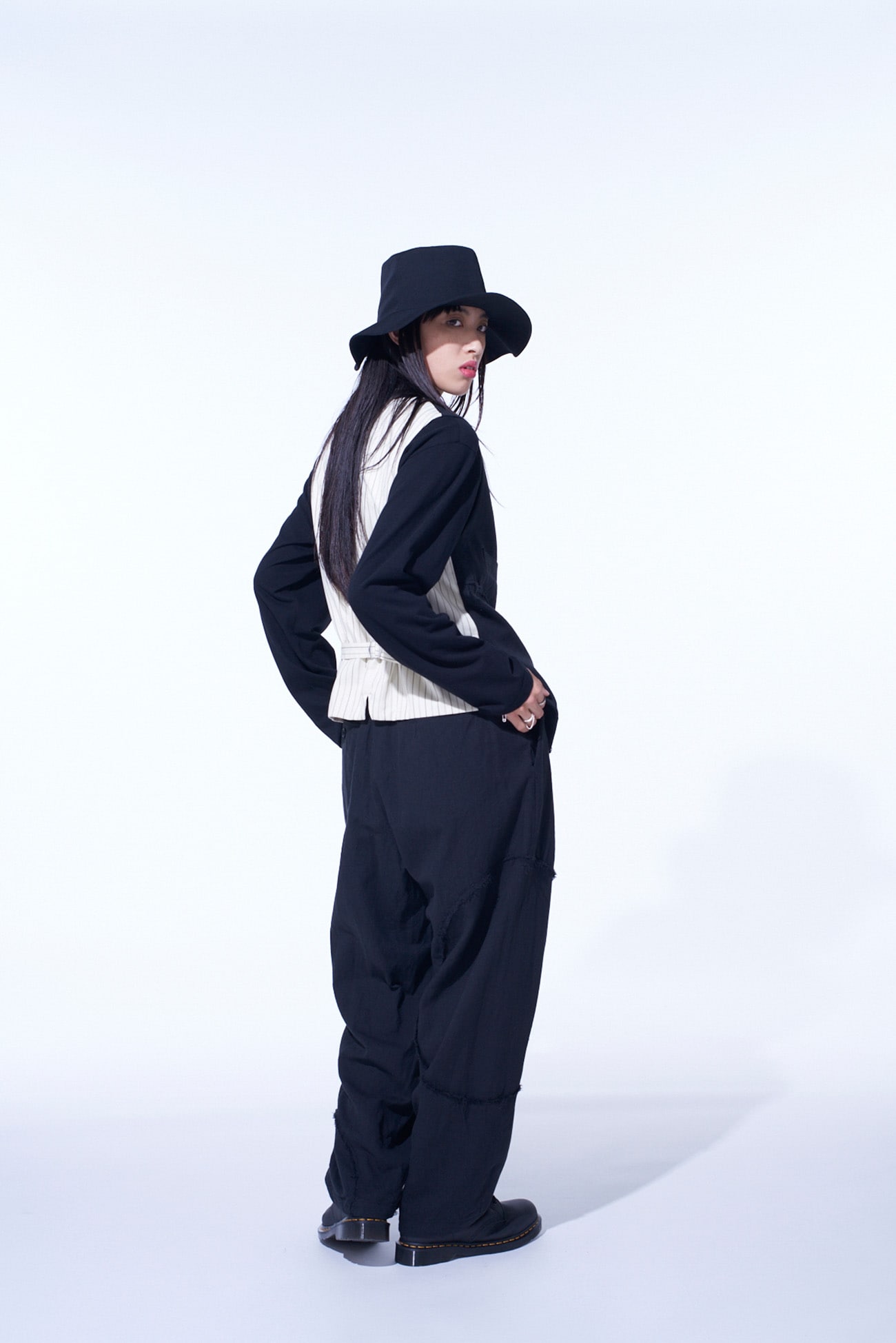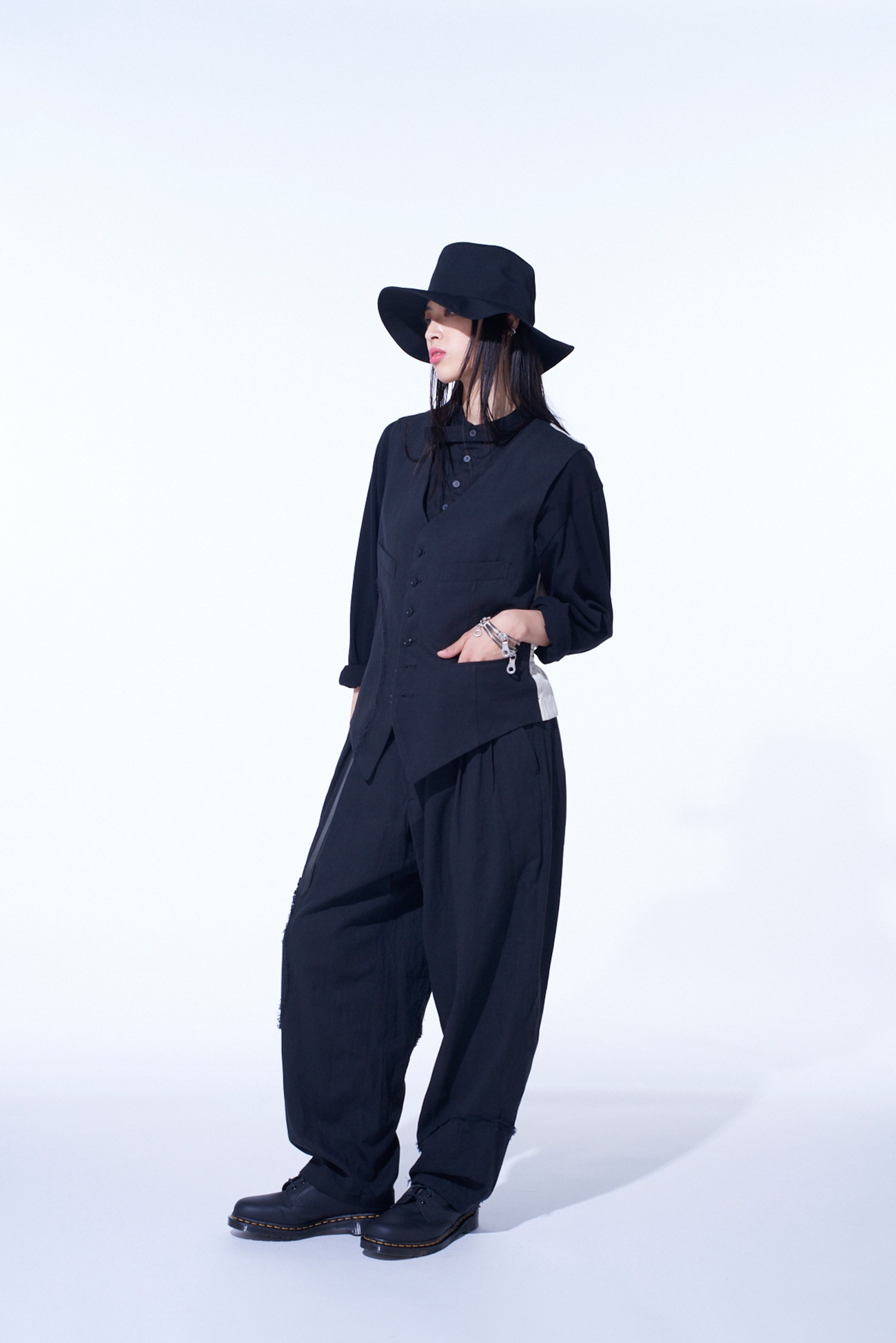 身頃に丸く裁ち切りの切り替えを入れたリネン/コットンのヘリンボーン柄パンツ。意匠を凝らしたアルチザン的手法で表現した共生地によるさりげない裁ち切りディテールが特徴。細かなへリンボーン柄は無地感覚で着合わせしやすく、スタイリングのアクセントになるデザインは単体でのスタイリングはもちろん、同シリーズのジャケット、ベストとの3ピースでの着用もおすすめ。製品洗いをすることで風合いが増し、おろしたてから柔らかくしなやかな着心地を得られる。着用を繰り返すことで独特のヤレ感が生まれ、より表情豊かな風合いへと変わっていく経年変化を楽しめる点が魅力。メンズモデル着用サイズ:Mサイズレディースモデル着用サイズ:Sサイズ