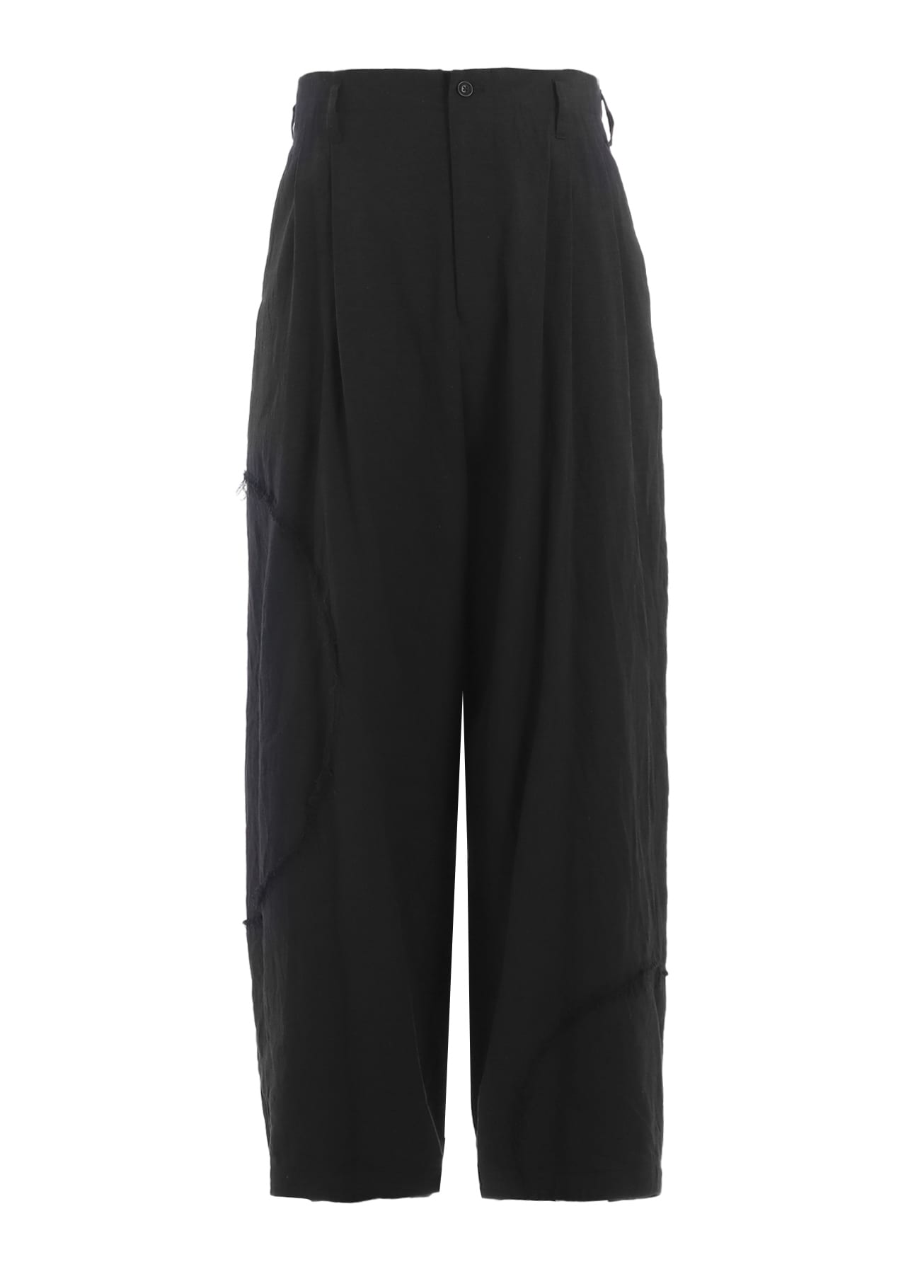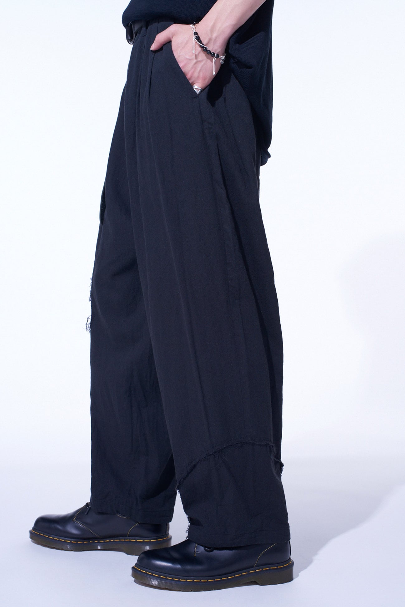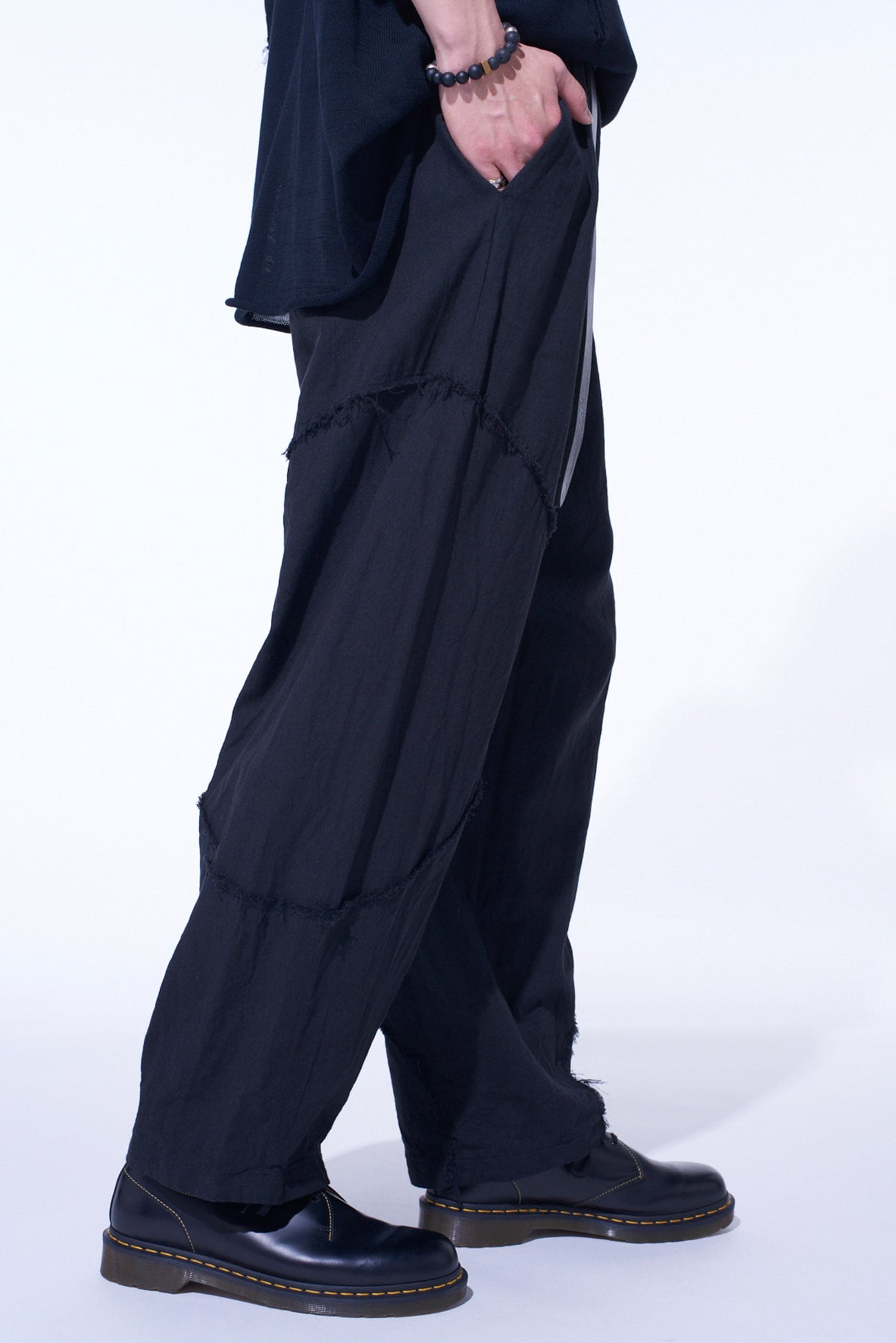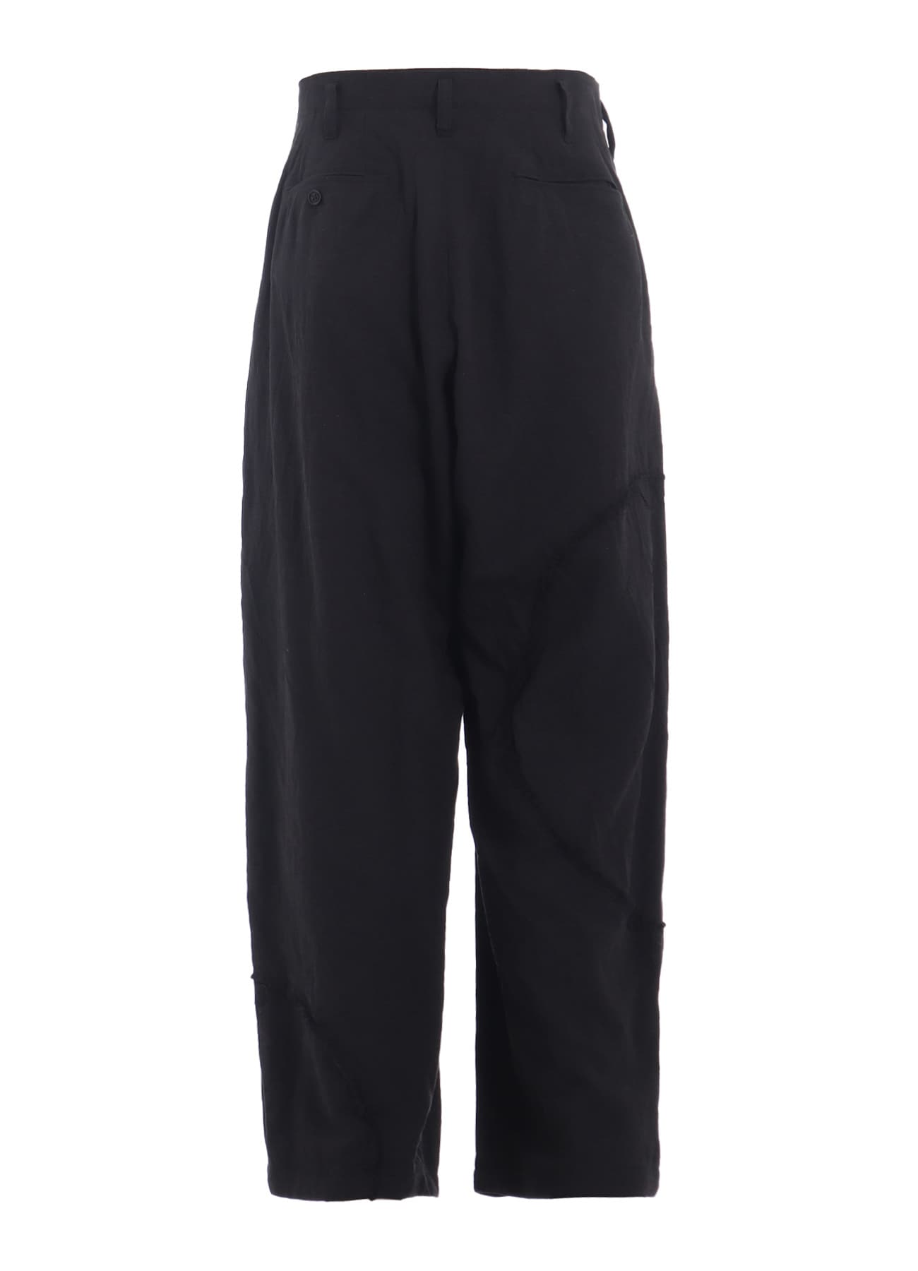 身頃に丸く裁ち切りの切り替えを入れたリネン/コットンのヘリンボーン柄パンツ。意匠を凝らしたアルチザン的手法で表現した共生地によるさりげない裁ち切りディテールが特徴。細かなへリンボーン柄は無地感覚で着合わせしやすく、スタイリングのアクセントになるデザインは単体でのスタイリングはもちろん、同シリーズのジャケット、ベストとの3ピースでの着用もおすすめ。製品洗いをすることで風合いが増し、おろしたてから柔らかくしなやかな着心地を得られる。着用を繰り返すことで独特のヤレ感が生まれ、より表情豊かな風合いへと変わっていく経年変化を楽しめる点が魅力。メンズモデル着用サイズ:Mサイズレディースモデル着用サイズ:Sサイズ