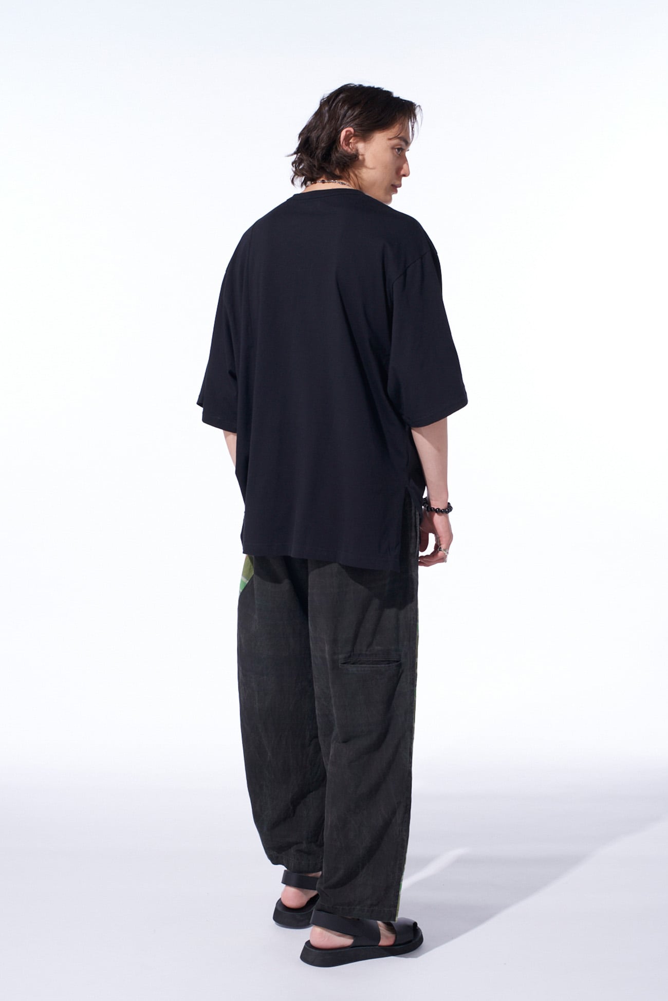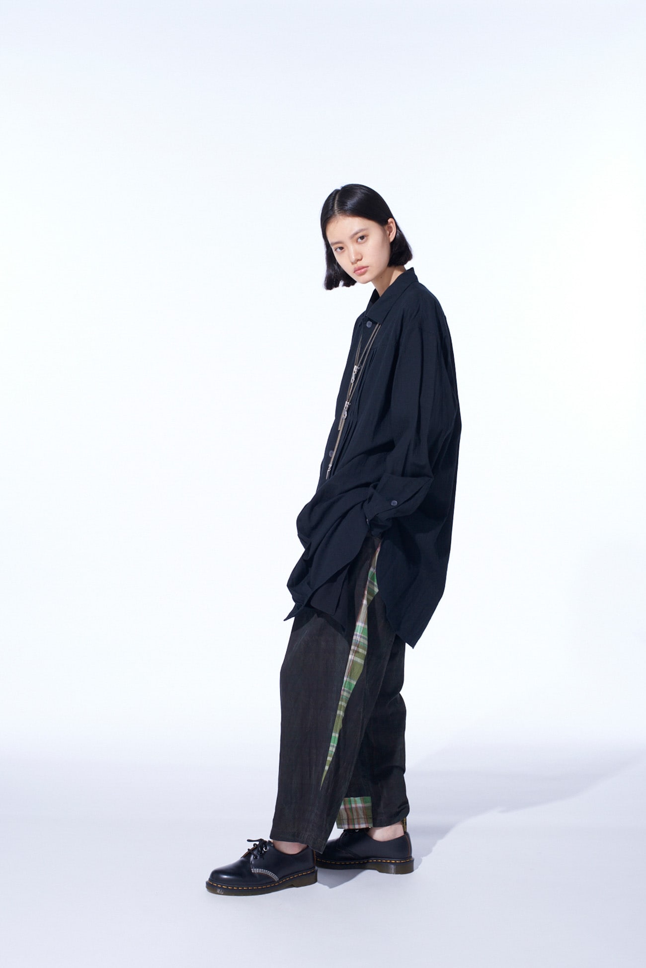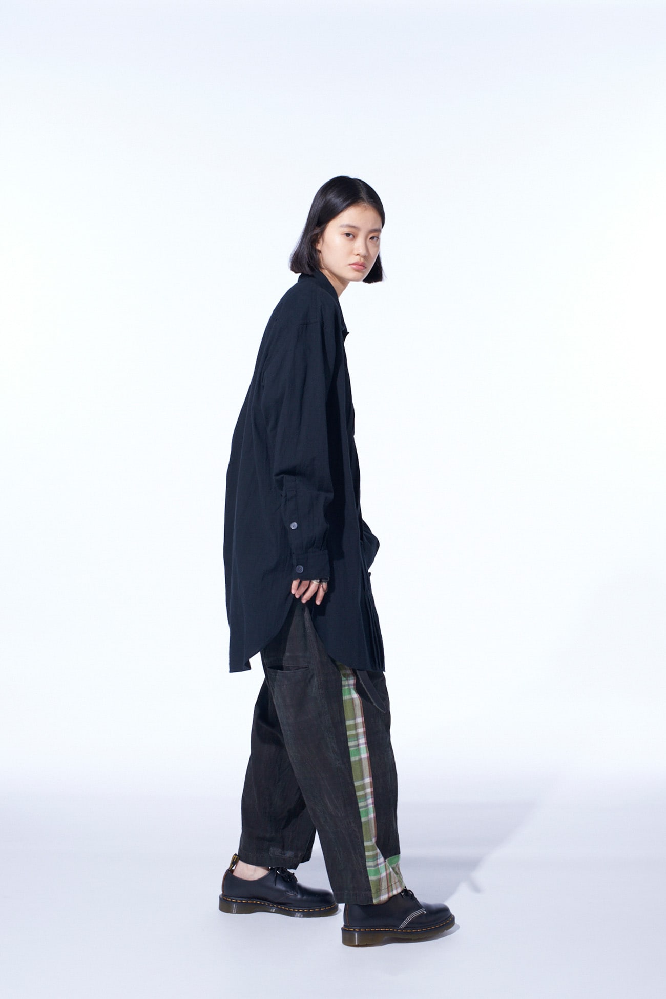 インド南東部のマドラス地方(現チェンナイ)で伝統的な技法により生産されているマドラスチェック生地に顔料プリントをのせ、ランダムにチェック柄を覗かせた3タックワイドパンツ。涼しげなゆとりと軽さのある生地、仕立てで、動くたびに風に靡く軽やかなシルエットが魅力。裾をロールアップしてチェック柄を覗かせるアレンジも楽しめる。右脇の位置に作ったさりげない両玉縁ポケットもユニークな遊び心。着用を続けることで顔料が落ちてゆき独特な風合いへと変化するエイジングを楽しめる。※本製品はインド製手織りのためネップなどナチュラルな傷が見られます。※加工の特性上、発汗、水濡れ、摩擦により色落ち・色移りが発生する場合がございます。※製品洗い加工のため風合いに個体差がございますことをご了承の上お買い求めください。