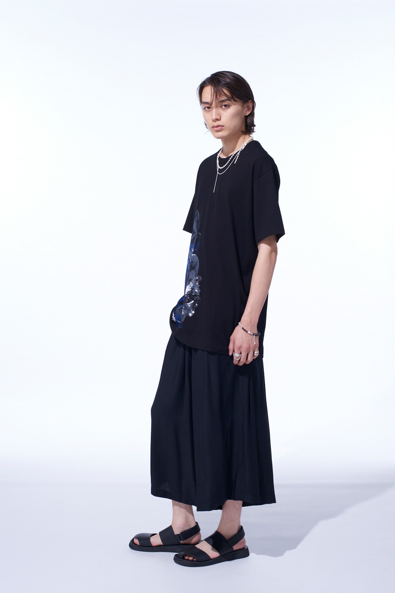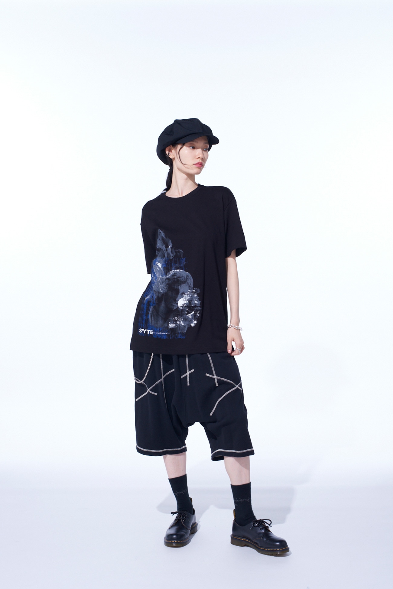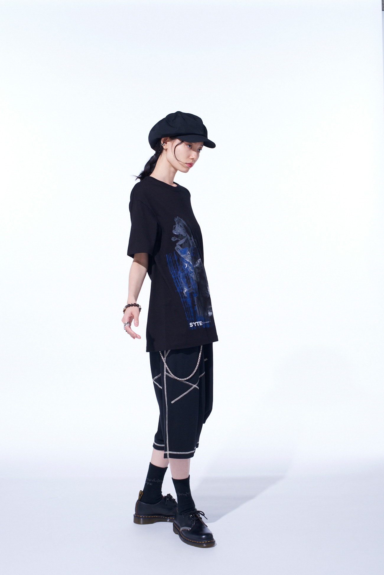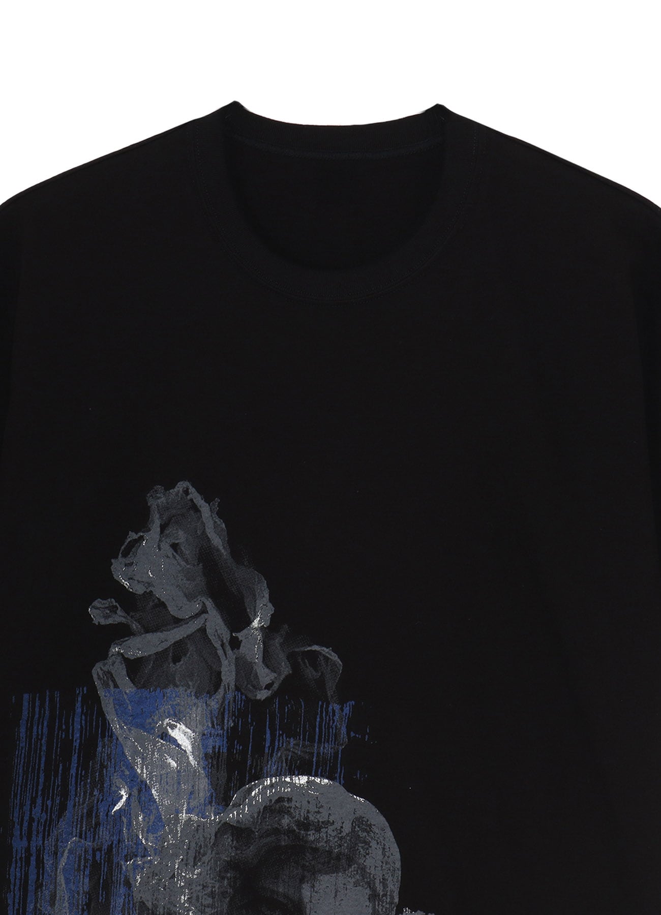 S'YTEブランドスタート初期から協業を続ける久米繊維との別注ボディを使用したグラフィックカットソー。退廃的な彫刻モチーフのグレイッシュグラフィックにブルーが色挿すアートな世界観は1枚での着用はもちろんのこと、羽織物のインナーとしても活きるグラフィックデザイン。脇に縫い目の無い丸胴編みならではの着心地の良さを体感でき、Sサイズはレディースもしくはジャストフィット。Mサイズはゆったり目のサイズ感にて男性には程よいサイズ感と女性にはビックT感覚。LサイズはトレンディなスペシャルXXL的オーバーサイズを提案。袖のロールアップやタックインでのスタイリングアレンジもおすすめ。メンズモデル着用サイズ:Lサイズレディースモデル着用サイズ:Mサイズ※久米繊維業株式会社(KUME SEN-I Co.,Ltd.)日本製・国産Tシャツメーカー 80年以上の歴史を誇る老舗メイド・イン・ジャパンTシャツの原点。優れた技術を持つ紡績会社の手で紡がれ、国内で丁寧に編まれた生地は肌触りに優れるだけでなく耐久性も兼ね備えています。また、袖口、裾部分の縫製に、あえて天地引きを多用するのも数あるこだわりの中の一つ。このTシャツ着脱時の瞬間の強い引っ張りに耐える縫製方法により、ホツレ、糸切れの可能性を低減し、永年の着用に応えています。