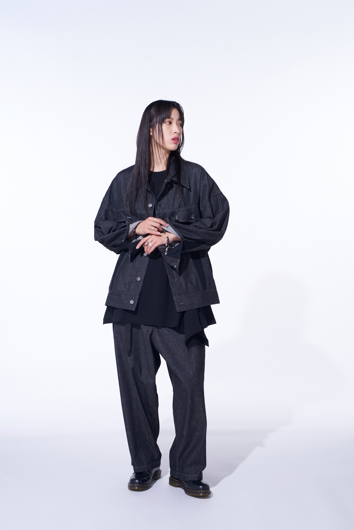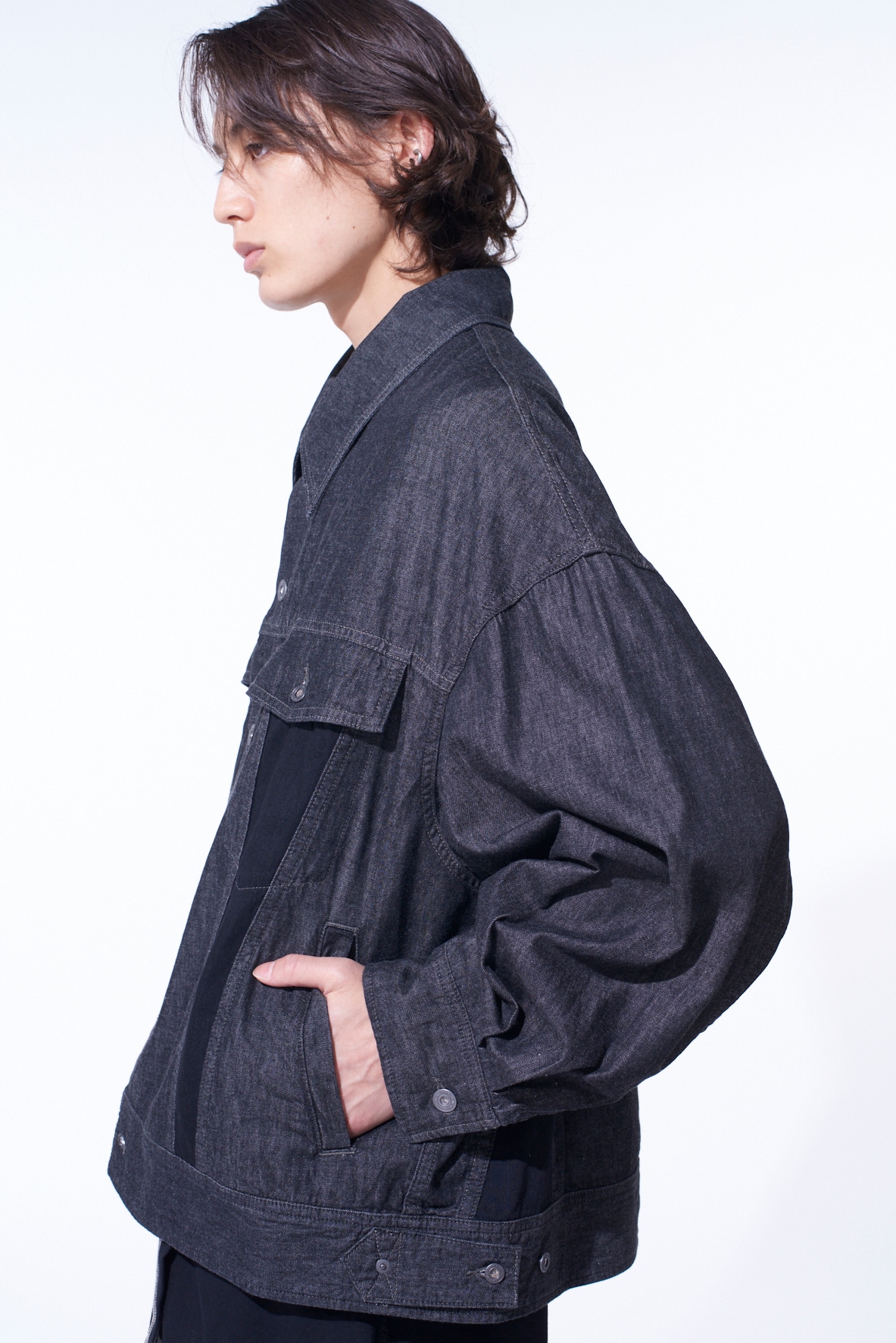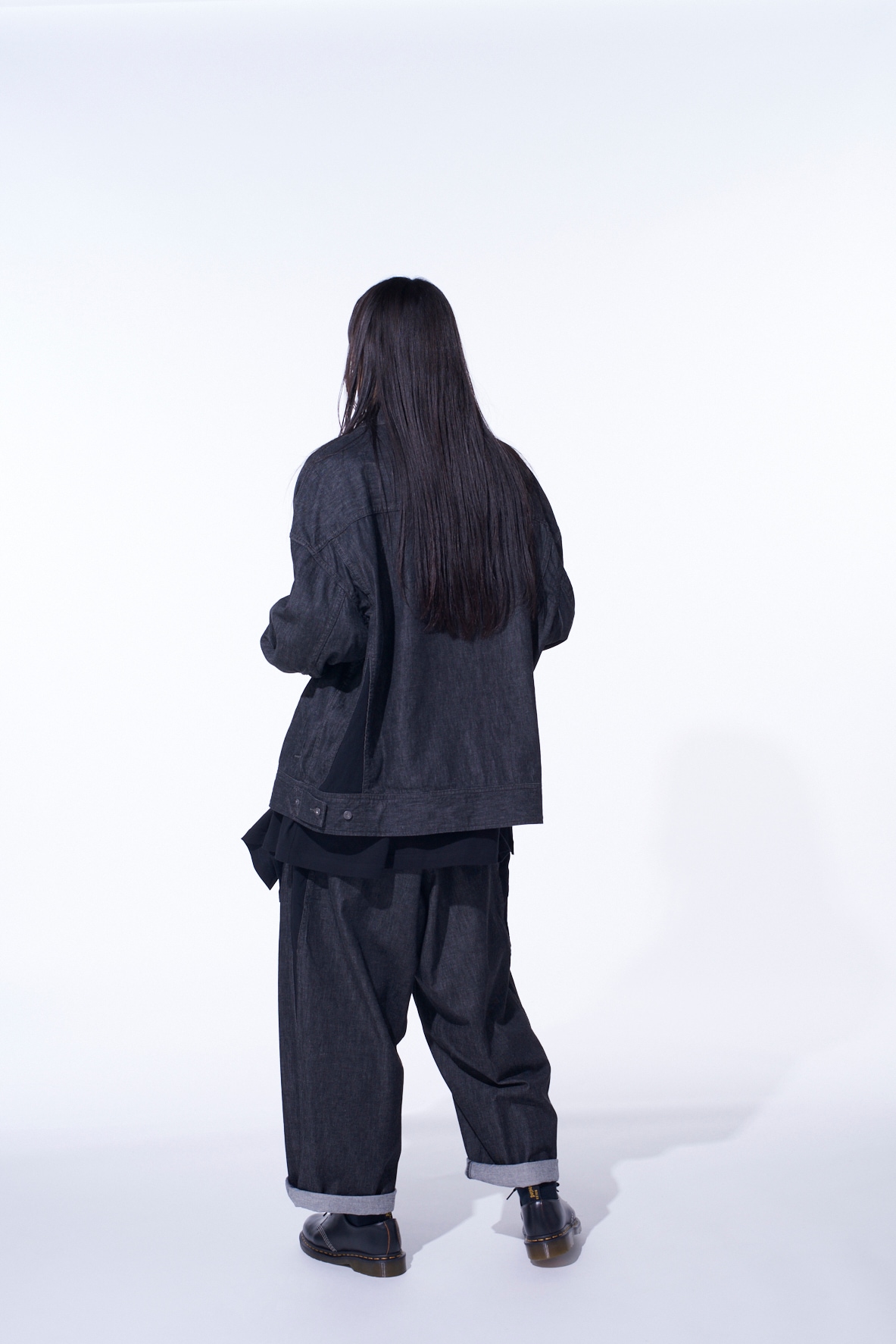 ジャパンデニムの産地、福山産の7オンスデニムを使用したオーバーサイズのトラッカージャケット。