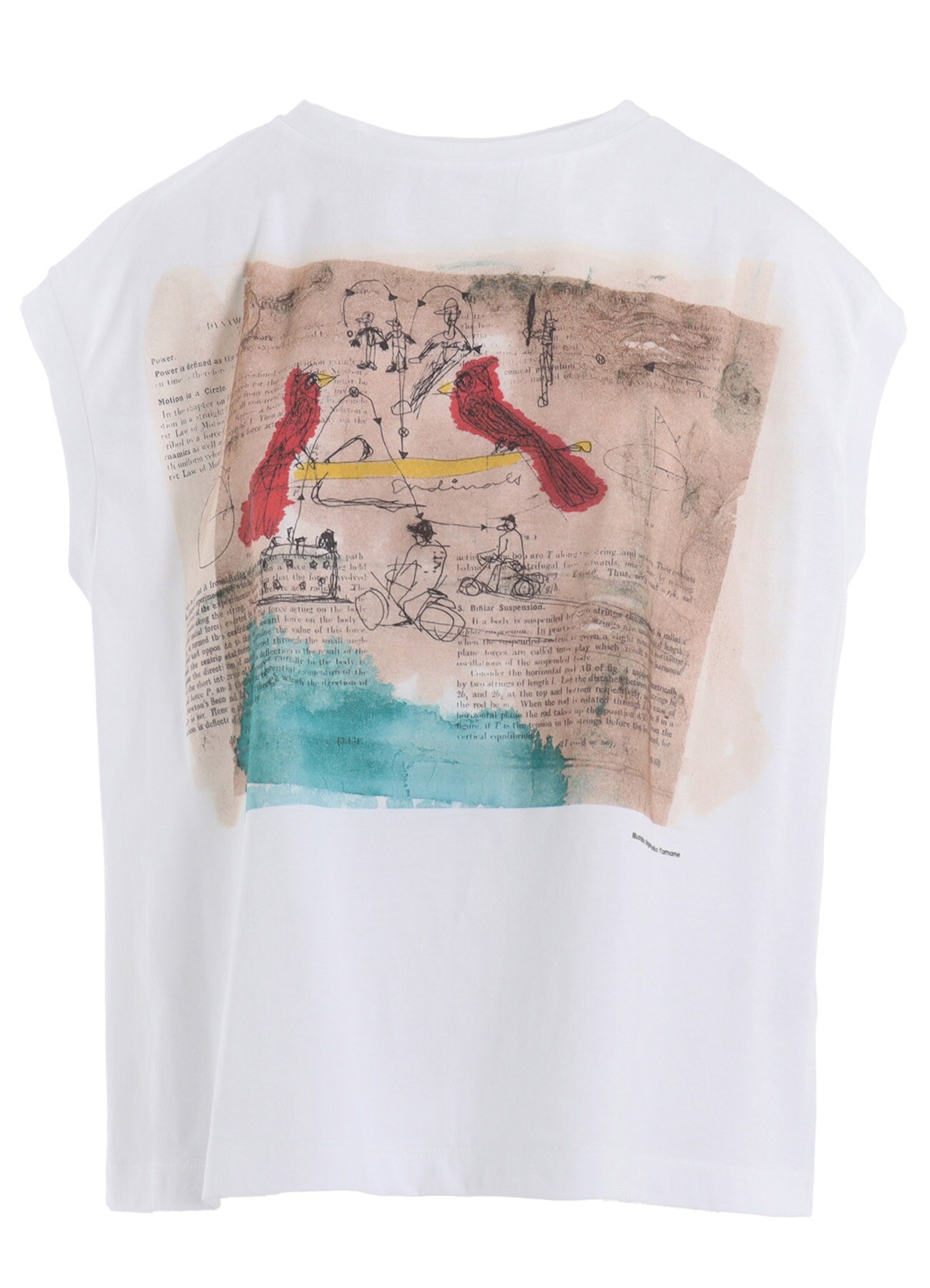 COTTON JERSEY BIRD PRINT FRENCH SLEEVE SHIRT