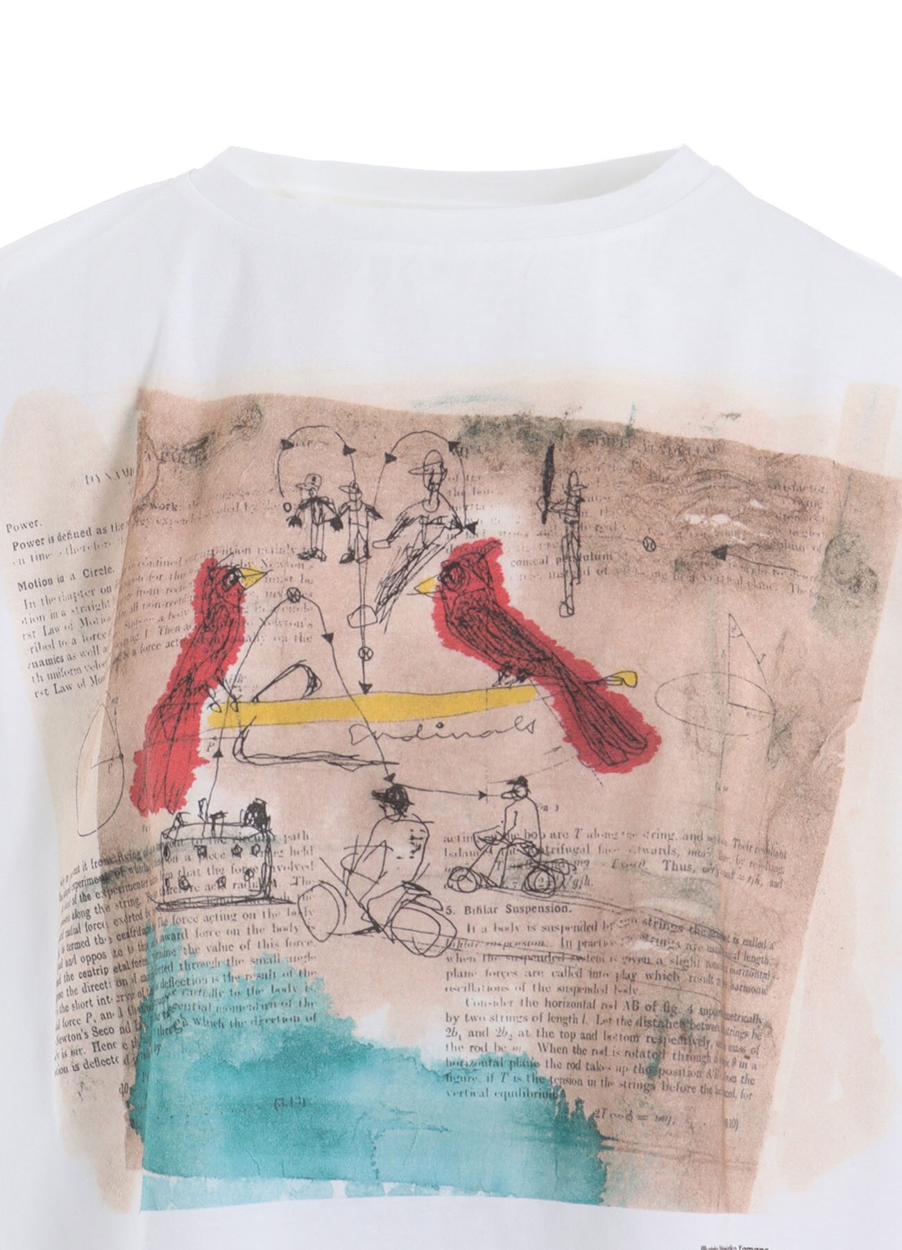 やわらかな天竺に、「BIRD」をコラージュした作品をプリントしたフレンチスリープシャツ。