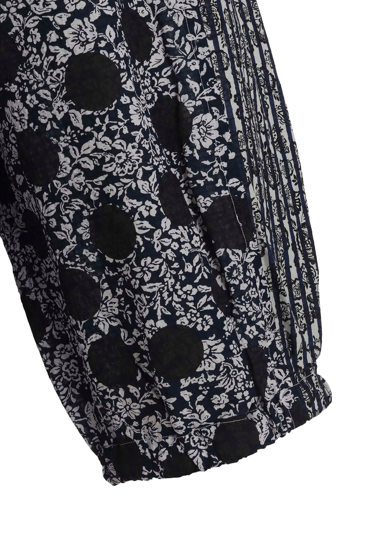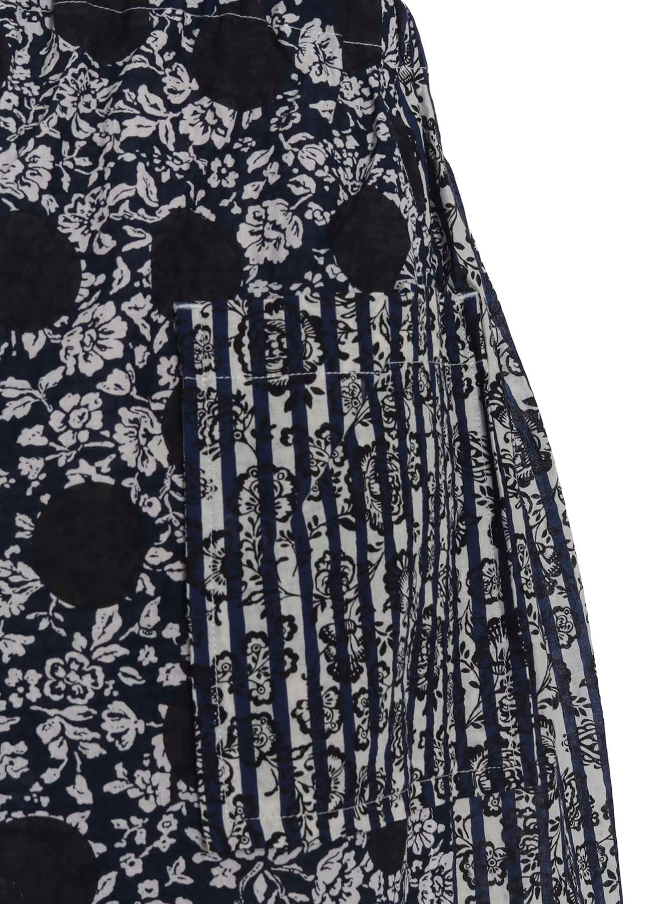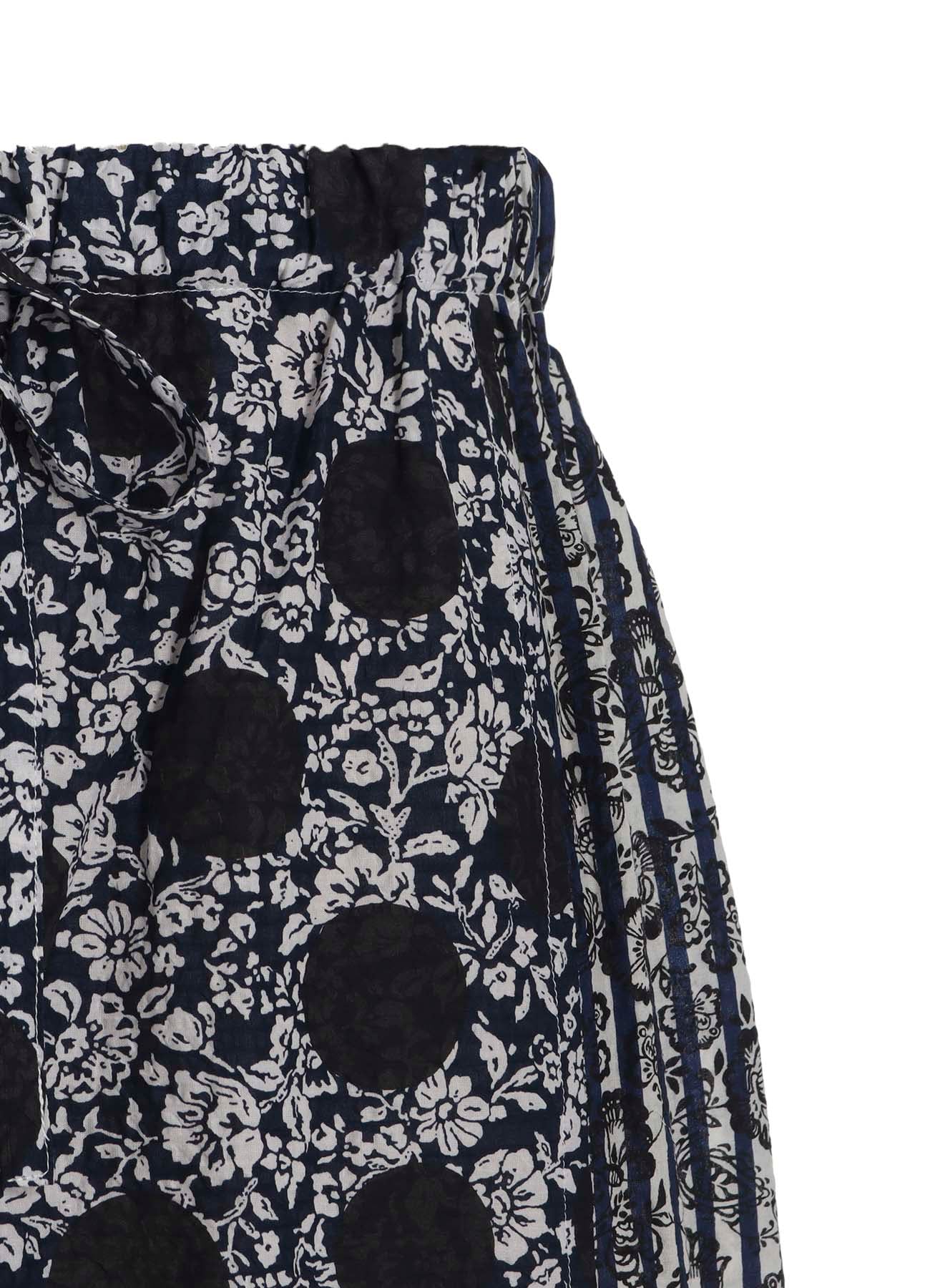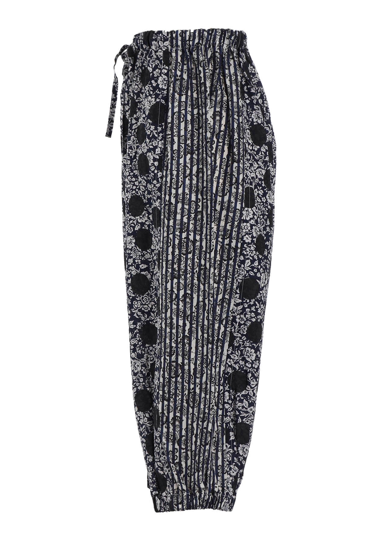 凹凸のある表面が特徴のリップル素材を使用した、暑い季節におすすめのパンツ。フラワーモチーフにドットやストライプを組み合わせてプリントし、更にそれぞれを部分的に切替えた、遊び心溢れるデザインが魅力です。