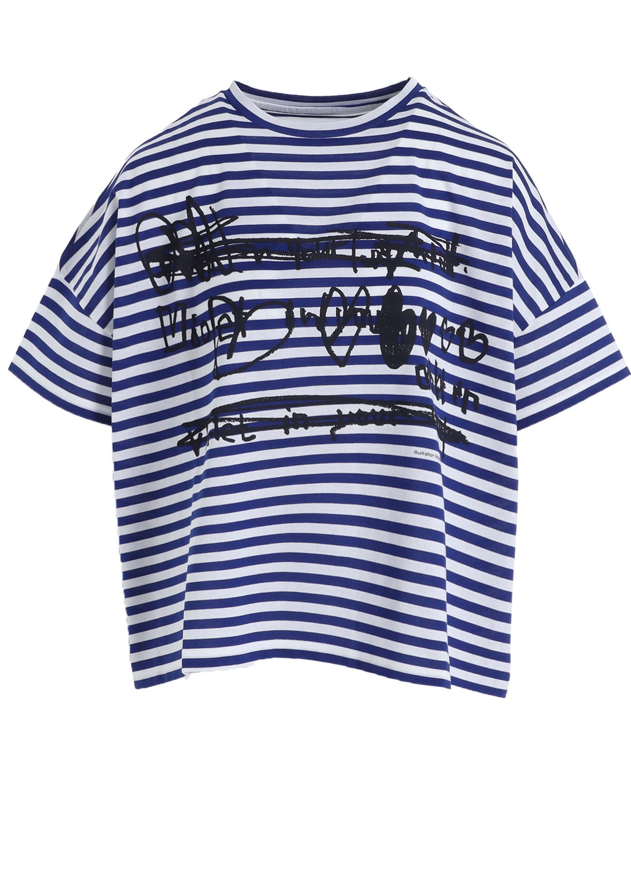 60/2 COTTON JERSEY BORDER HEART PRINT WIDE SHORT SHIRT