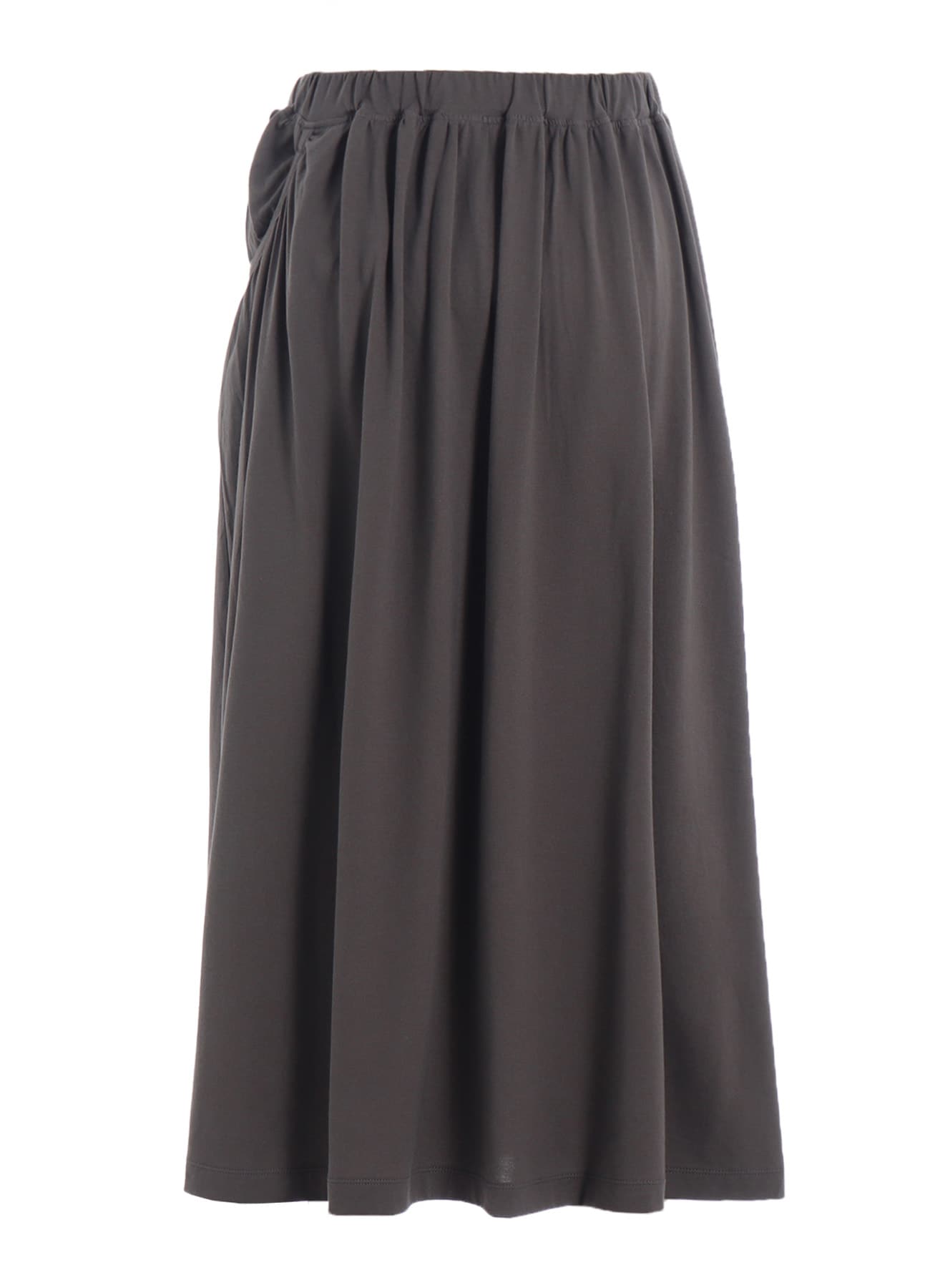 気軽にお召しいただけるカットソー素材のスカート。超長綿を使用した天竺は、上品なツヤと滑らかなタッチが特徴です。毛羽の無い美しい表面のためカジュアルになりすぎず、シーズンを通じて活躍します。