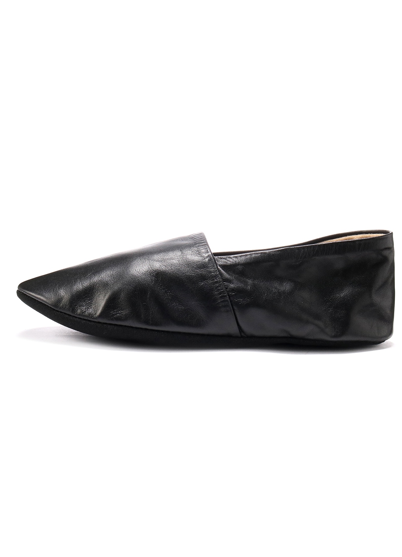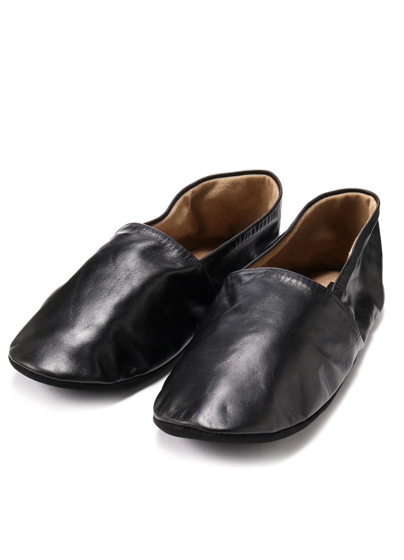 シンプルでスタイリッシュなレザーのルームシューズ。インソールにはベロアタッチのファブリックを使用した、やわらかな履き心地です。踵を踏んでスリッパとしても履くことができます。MとLの2サイズでご用意しております。M:23.5 - 24.5cmL:25.0 - 26.5cm