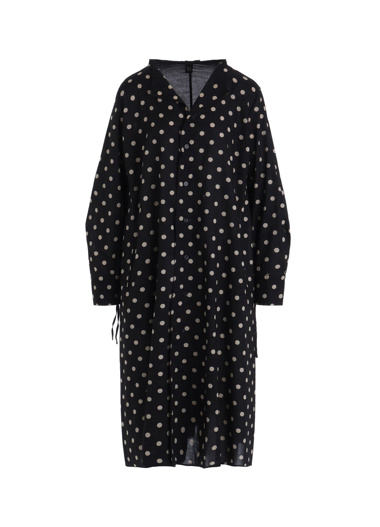 様々な大きさのドット柄生地を組み合わせたシャツドレス。サイズの異なるドット柄を組み合わせることでシンプルなパターンにユニークな表情がプラスされます。さらりとした滑らかな肌触りのローン生地は、汗ばむ時期にも快適にお召しいただけます。