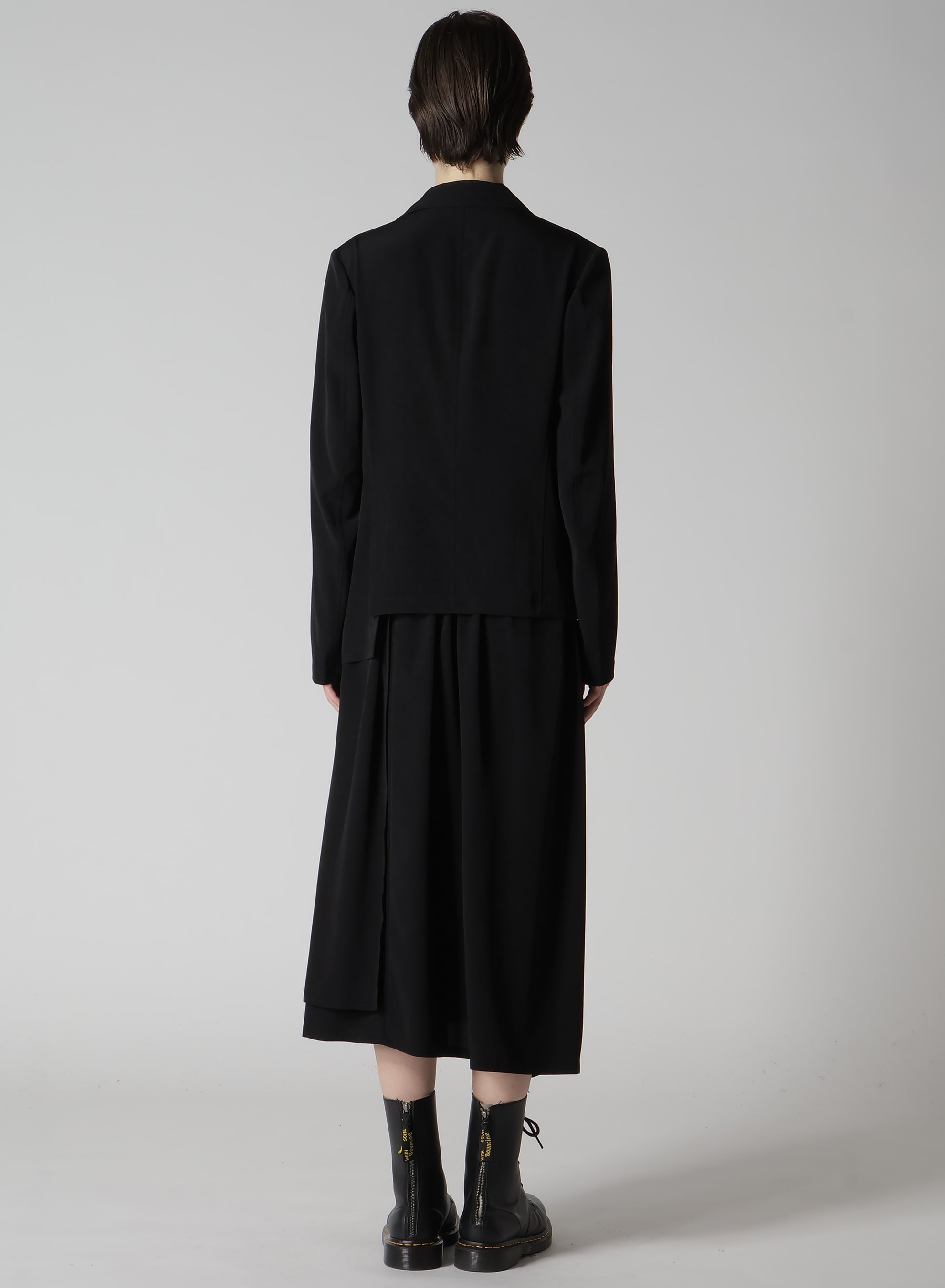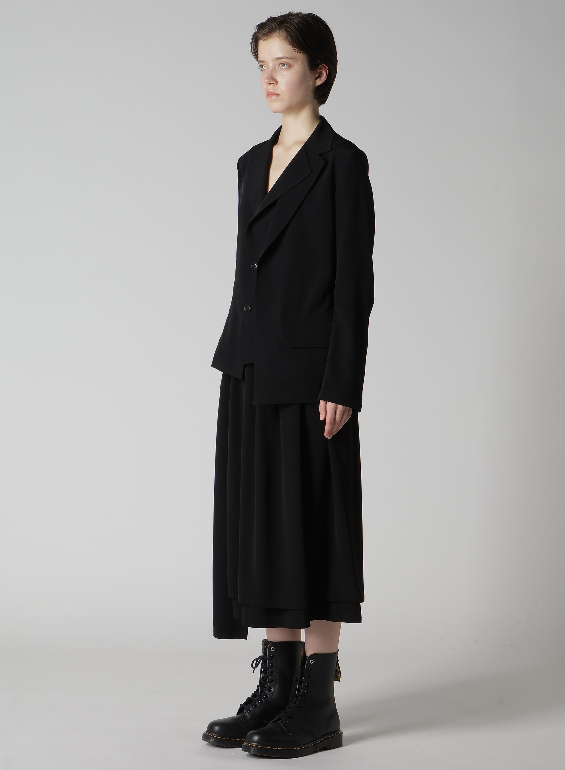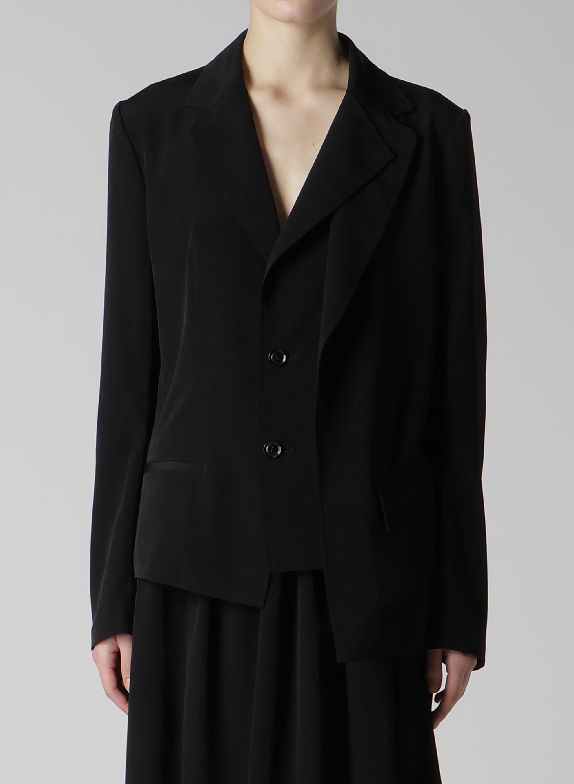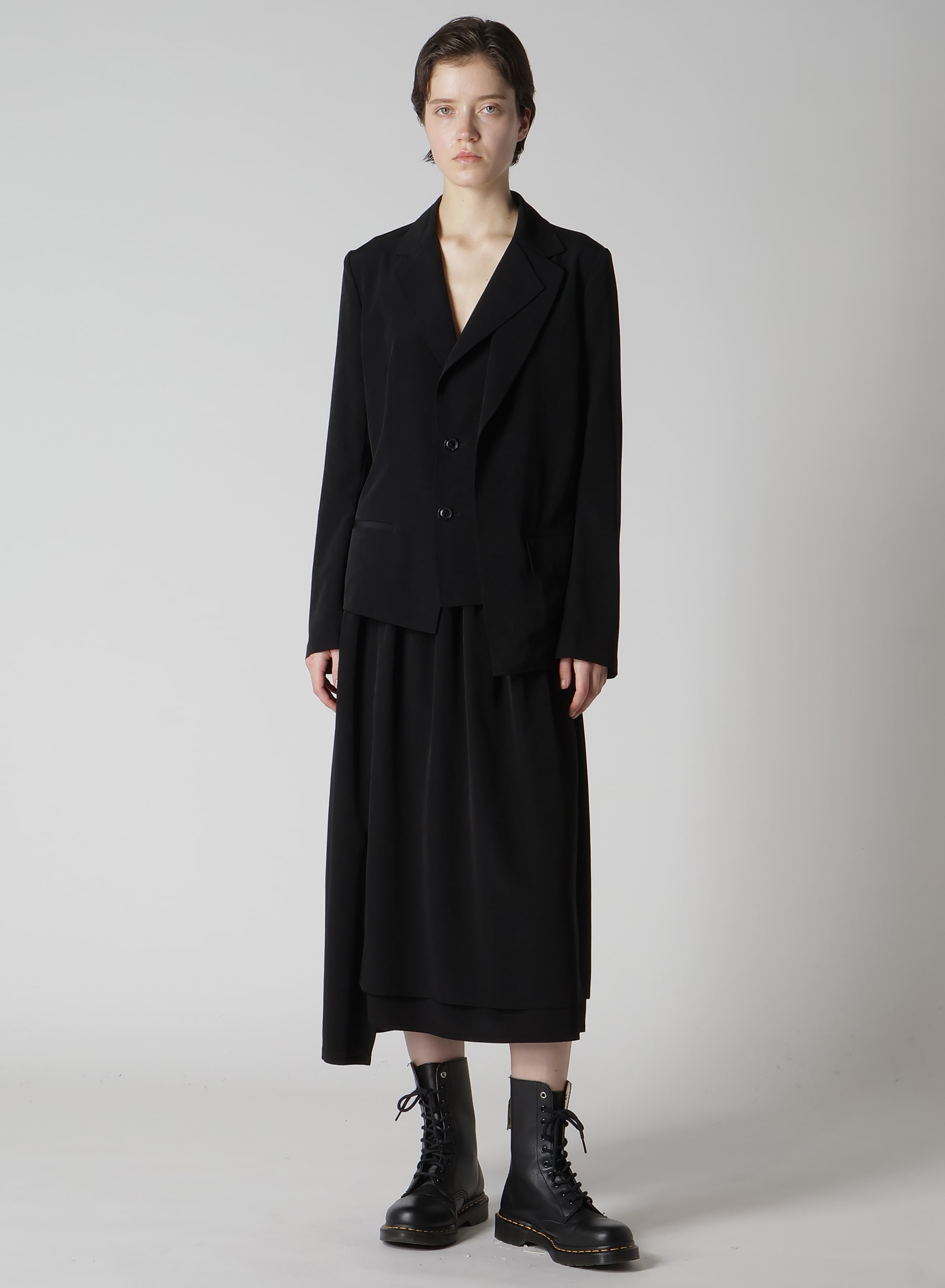 定番人気のトリアセテート・ポリエステルデシン生地を使用したレイヤードジャケット。シワになりにくく柔らかな光沢から高級感が感じられ、さらりとした軽い着心地でシーズンを通して重宝する素材です。左身頃だけが二重になったデザインで、クラシカルなスタイルの中にワイズらしいディティールの詰まったジャケットです。
