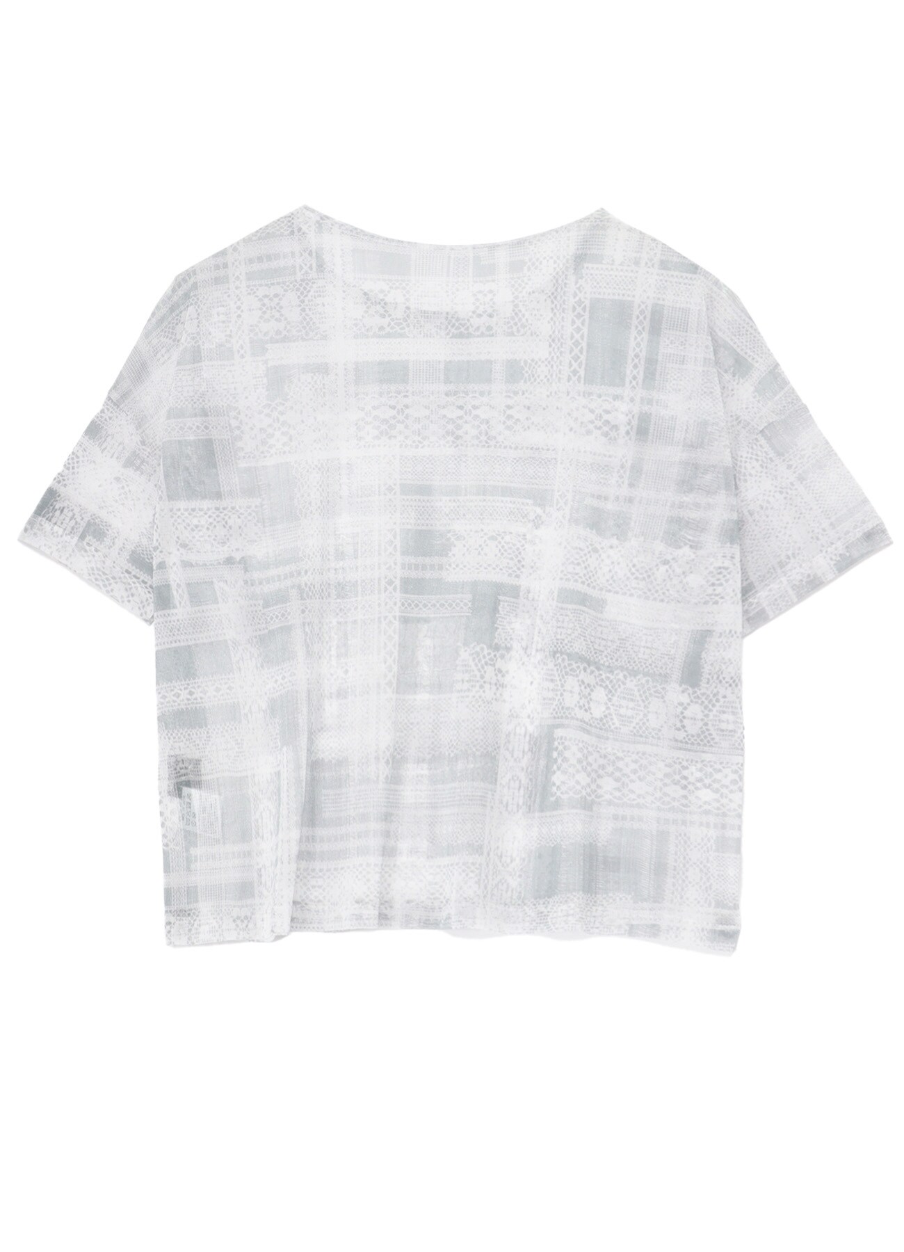 ¥35200Y's LACE COLLECTION様々なレースを重ね合わせた柄のチュールカットソー。ワイズ定番の伸び感のあるチュール素材を使用した透け感のあるアイテムです。肩のラインを落とした、ゆったりとしたシルエット。