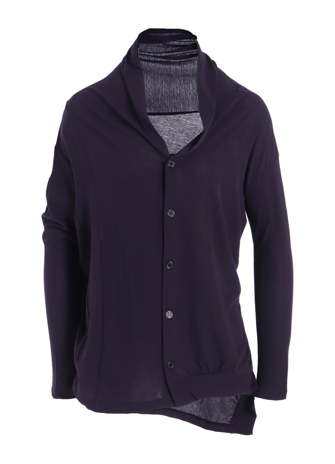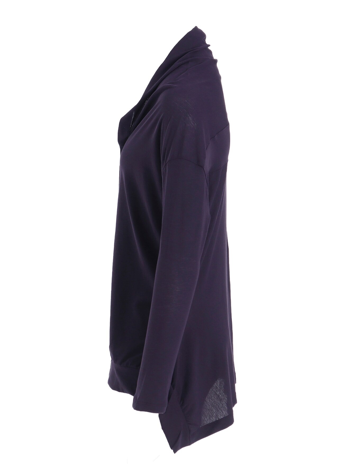 コットン強撚天竺の長袖カーディガン。さらりとした肌触りで春夏におすすめのアイテム。アシンメトリーなシルエットがユニークなデザイン。