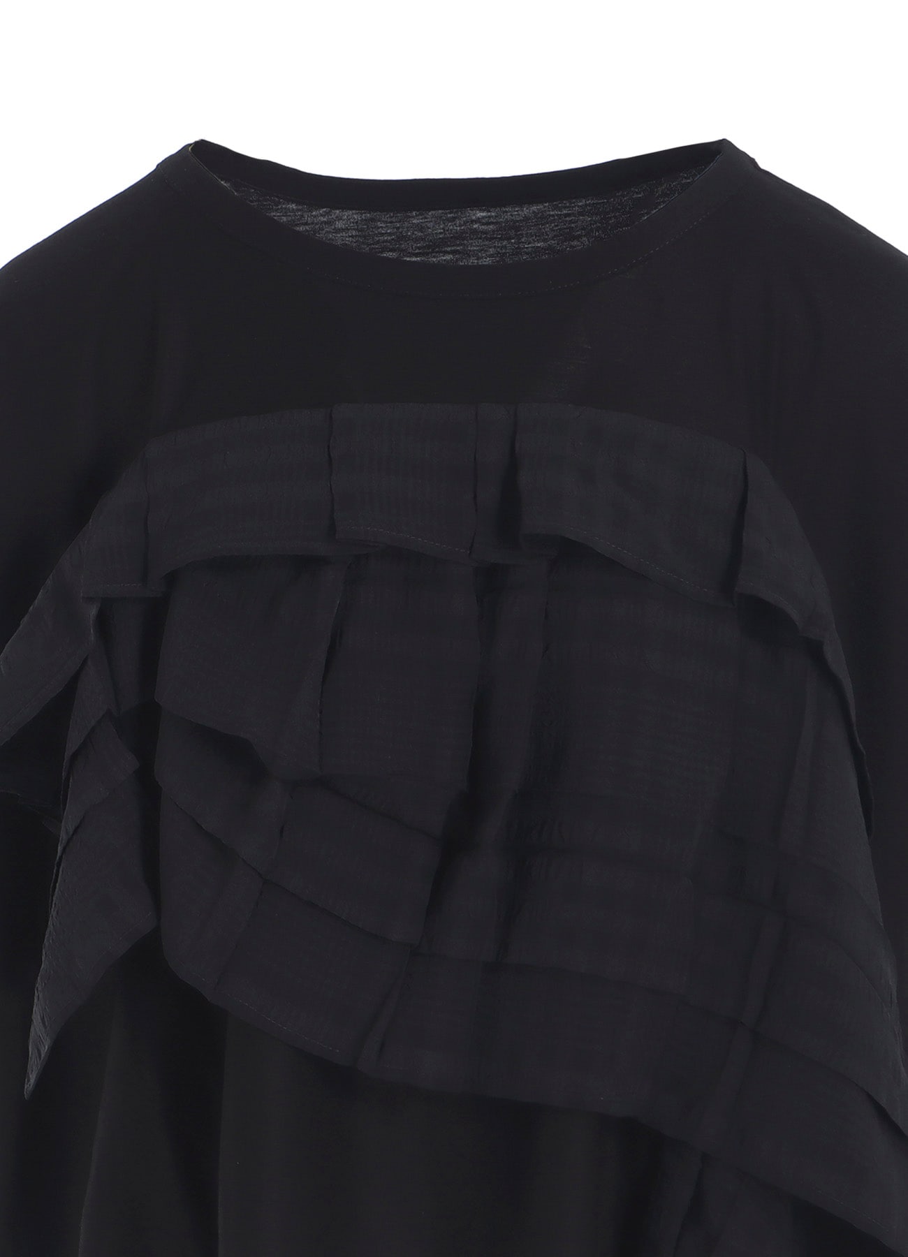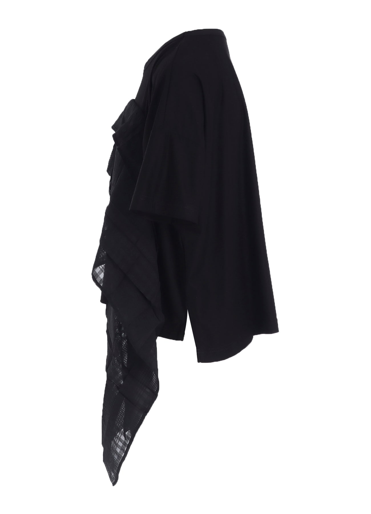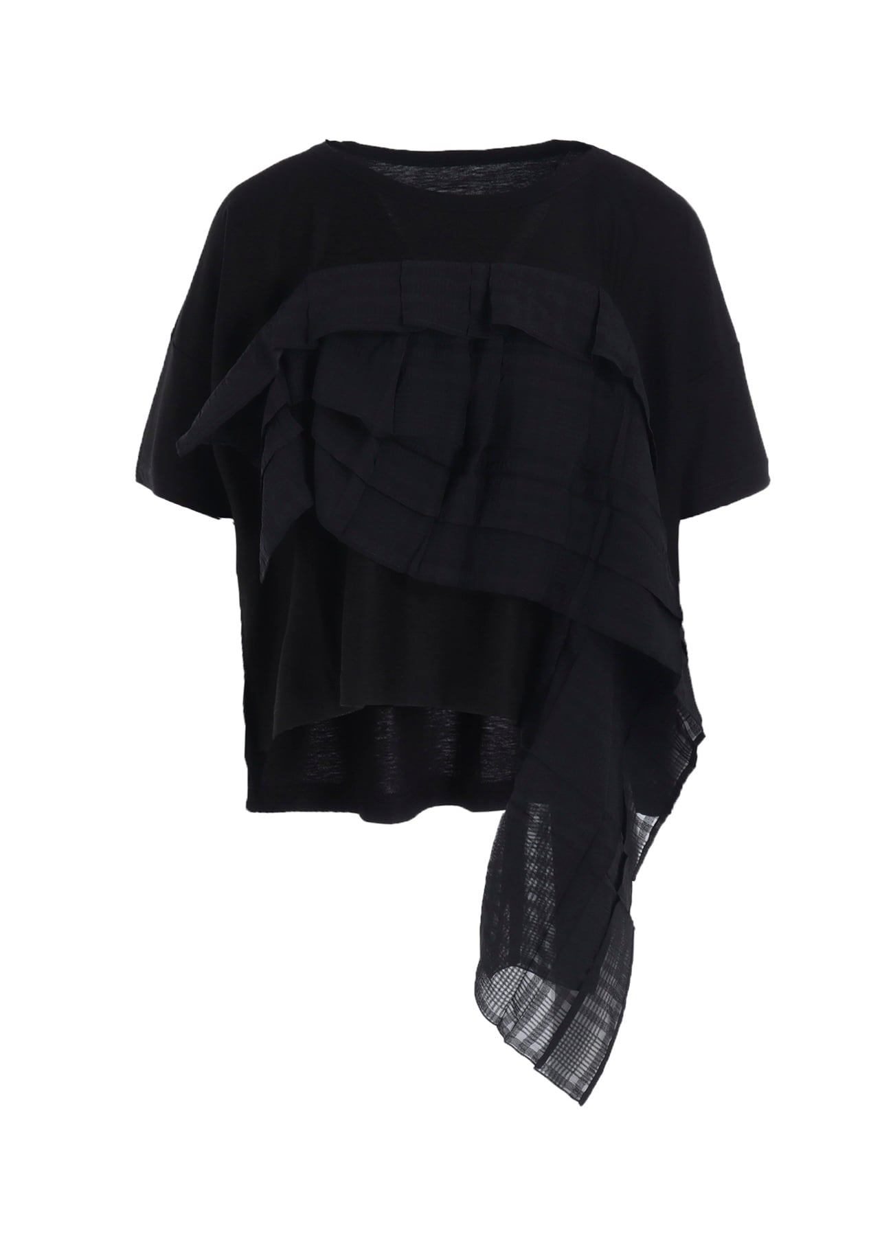 半袖カットソー。流れるように大胆にデザインされた布がポイント。1枚でも存在感のあるデザインカットソーです。
