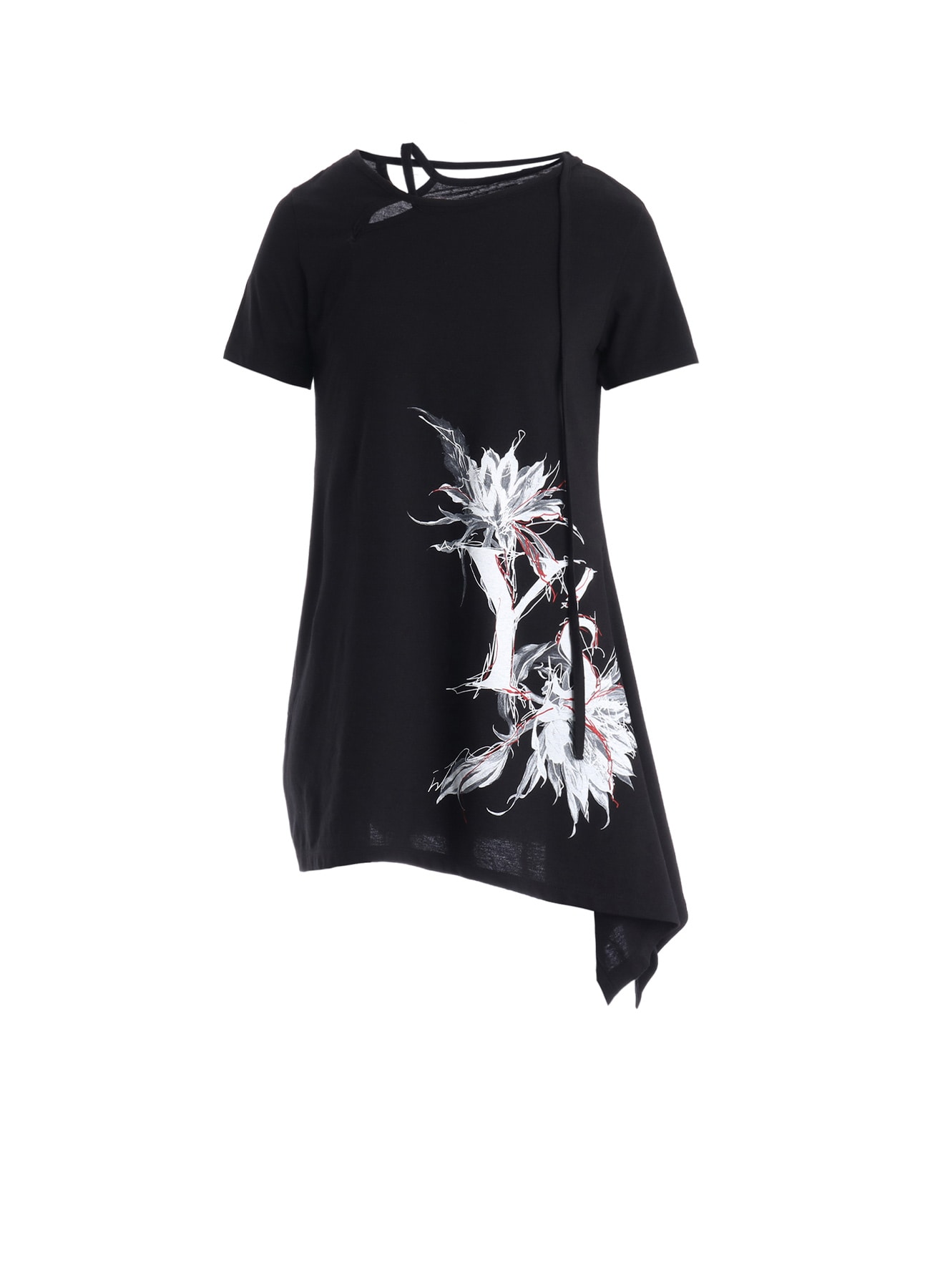 Y's Artician traceサボテンの花をモチーフに、刺繍・抜染・プリントなど、様々な技法で表現したカプセルコレクション。半袖カットソー。サボテンの花のモチーフと「Y's」のロゴを組み合わせたデザイン。首元の紐はお好みでアレンジすることが可能。チュニック丈で女性らしいシルエットに仕上げています。