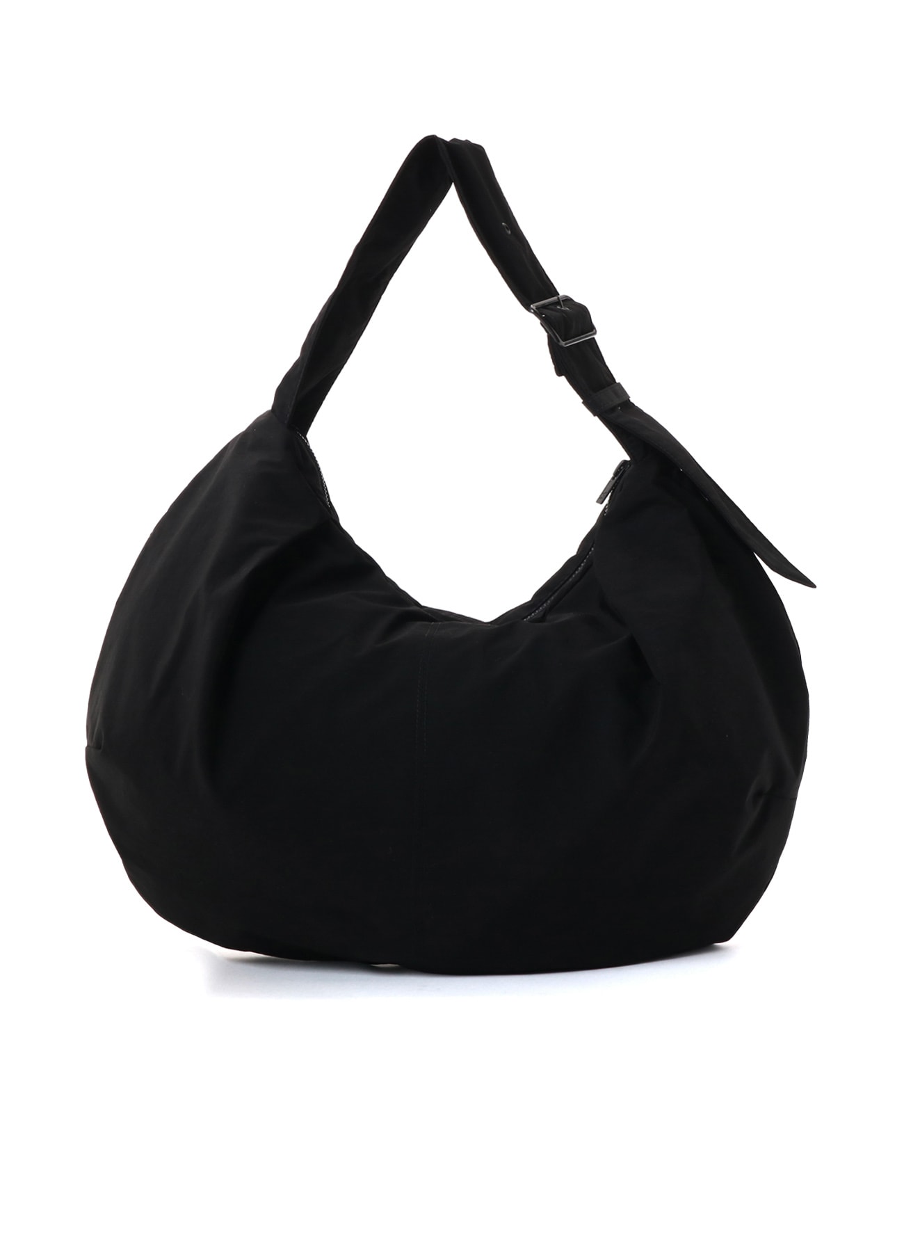 餃子型のナイロンバッグ。ほどよい光沢とナチュラルなシワによりヴィンテージ感があります。過去に人気のあった型をベースに大きめのバックルを付け、持ち手の長さを調節出来るようにリニューアルしました。内側には便利なポケット付き。