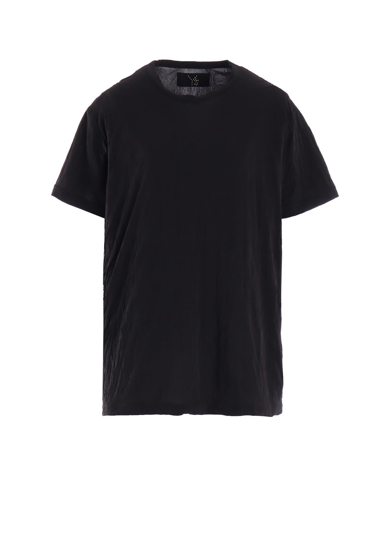 Y’s のロゴを刺繍で施した Y's ステッチシリーズ。ゆったりとしたサイズ感の半袖カットソー。シワ加工をほどこした風合いがポイント。
