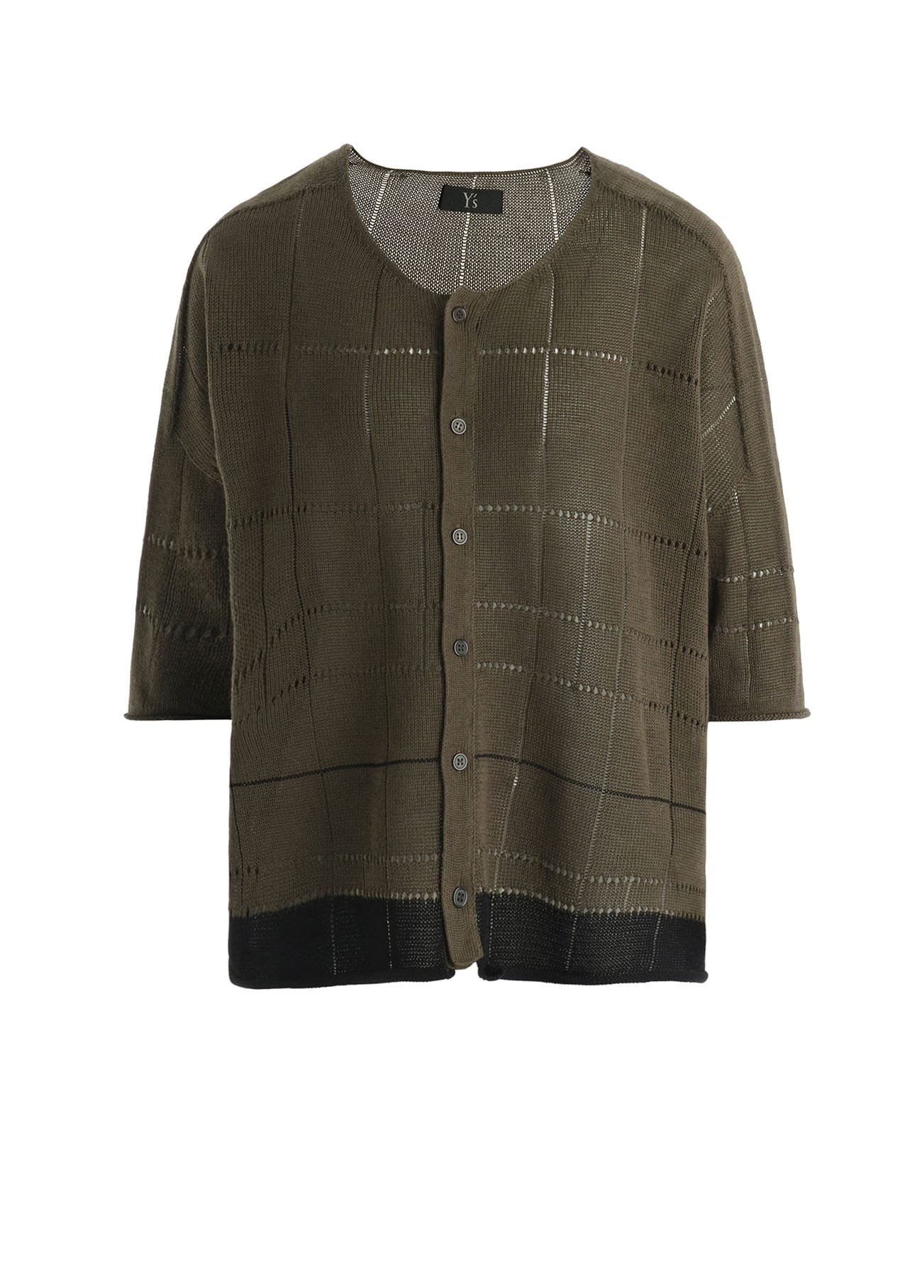 コットン素材のカーディガン。麻のような清涼感のある糸を使用し、ホールガーメントの製法で編んでいます。