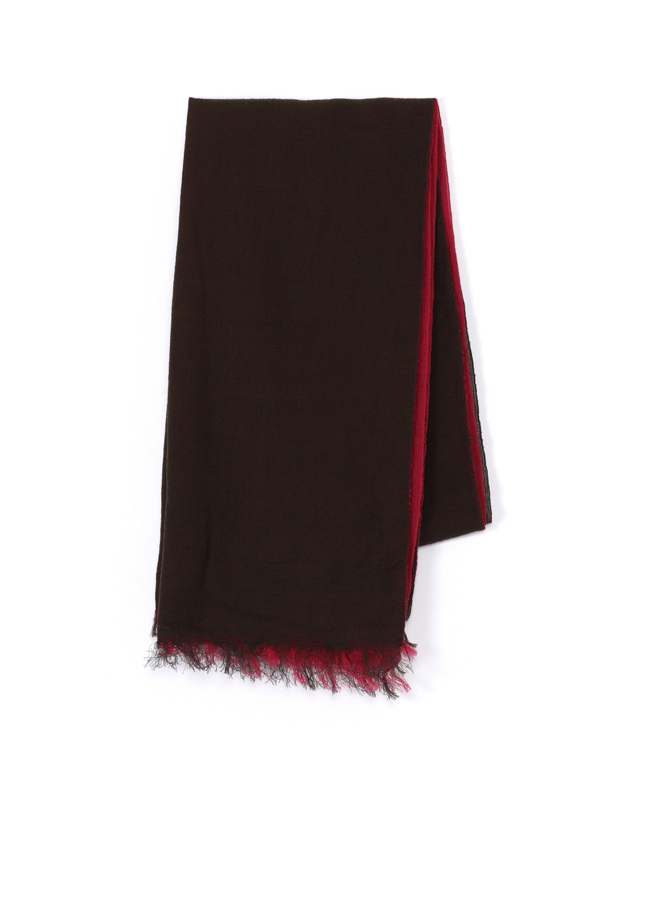 2枚はぎのウールストール。複数の色が組み合わされたストールは、巻き方で色の見え方や表情を変えてお楽しみいただけます。こちらの製品素材の特性上、摩擦や引っ掛け等による糸引き、ほつれが生じる場合がございますので取り扱いには十分ご注意ください。