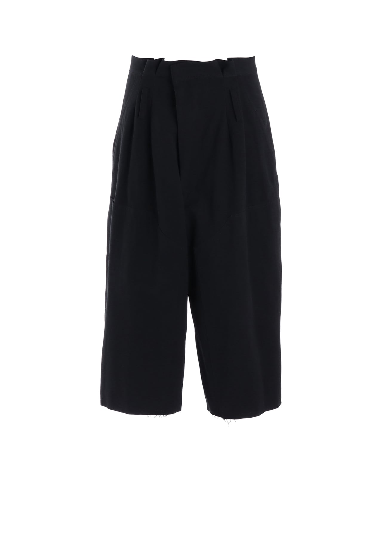 綿麻素材のハーフパンツ。自然なムラによるヴィンテージ感のある風合いがポイント。ウエストループをずらすことで独特のボリュームに仕上げています。