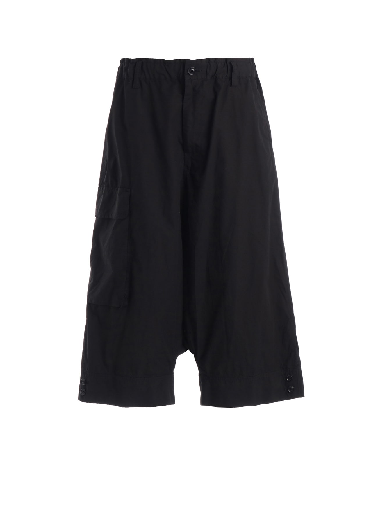 タイプライター生地のサルエルパンツ。薄手ながら透け感はなく、なめらかで張りのある風合いです。製品の状態で染めを加工をしています。ウエストの紐でサイズの調整が可能。