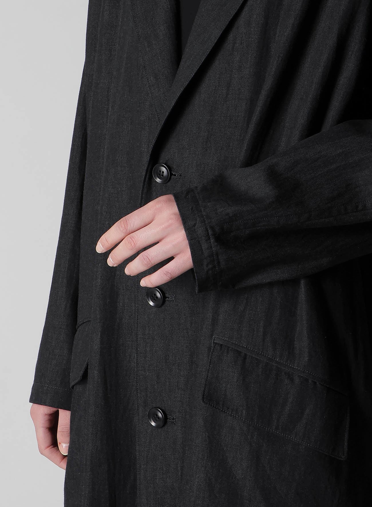 6OZ DENIM GARMENT FINISH 3-BUTTON TAILORED COAT