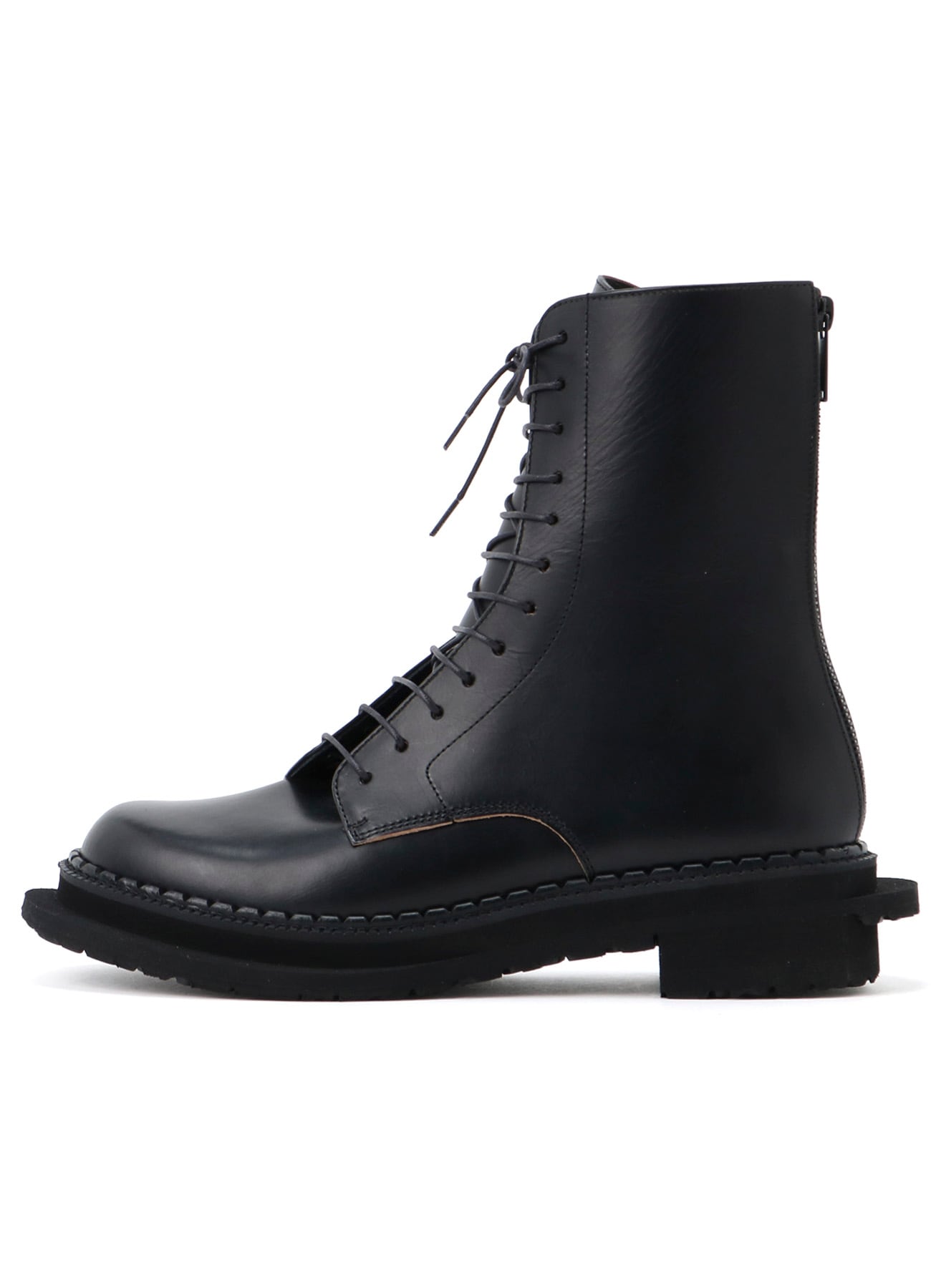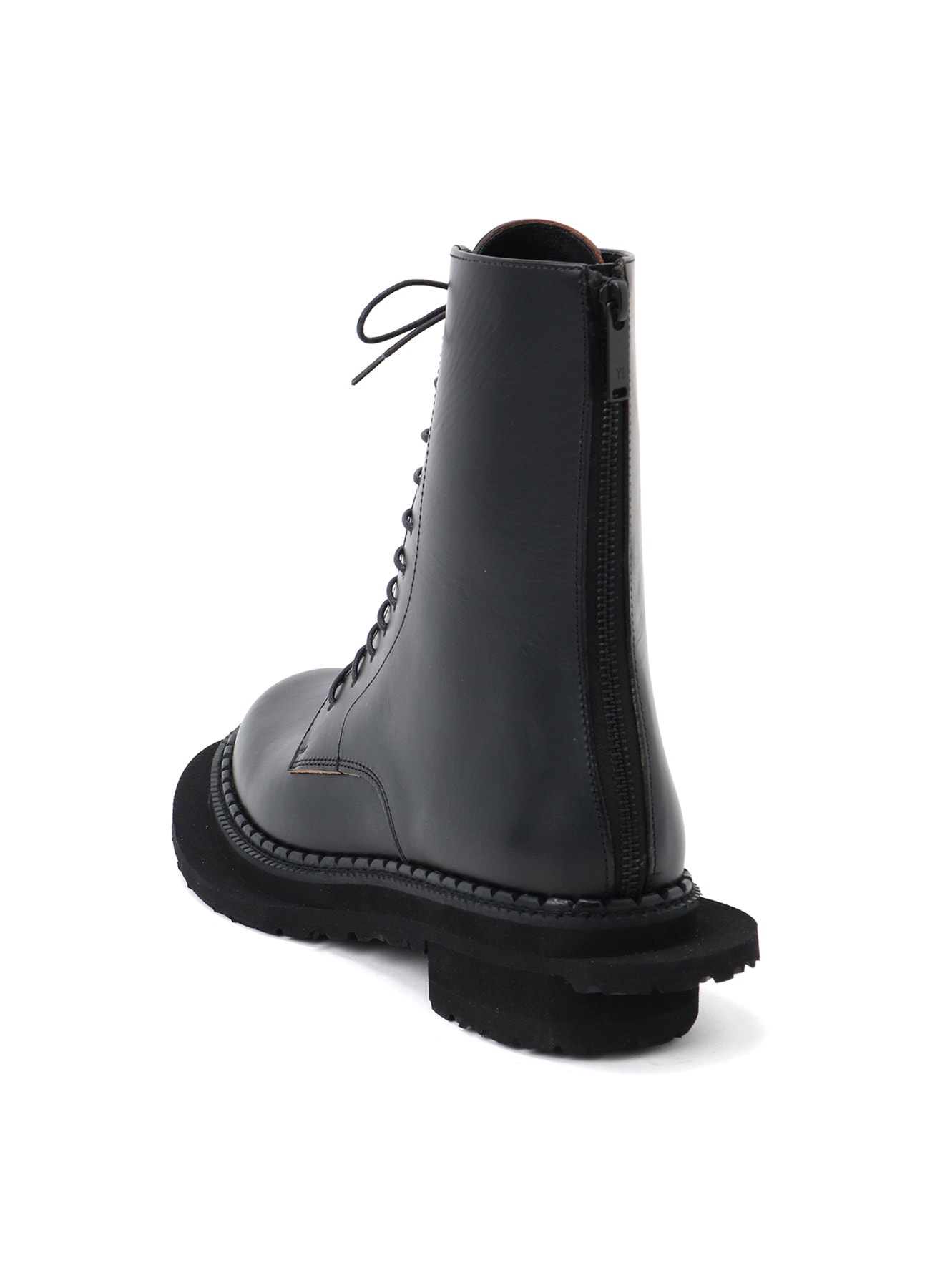 ソールと羽根がねじれているようにデザインしたブーツ。ユニークなデザインでコーディネートのアクセントにもなるアイテム。羽根は外側に向かって斜めに、底は2枚貼り付けつま先の外側とかかとの内側が飛び出しています。デザイン上ソールが長くなっています。履き心地や歩行に問題はございませんが、通常よりつま先が長いため、階段や突起物等にご注意ください。