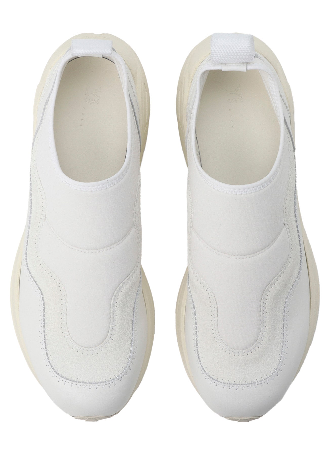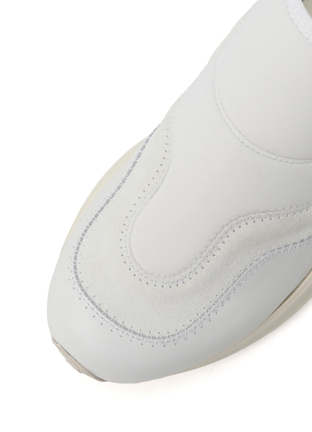 牛革を使用したスニーカー。濡れた地面でも強力なグリップ力を発揮するヴィブラム社の「MEGA GRIP」ソールを採用。着地の衝撃を和らげながらエネルギーに変え、自然な足運びをサポートします。風合いの異なるレザーを組み合わせており、ギザギザとしたステッチがワンポイントに。