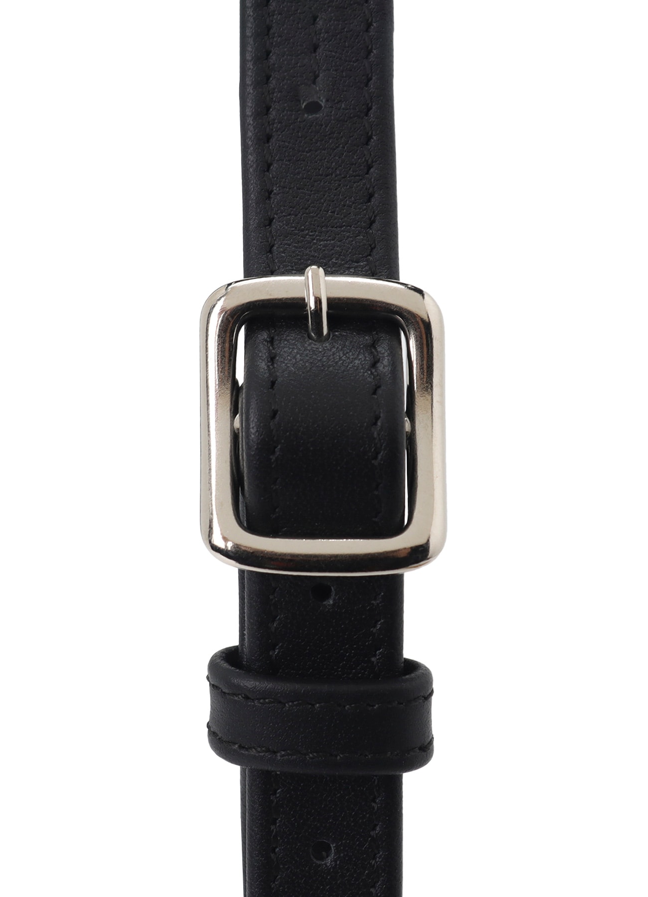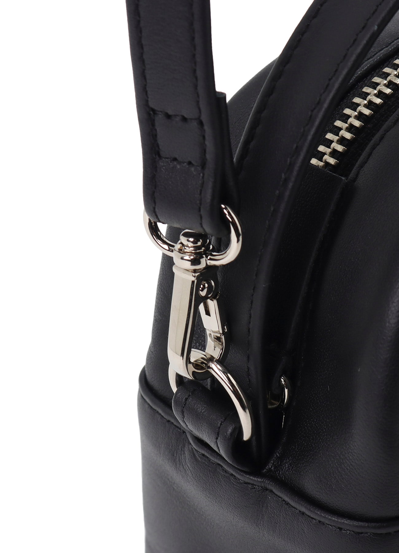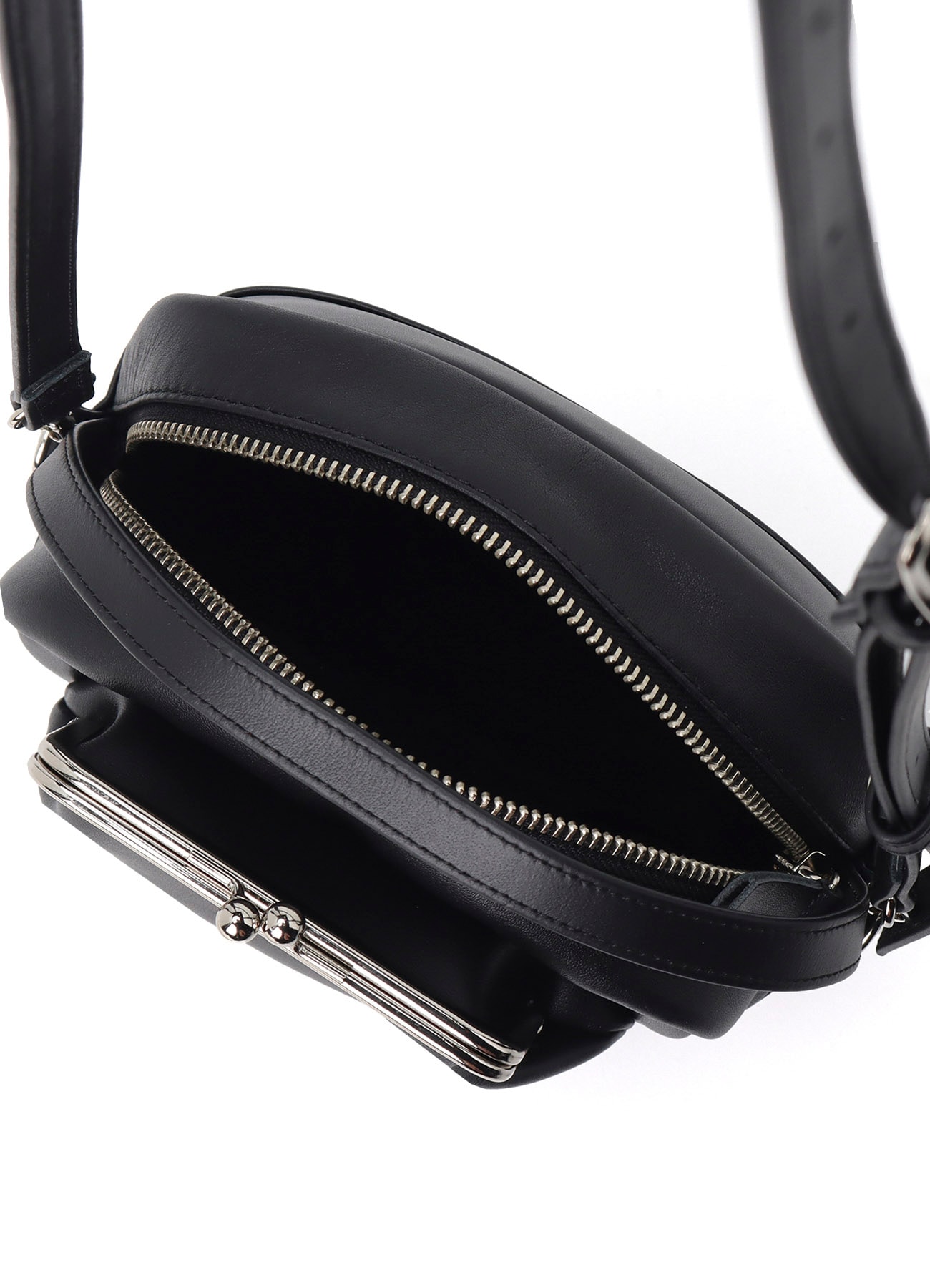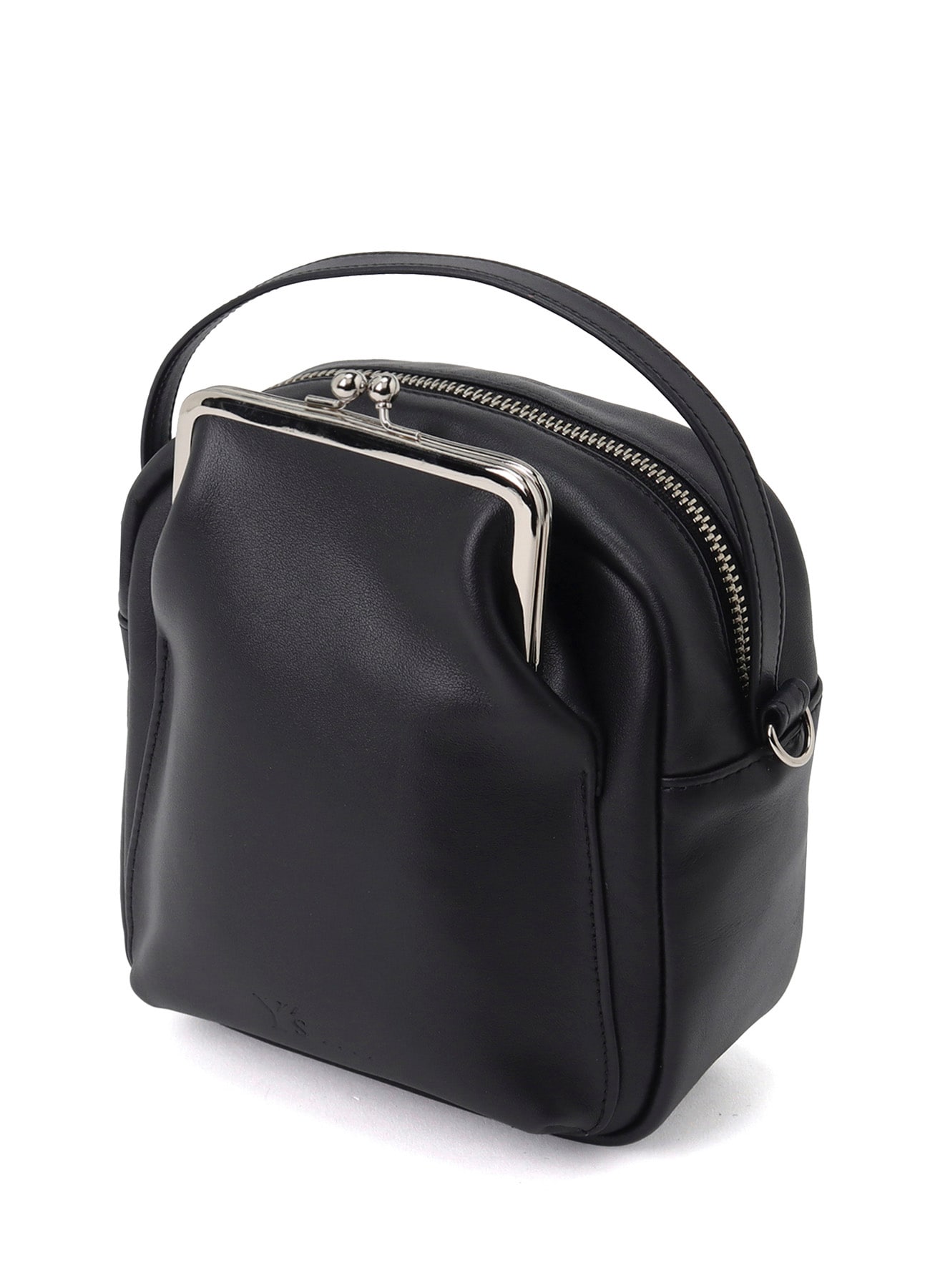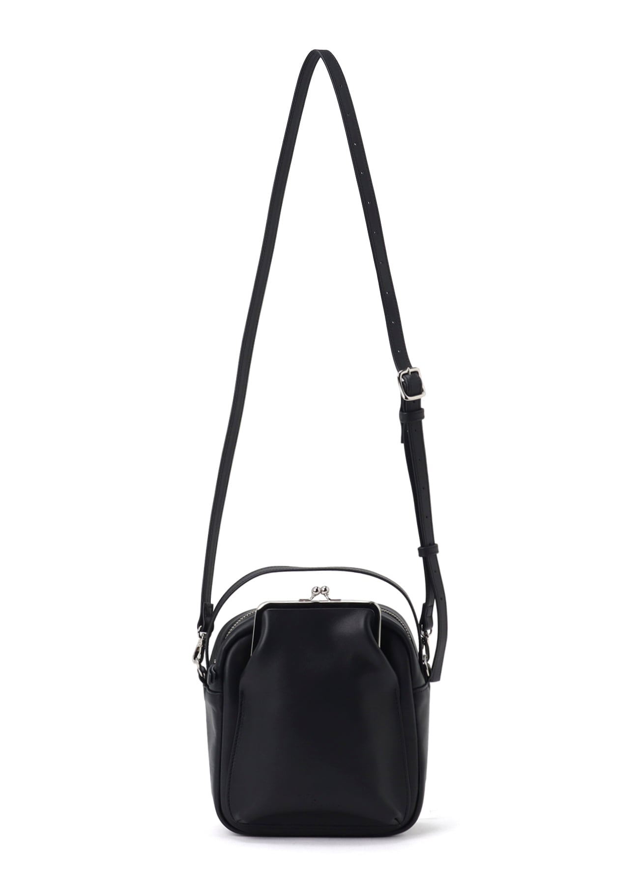 高級感のある半艶レザーを使用したがま口付きバッグ。小ぶりながらマチがしっかりあり、収納力にも優れています。ショルダーストラップは取り外し可能でハンドバッグとしてもお使いいただけます。