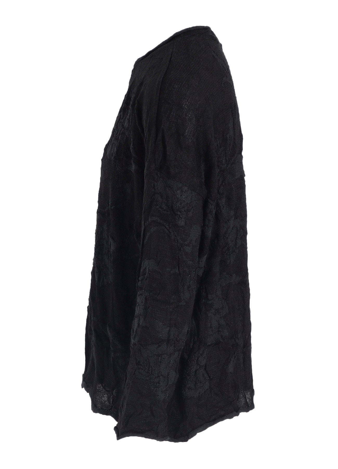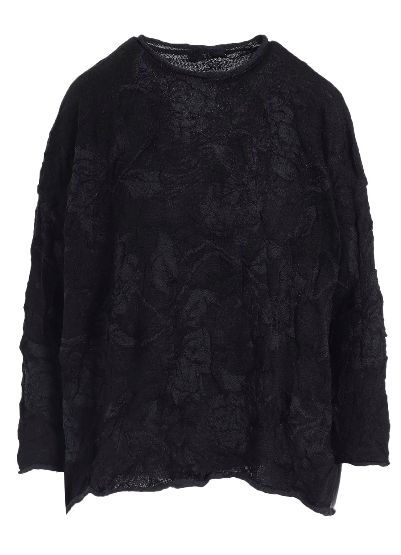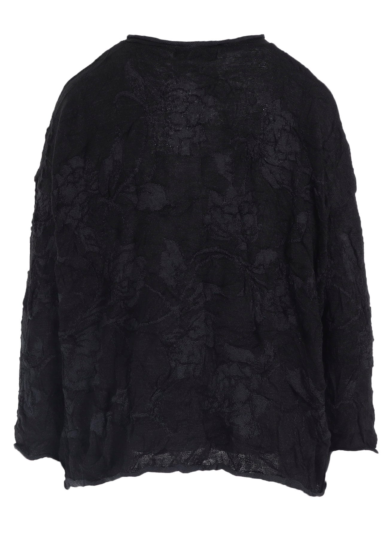 花柄の丸首ビッグプルオーバー。デコボコとしたリンクス編みでシワ加工を施しています。毎シーズン人気のパターンで肩のラインを落とし身幅はゆったりとしていますが丈は短めのため、どんなボトムスともバランス良く合わせられるアイテムです。適度なストレッチ性がございます。