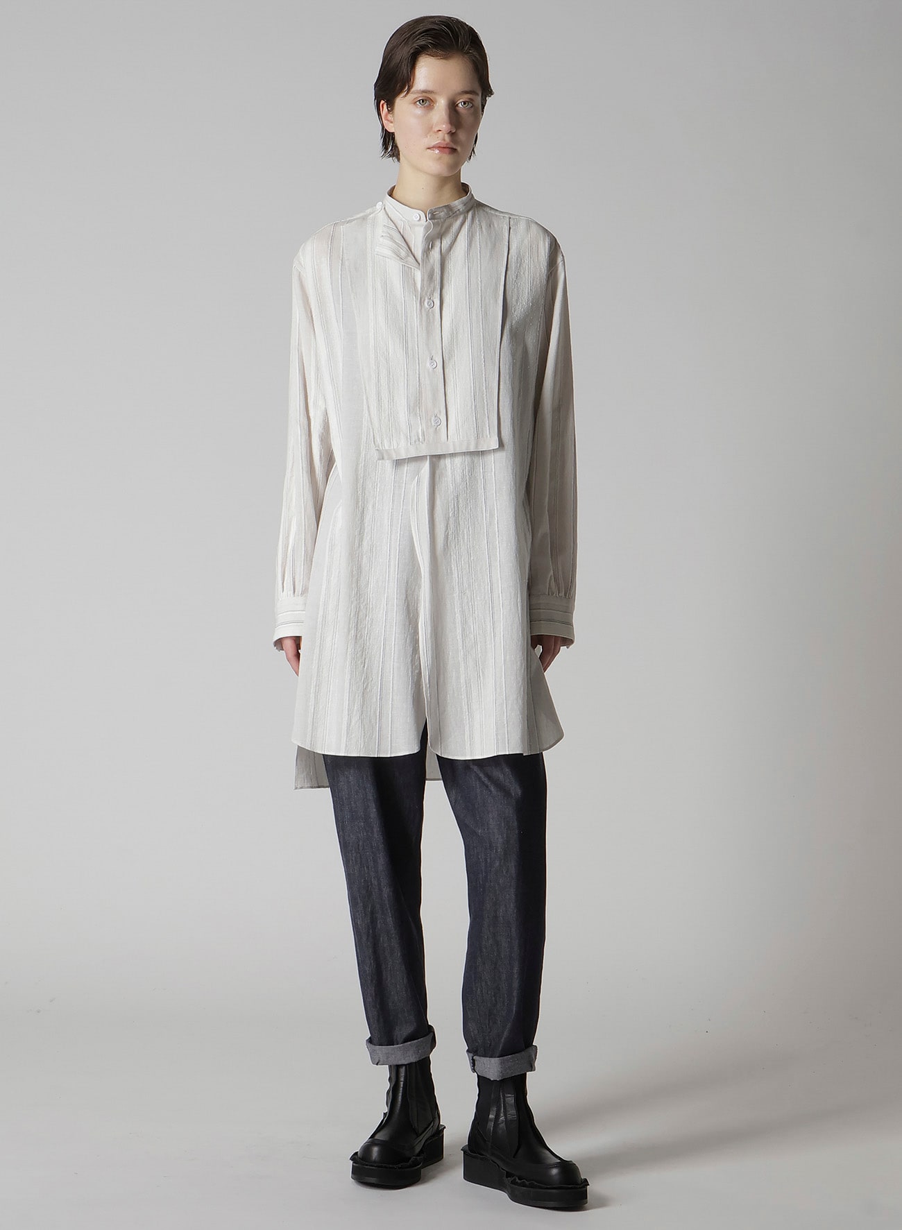 STRIPE SHRINK-FINISH FRONT CLOTH BLOUSE