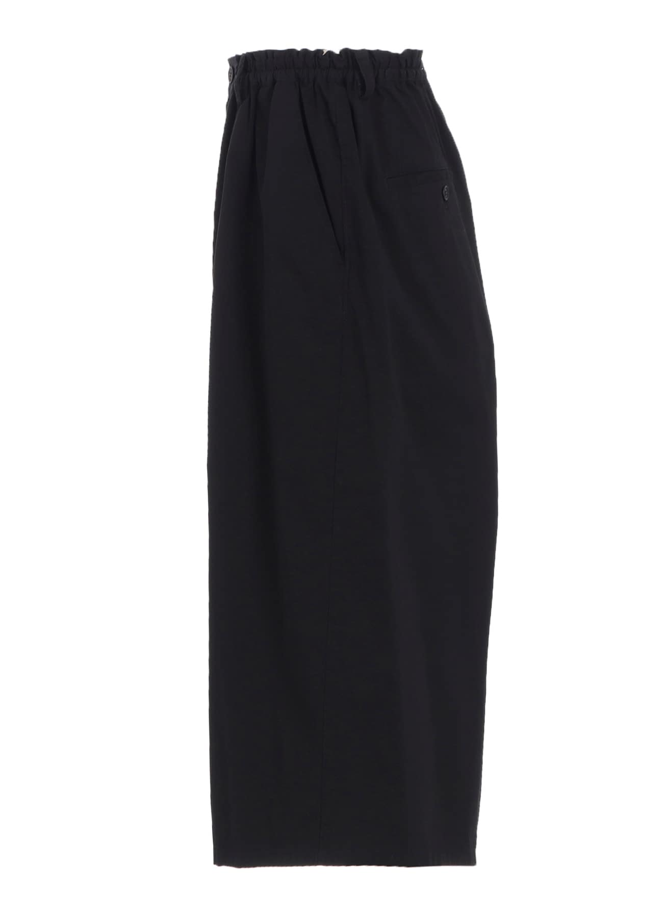 やさしく滑らかで上品な風合いの右脇ドレープパンツ。ウエストにゴムと紐が通っており、ウエストサイズの調整が可能。左右と左後ろにポケットが付いています。