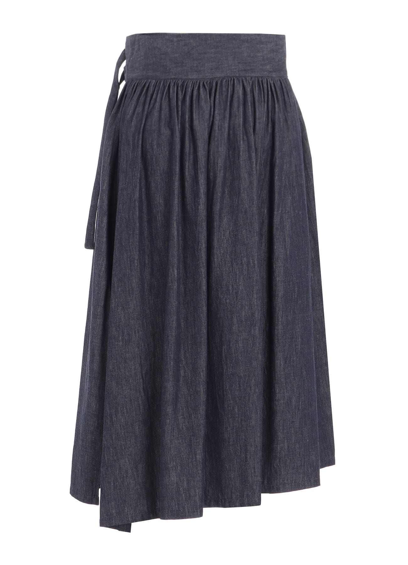 6OZ DENIM GARMENTFINISH ASYMMTRIC GATHER SKIRT