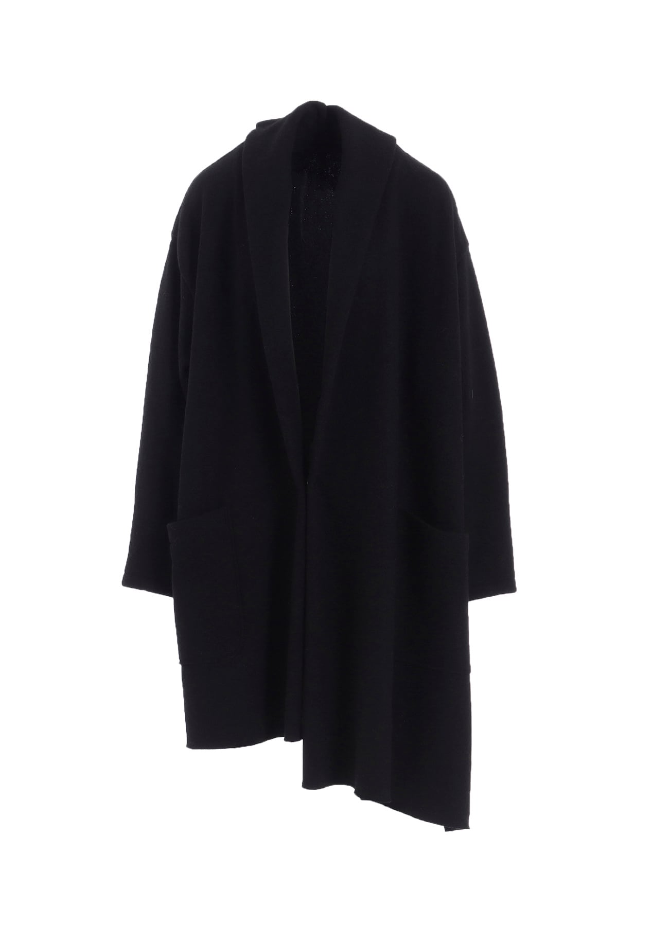 軽く、温かいアウトポケット付きの羽織り。左前身頃にフレアを入れてアンバランスに作ったデザインがポイント。カットソー生地で気軽に羽織れてとても使い勝手の良いアイテムです。