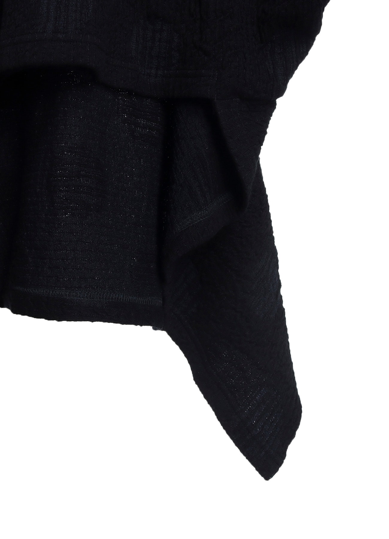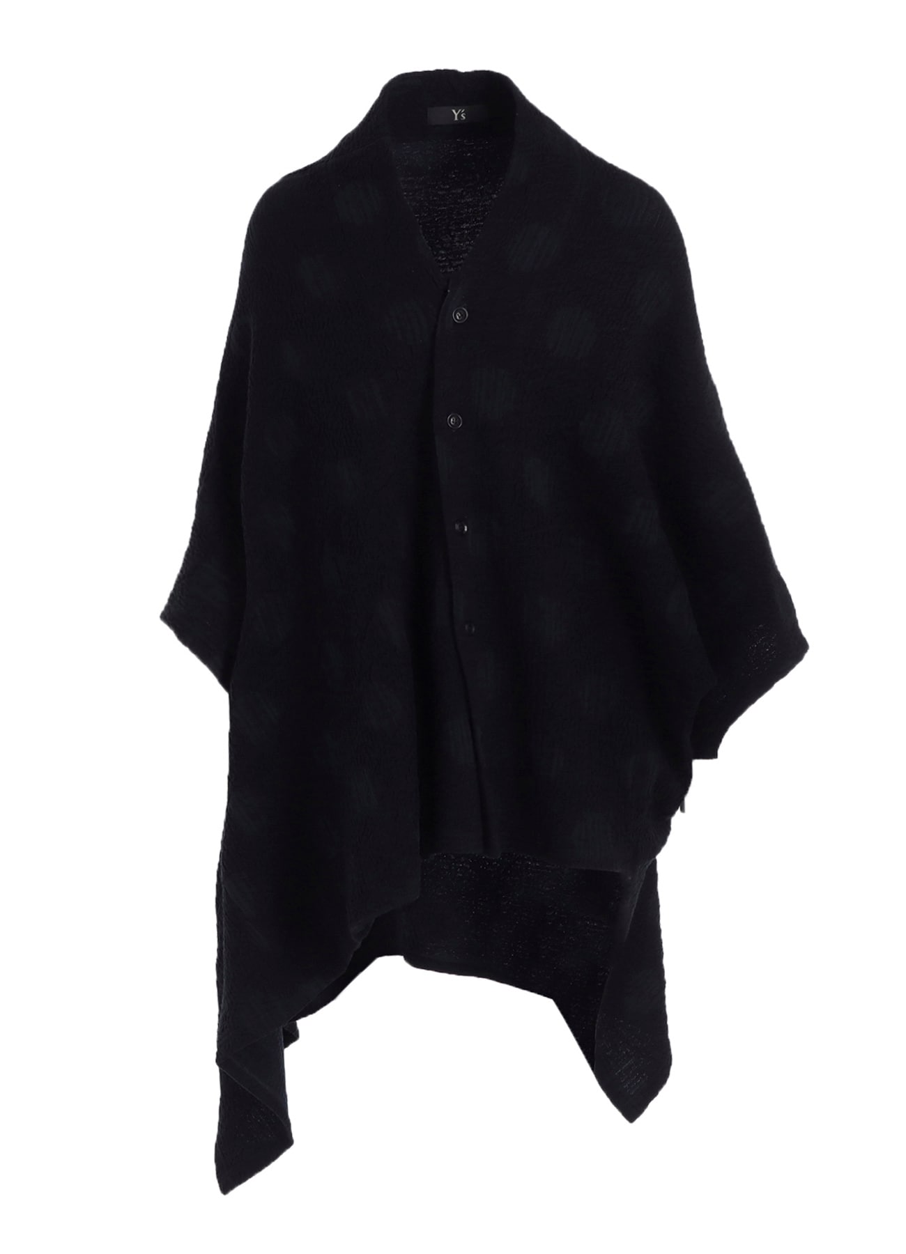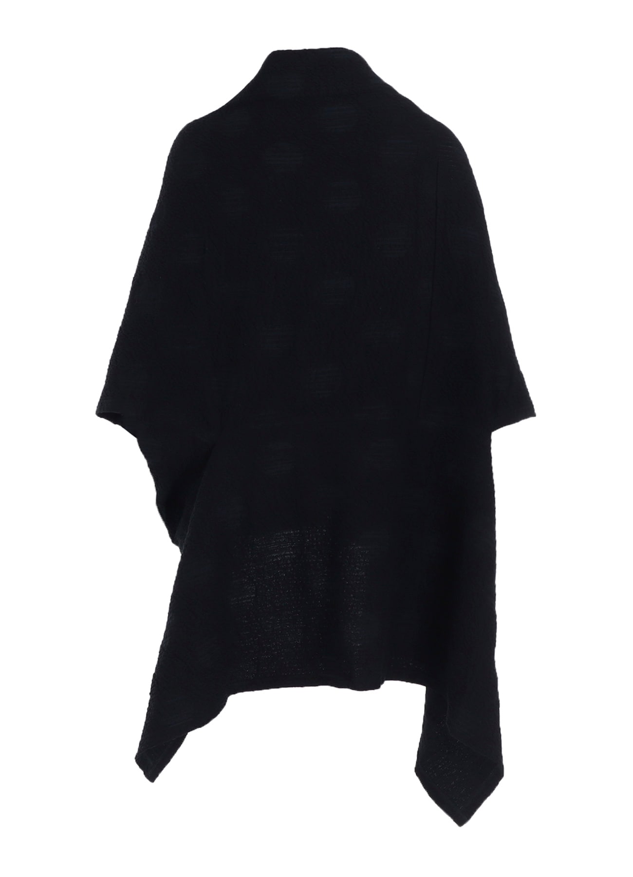 伸びがよく軽い着心地のアシメトリーカーディガン。水玉の中がランダムストライプになっています。ドレープ感があり、布を纏うようなアシンメトリーなシルエット。