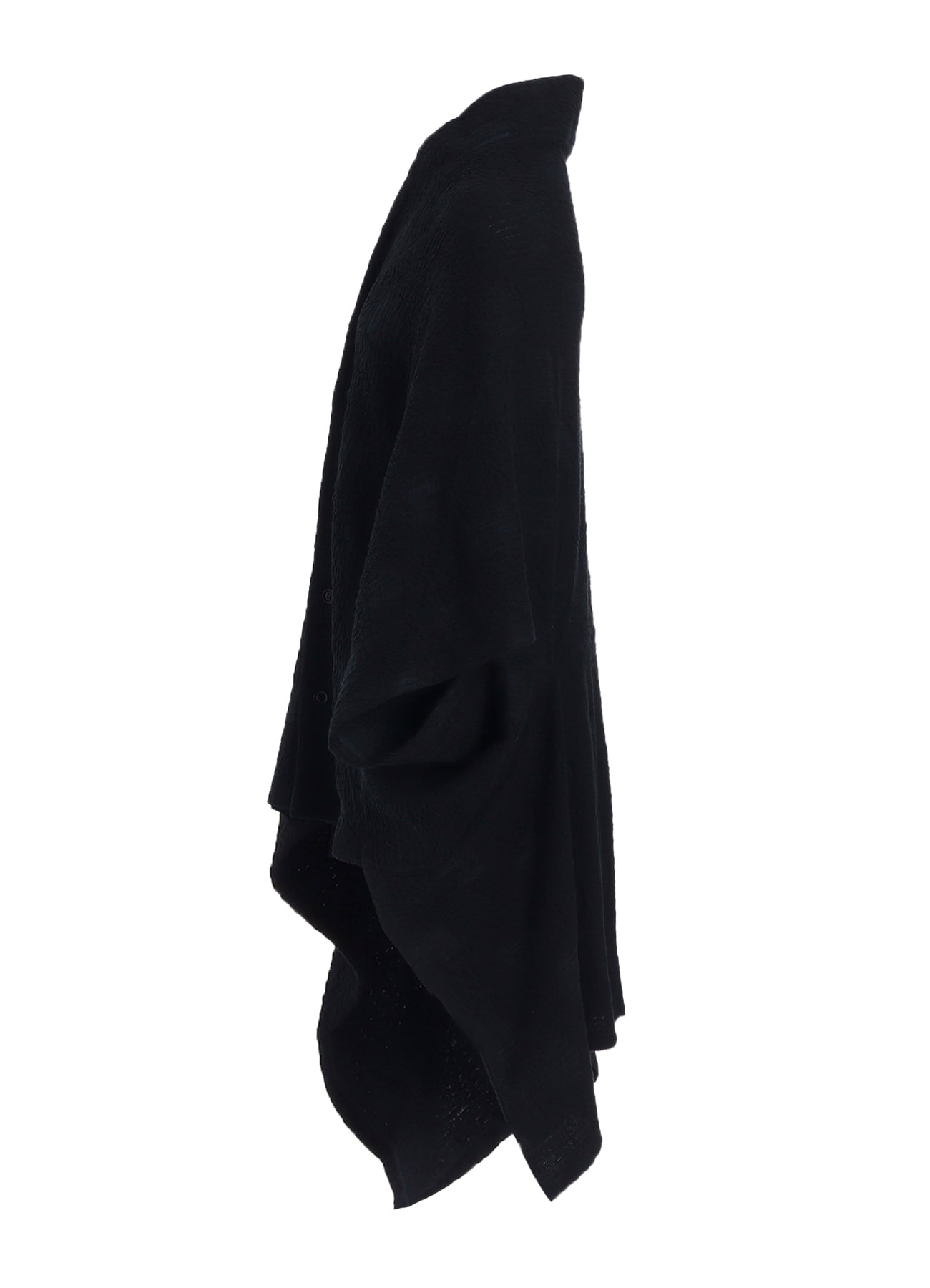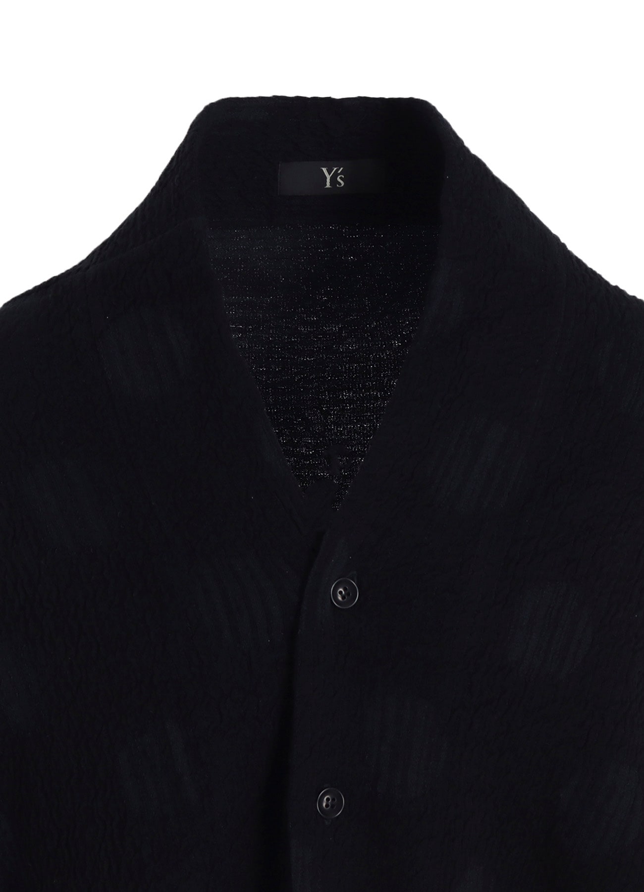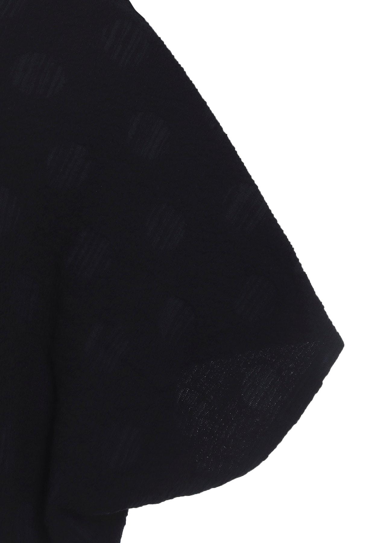 伸びがよく軽い着心地のアシメトリーカーディガン。水玉の中がランダムストライプになっています。ドレープ感があり、布を纏うようなアシンメトリーなシルエット。