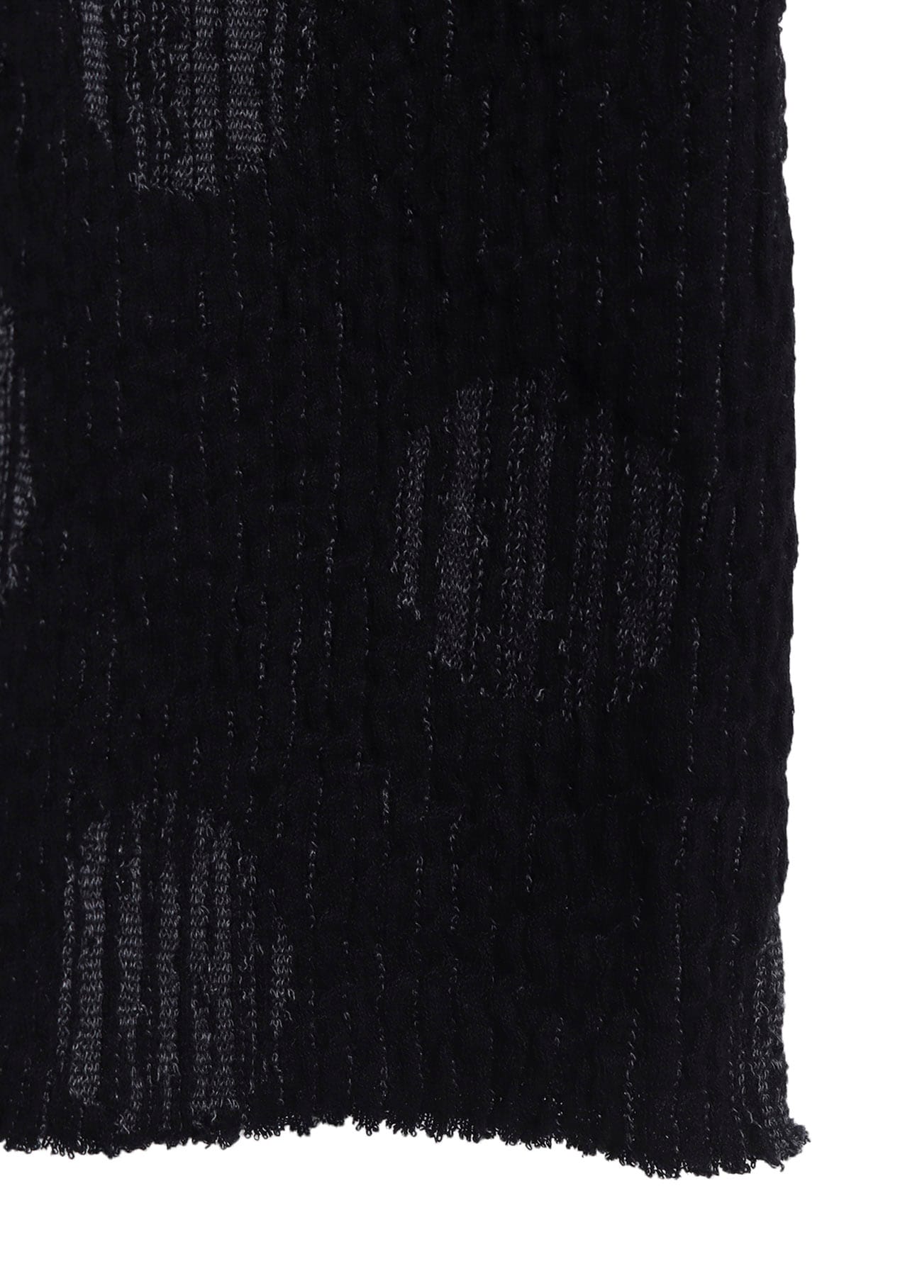 伸びがよく軽い着心地の長袖カットソー。水玉の中がランダムストライプになっています。襟元や左裾の段差が印象的なデザイン。ワンピースのようなロング丈で右前にはポケットが付いています。