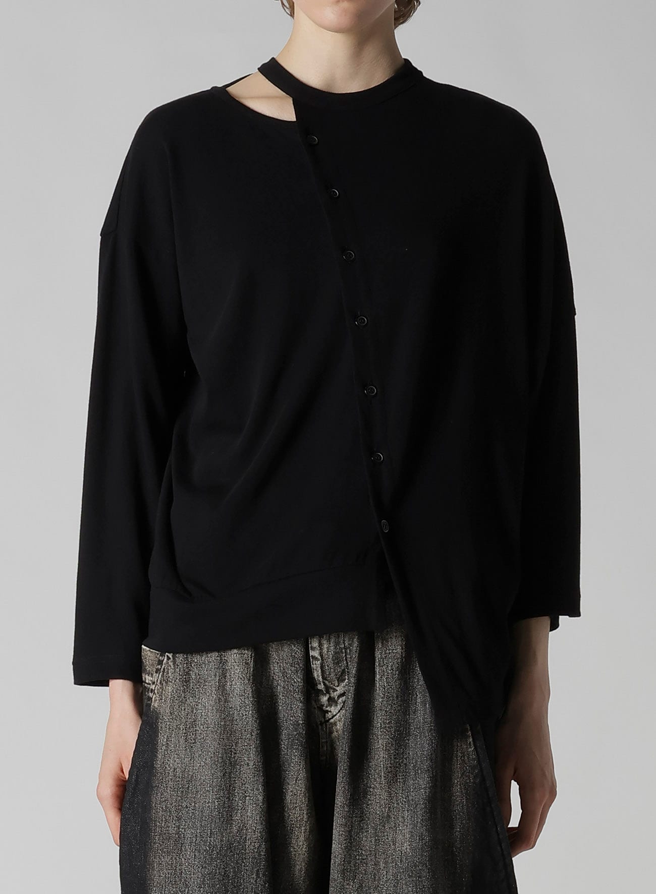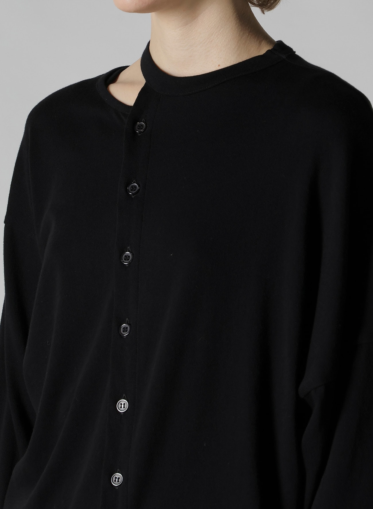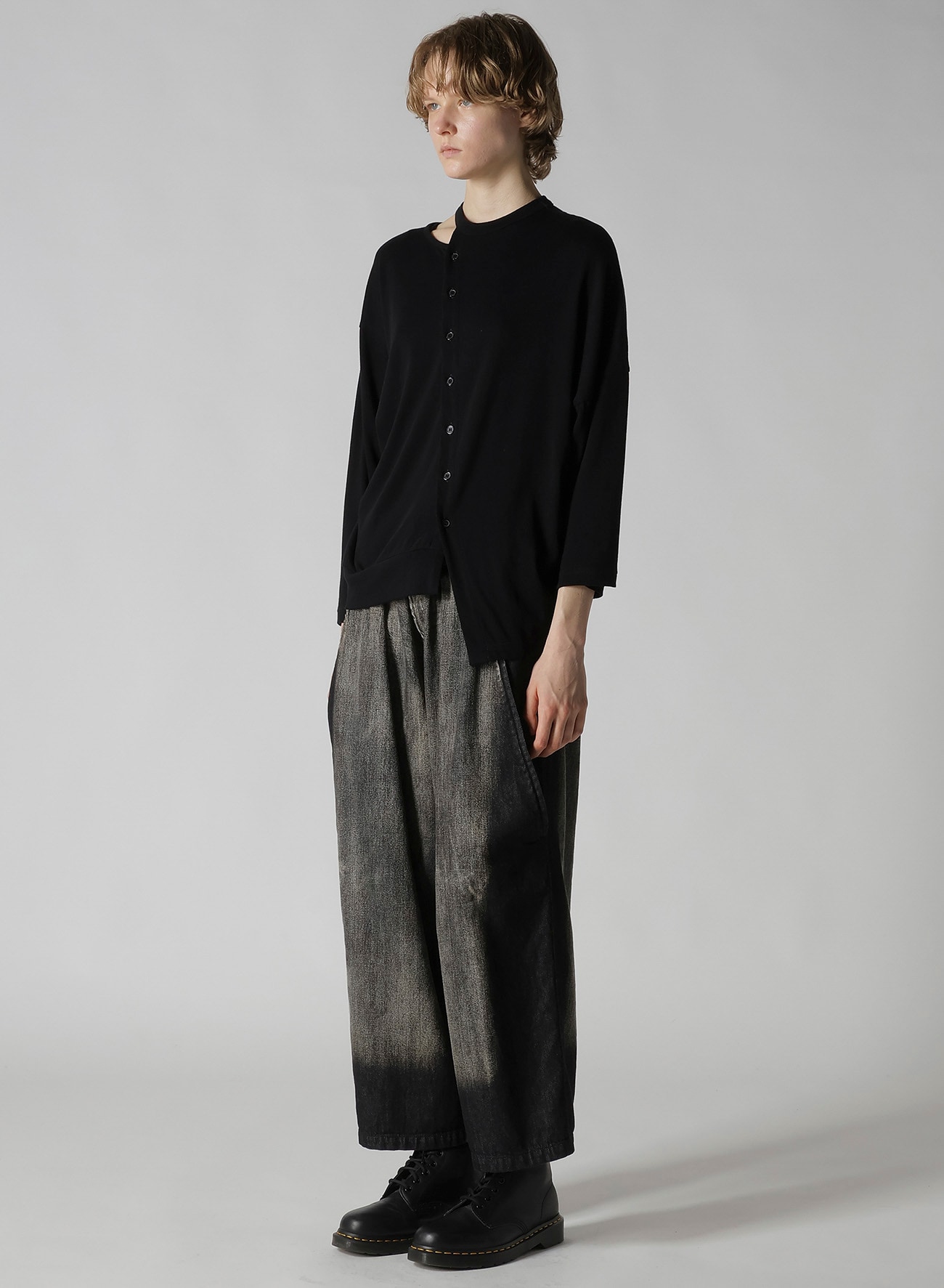 ドレープのでるアシンメトリーのカーディガン。左右で身幅、袖丈、袖幅がアシンメトリーになっています。襟元も左右で段違いになっており、襟まわりの紐は自由に結んでお召し頂けます。柔軟加工を行い、軽くさらりとした気持ちのよい着心地です。