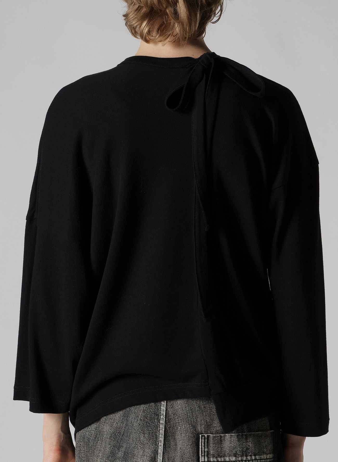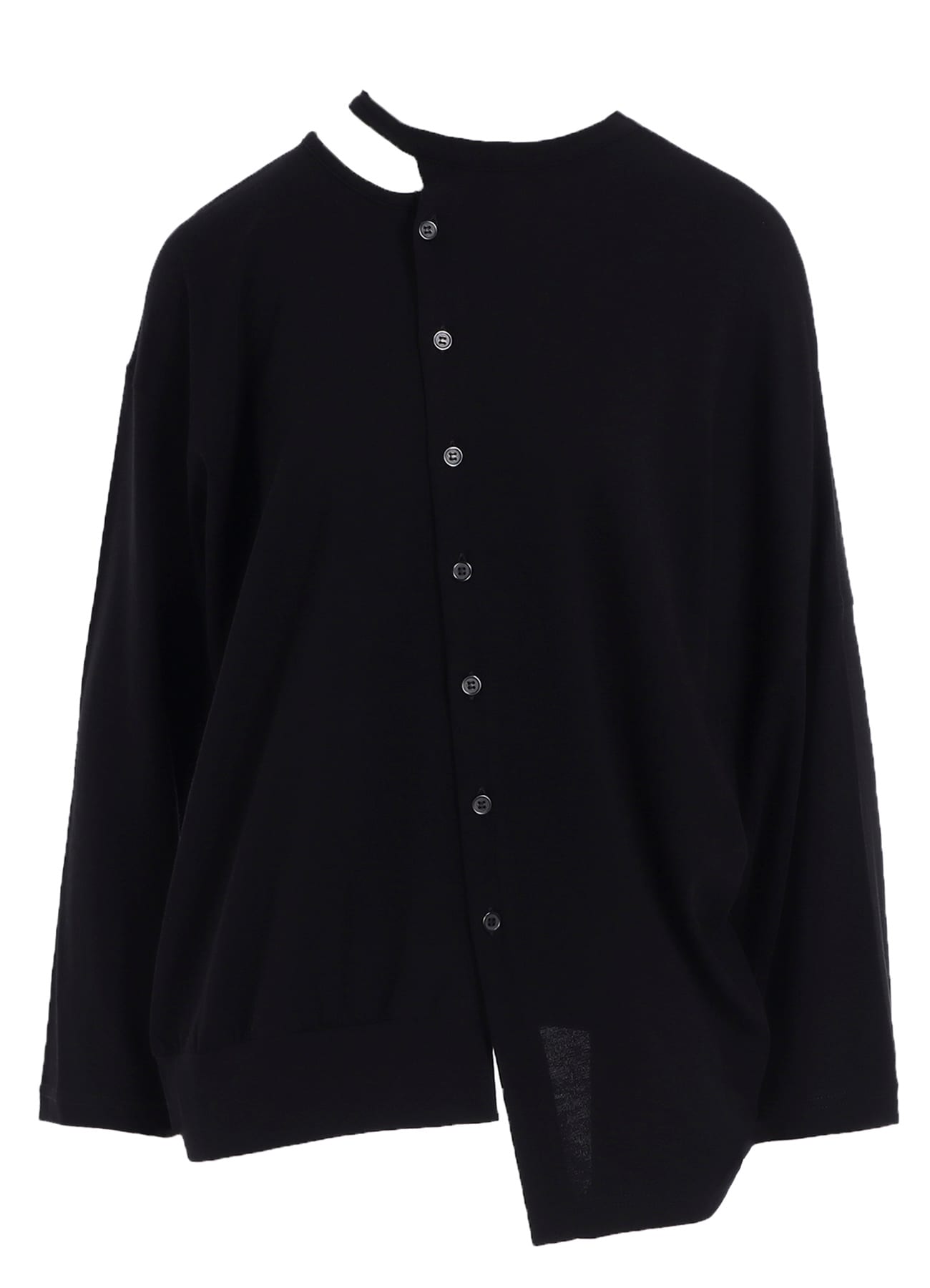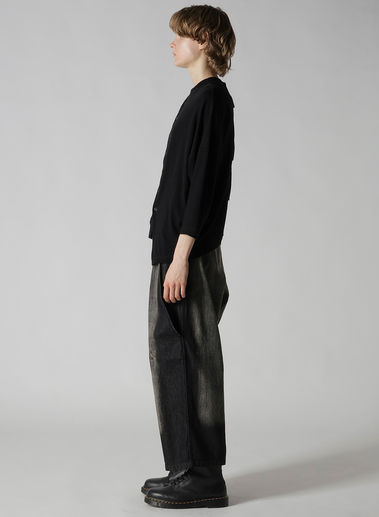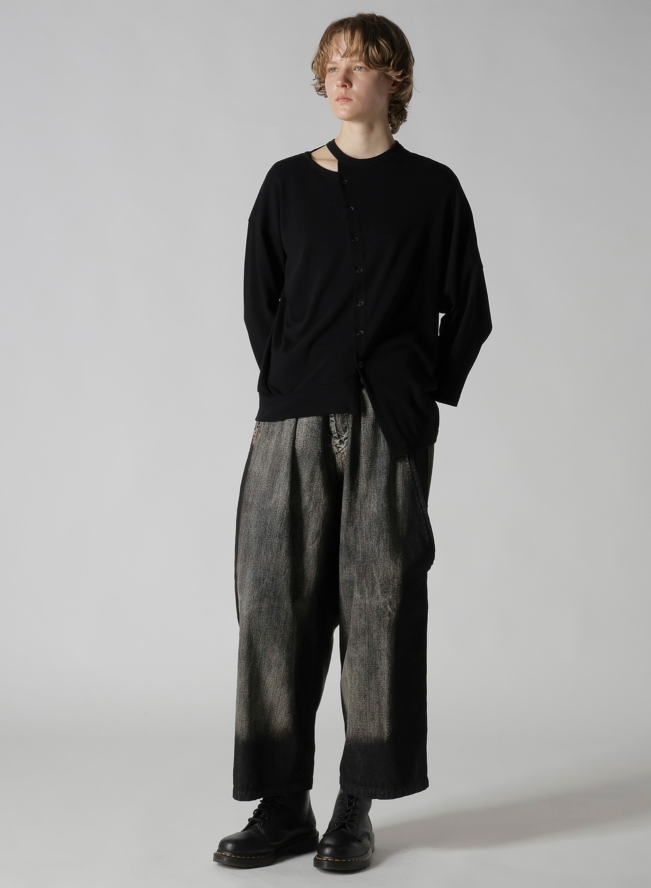 ドレープのでるアシンメトリーのカーディガン。左右で身幅、袖丈、袖幅がアシンメトリーになっています。襟元も左右で段違いになっており、襟まわりの紐は自由に結んでお召し頂けます。柔軟加工を行い、軽くさらりとした気持ちのよい着心地です。