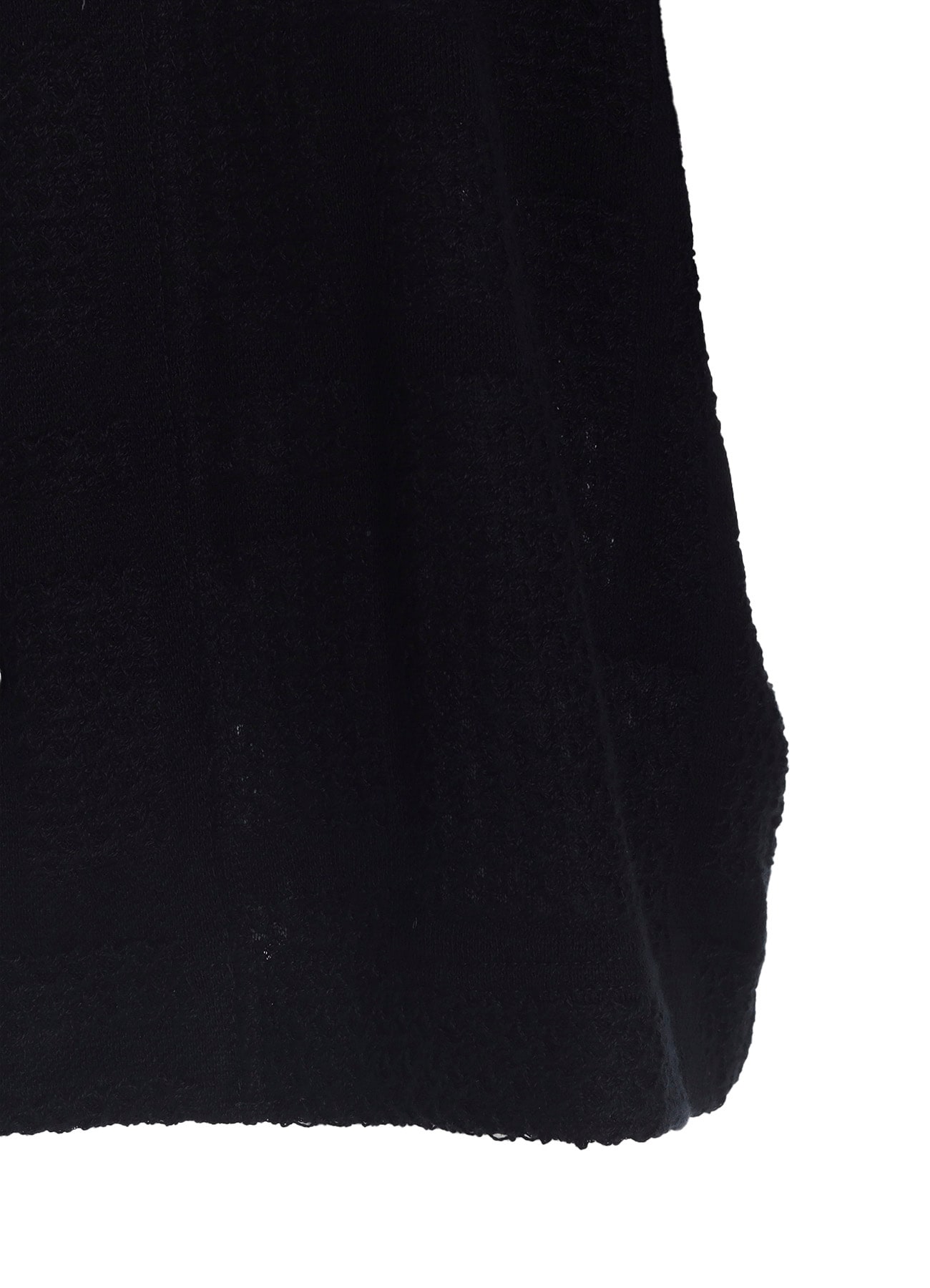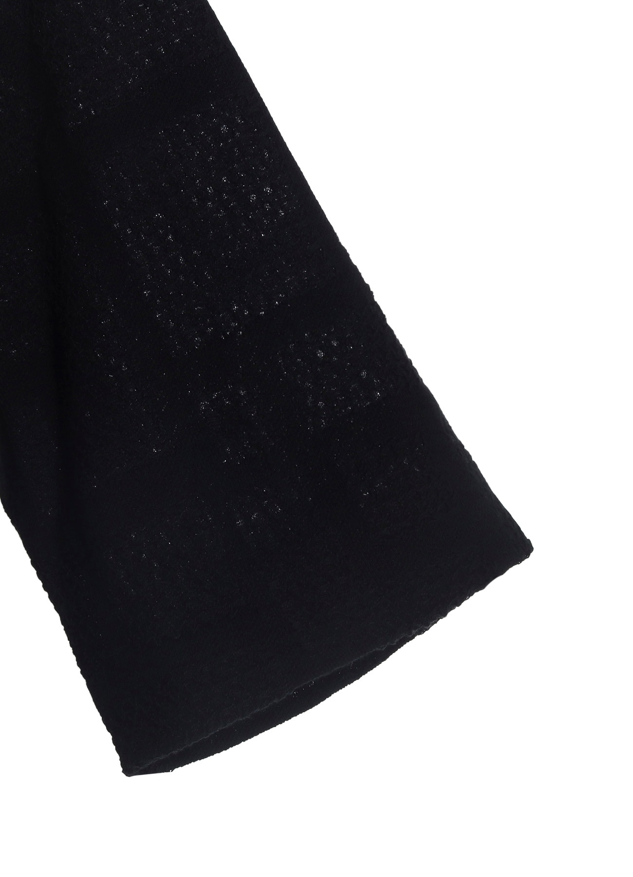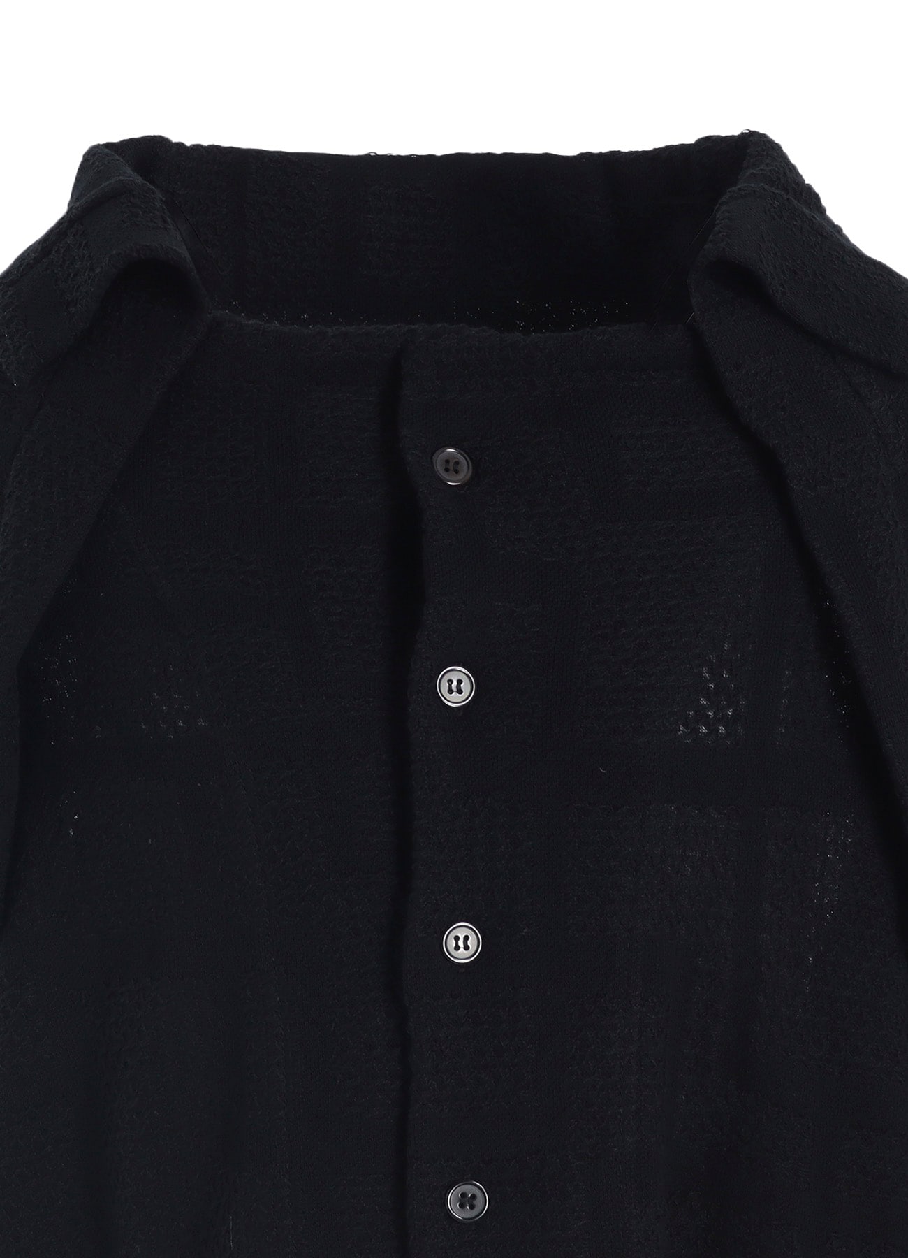 襟付きラグランカーディガン。ゆったりとした袖と身頃が独特のシルエットを作ります。インナーにハイネックや長袖のアイテムを重ねることもでき、同素材のサルエルパンツとのセットアップコーディネートも楽しめます。ジャガードで幾何学模様を作り、弾力のある手触りです。