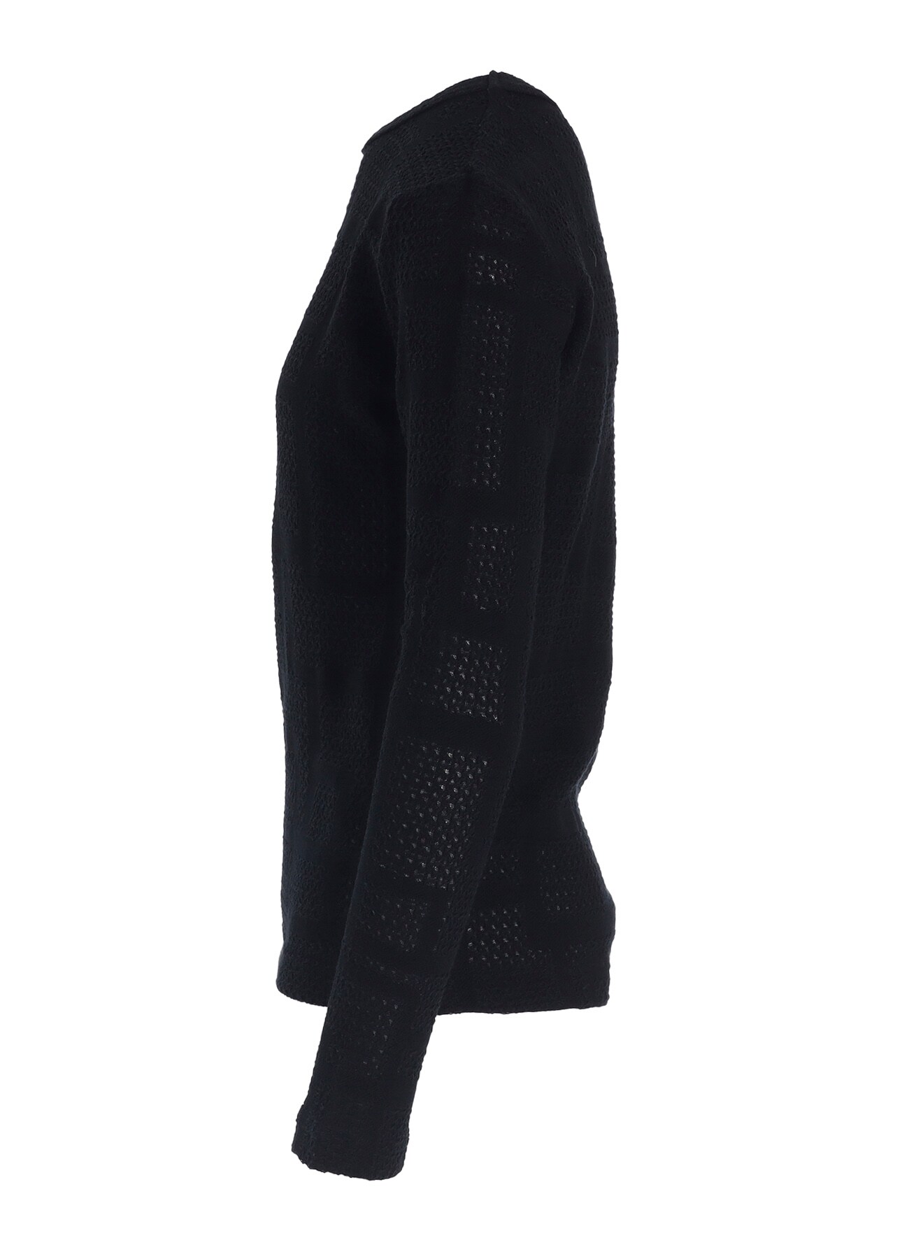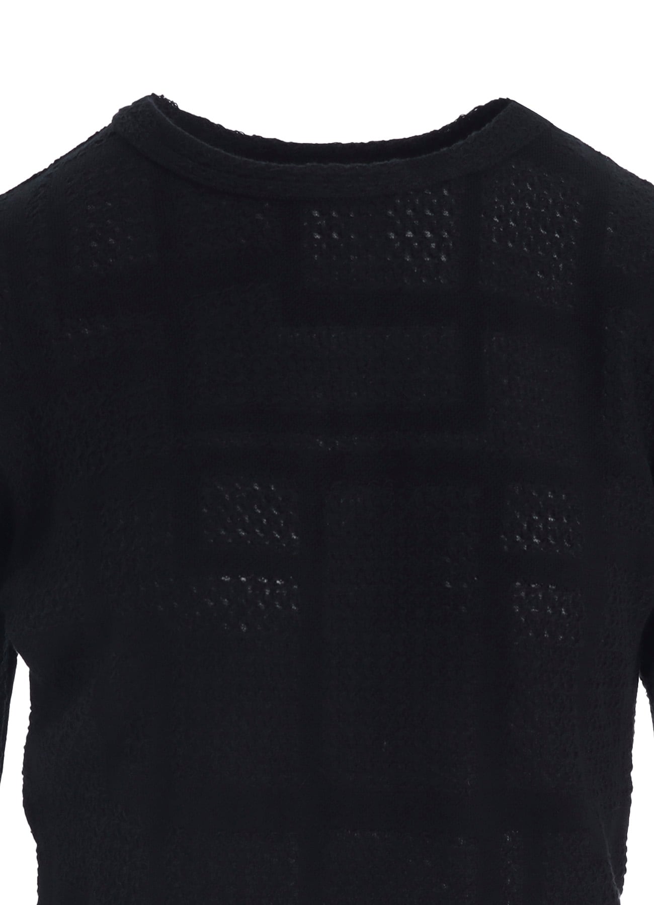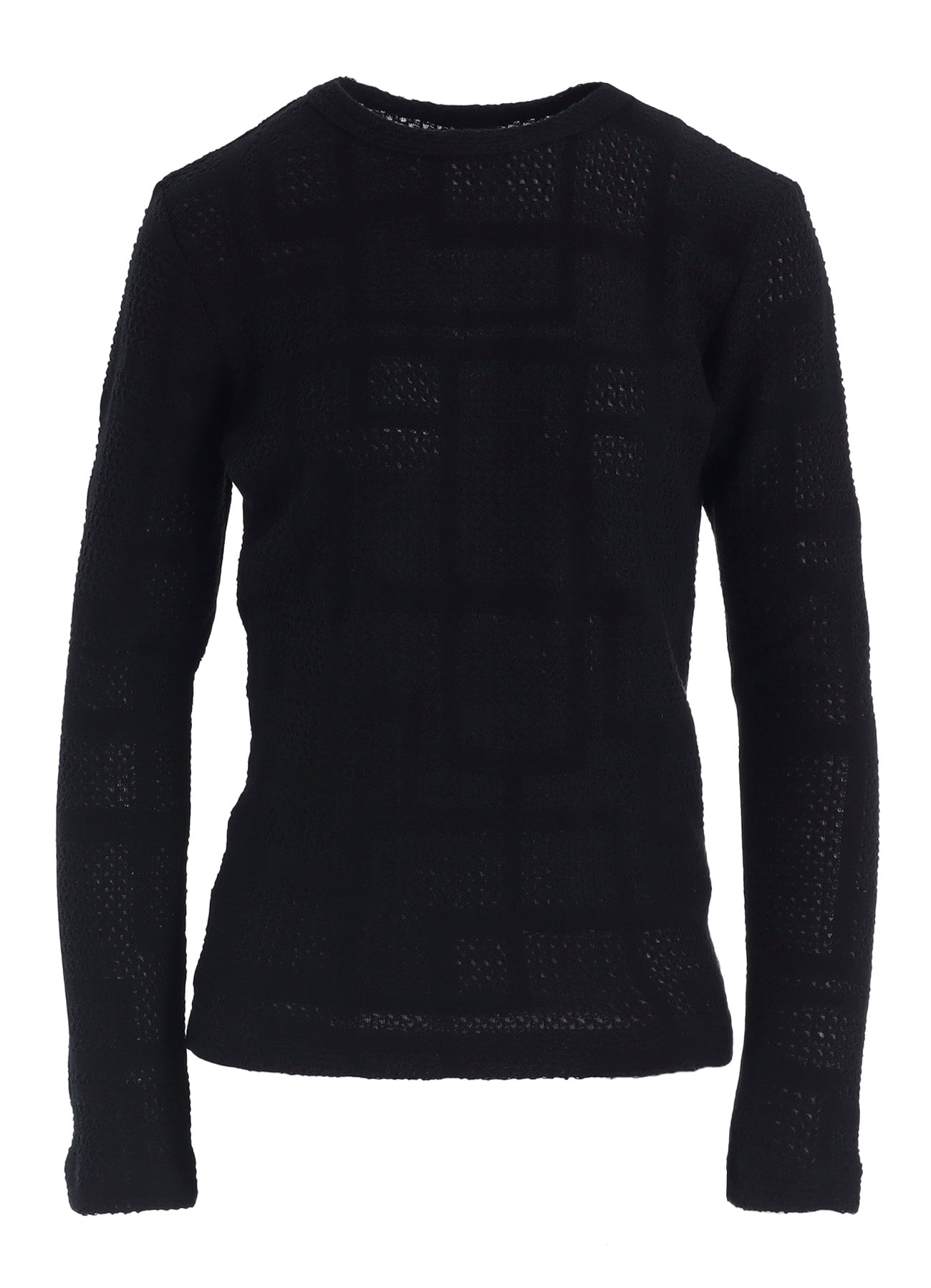丸首長袖カットソー。ジャカードで幾何学模様を作っており、ベーシックなシルエットながら表情のあるアイテム。
