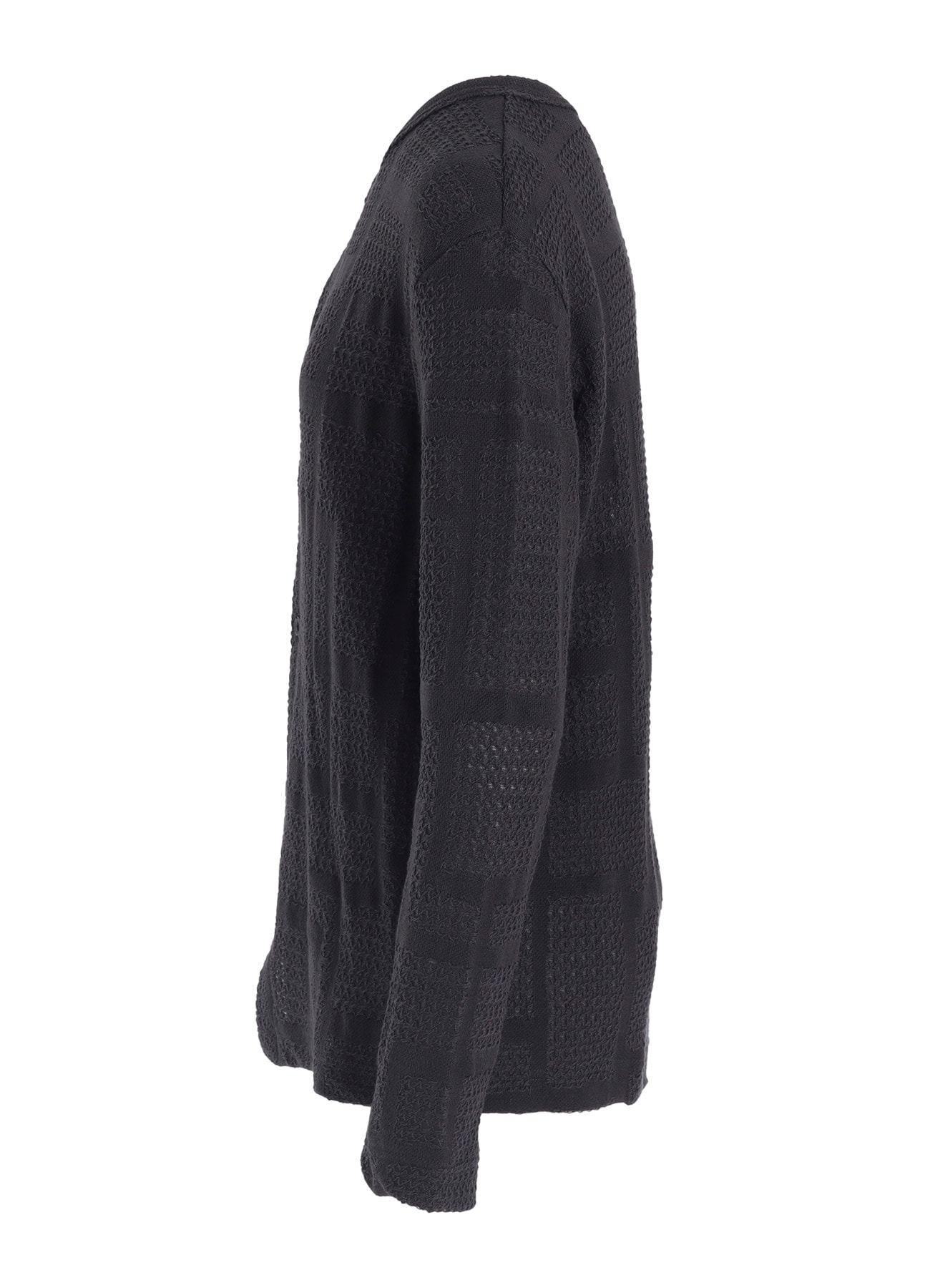 丸首長袖カーディガン。ややゆったりとしたシルエットで、羽織としてはもちろん、ボタンを留めたプルオーバーとしてもお召しいただけます。
