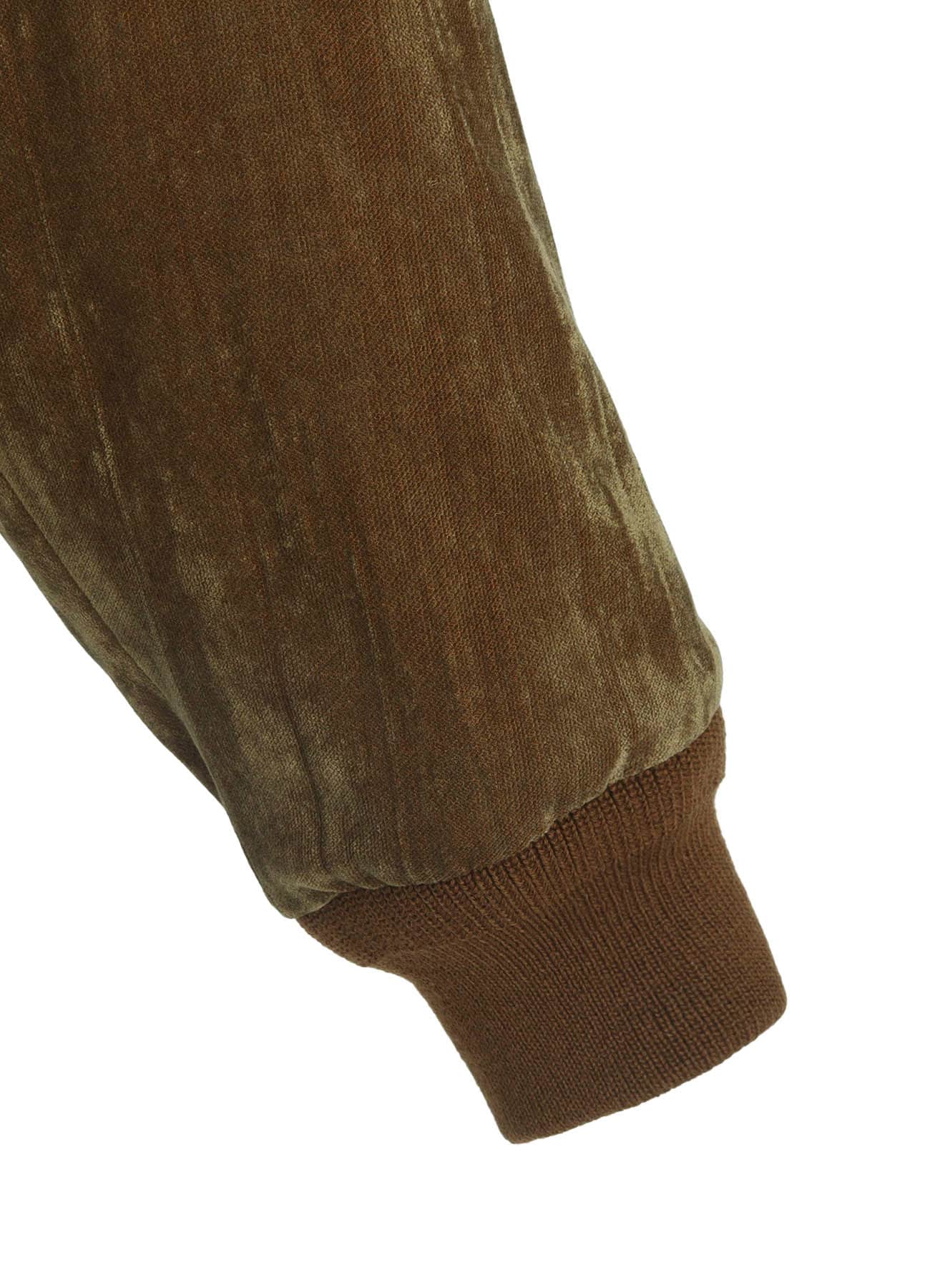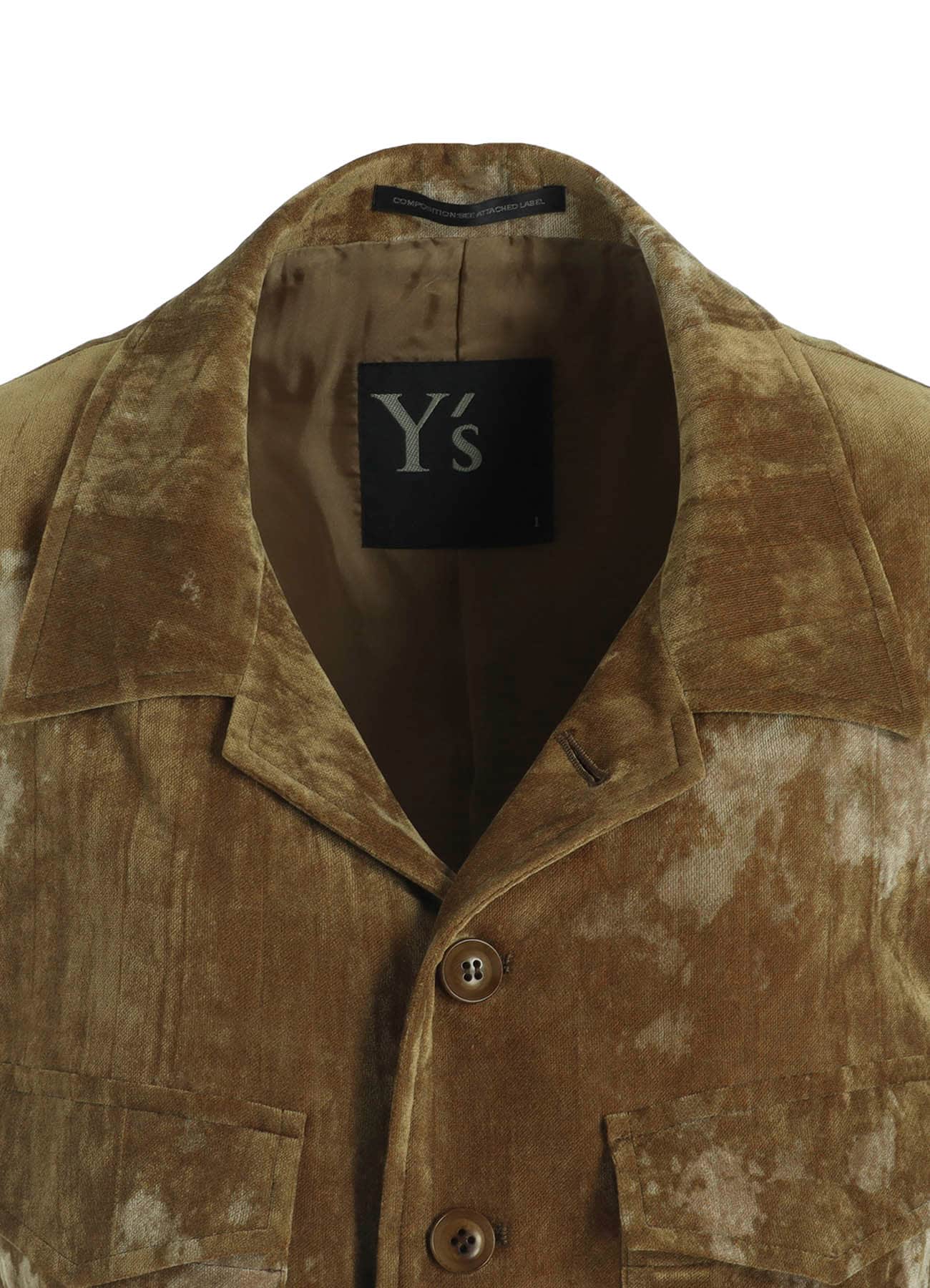 上質な光沢と柔らかさを表現したベルベット素材のシャツカラーブルゾン。ややゆとりのある分量でメンズライクなデザイン。ショート丈のため、ロングブラウスとのコーディネートもバランス良くおすすめです。チンストラップが付いており襟を立てたアレンジも可能です。適度なストレッチ性と落ち感、染め分けにより立体的な色の深みがございます。