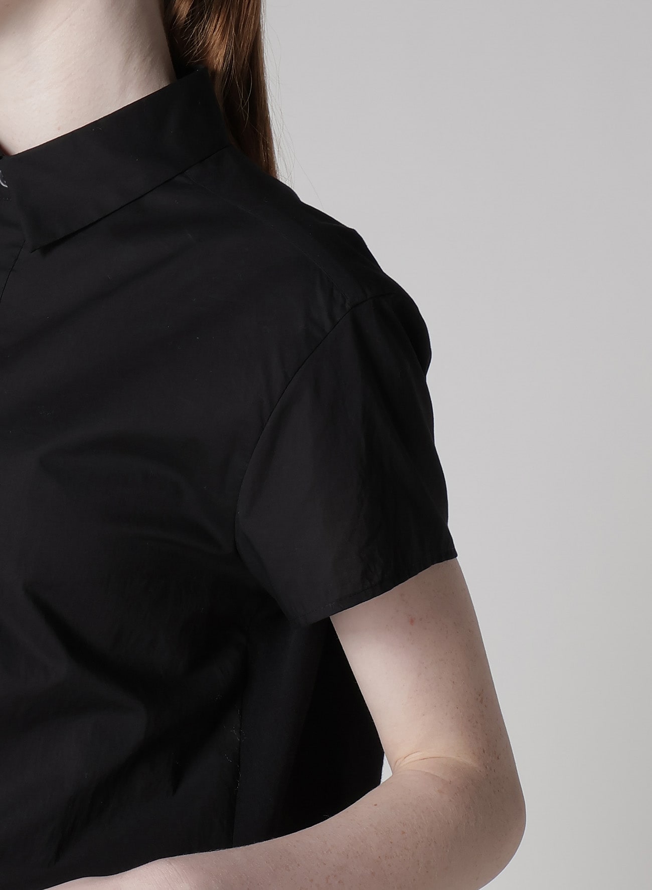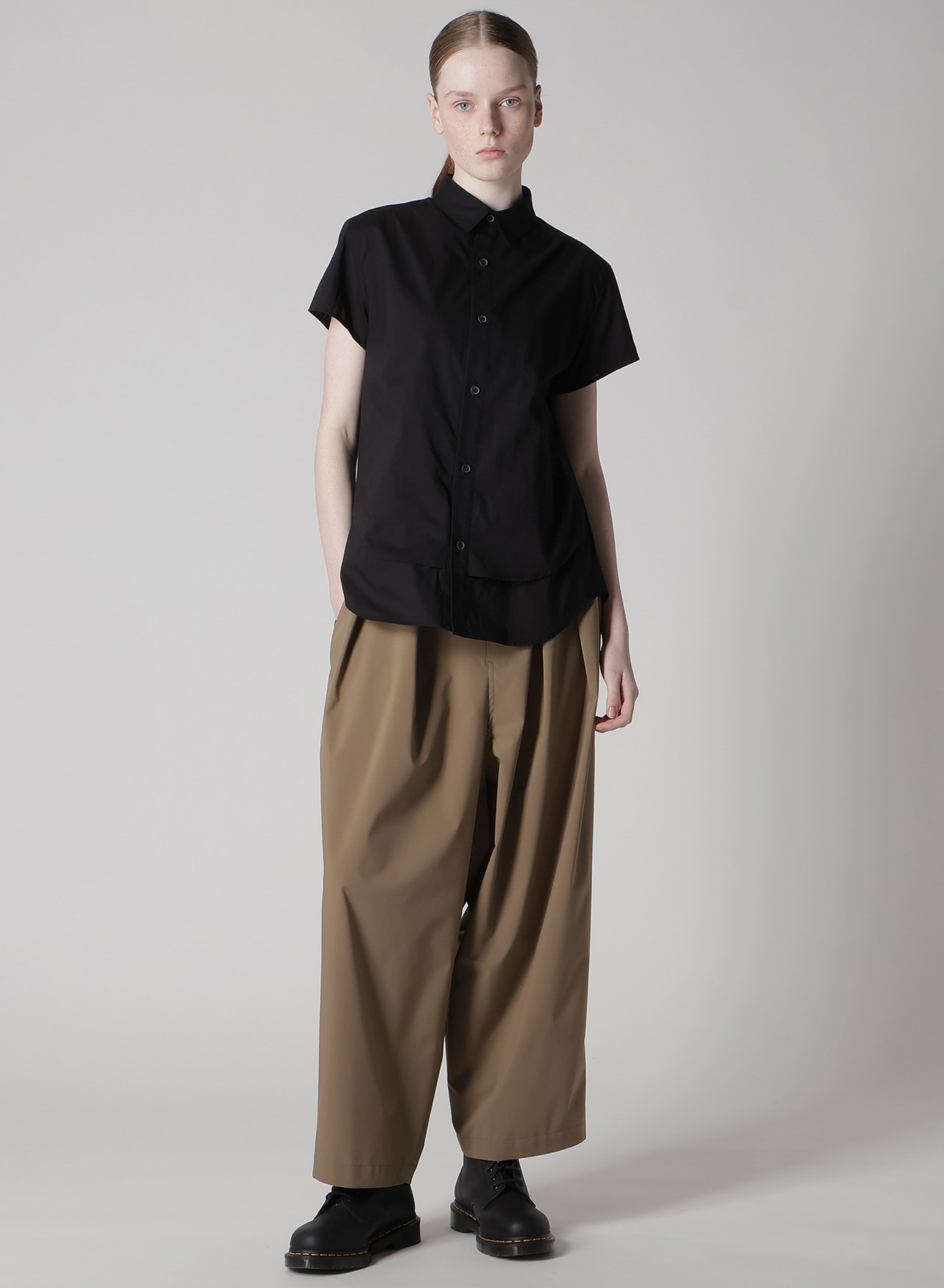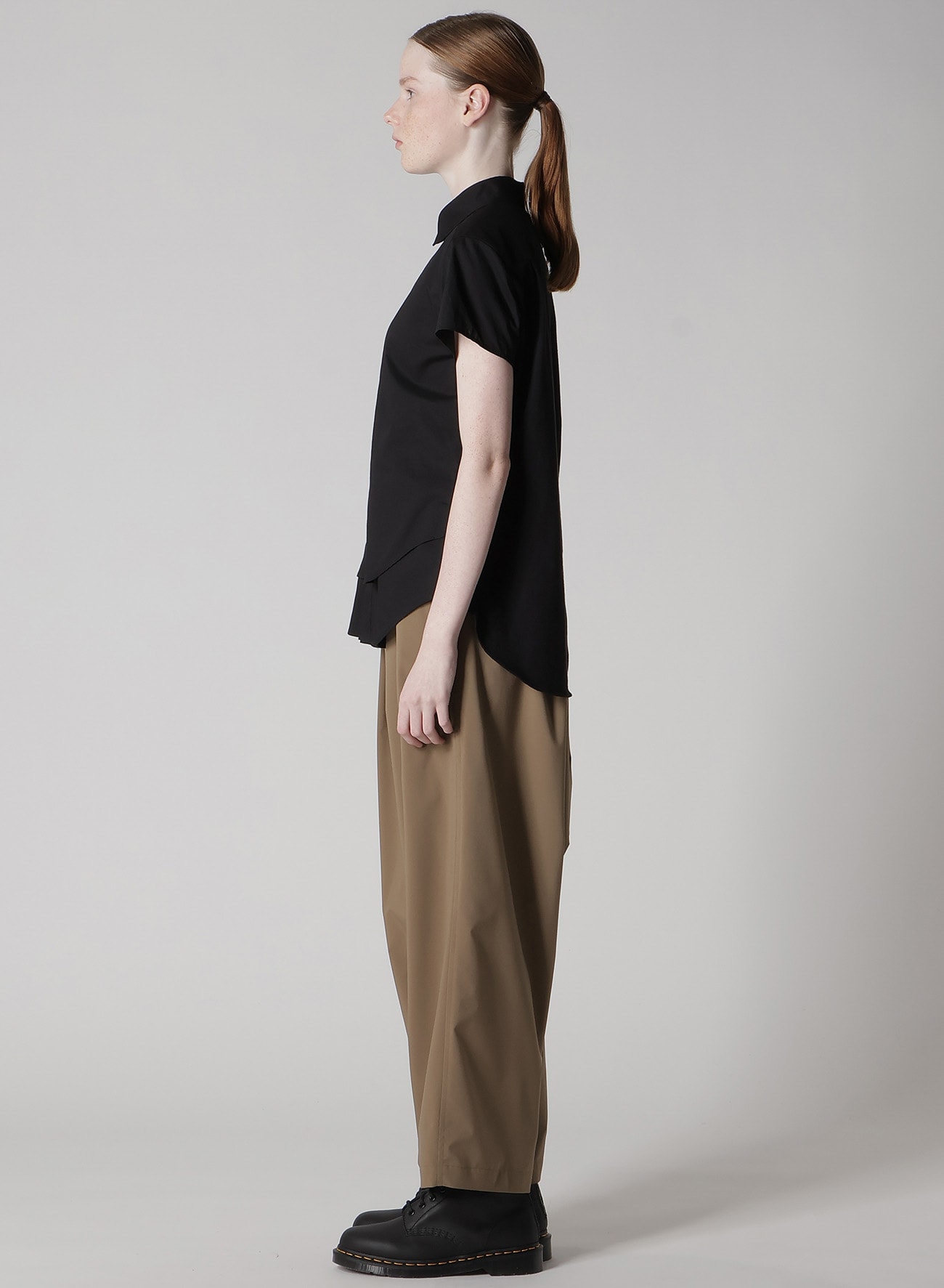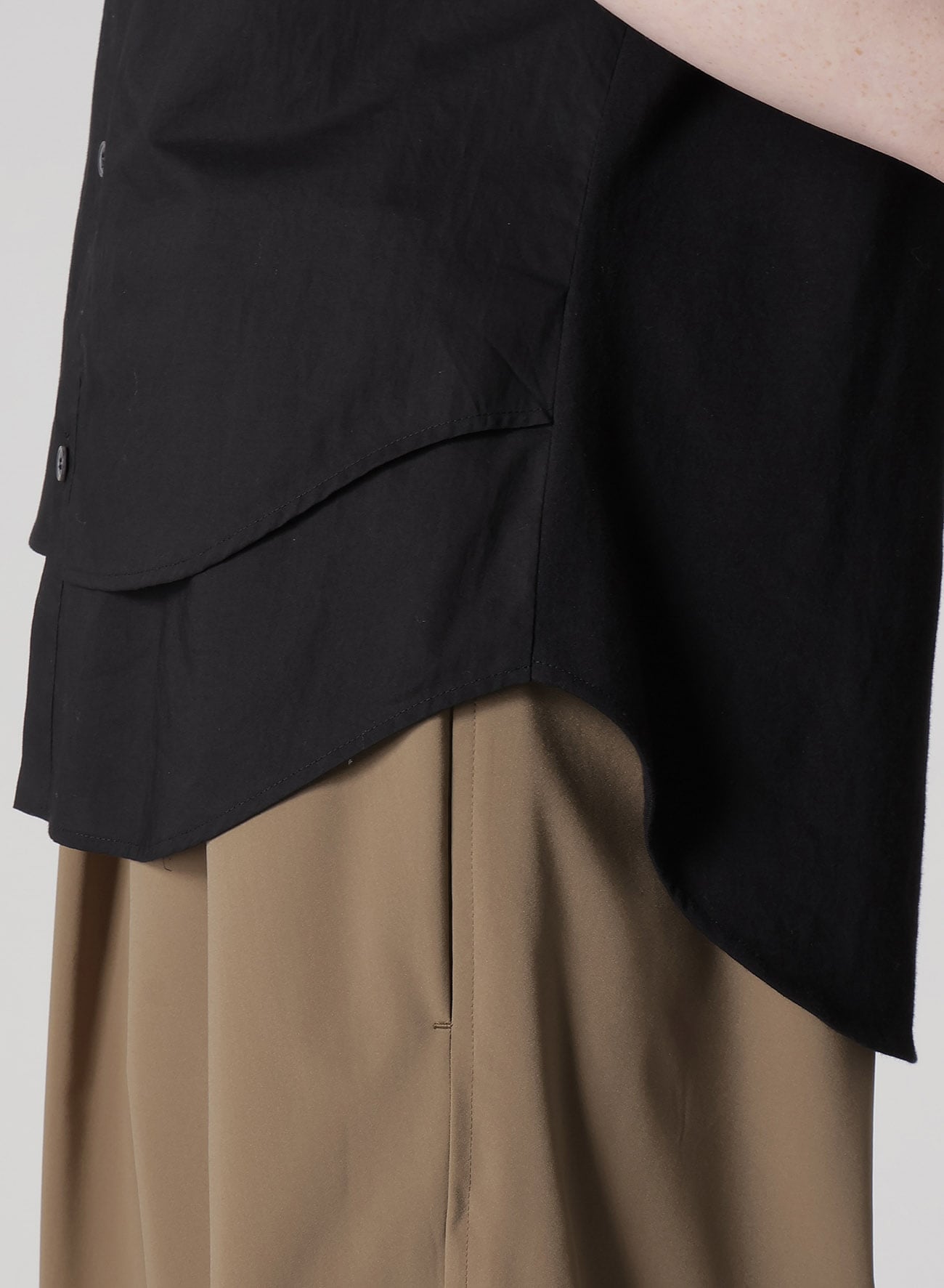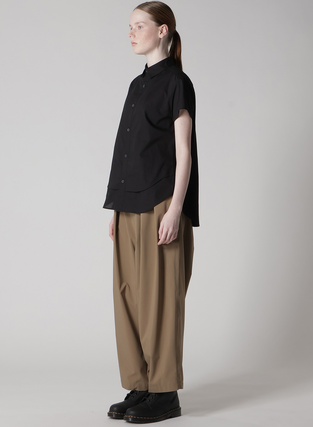 ラウンドした裾が二重になったデザインの半袖シャツ。繊維が細くて長いインド産の希少な超長綿を使用し、しなやかで柔らかい質感に仕上げています。コンパクトなサイズ感、すっきりとしたシルエットで、どんなボトムスにも合わせやすいアイテムです。程よく光沢があり、カジュアルになり過ぎず上品にお召しいただけます。